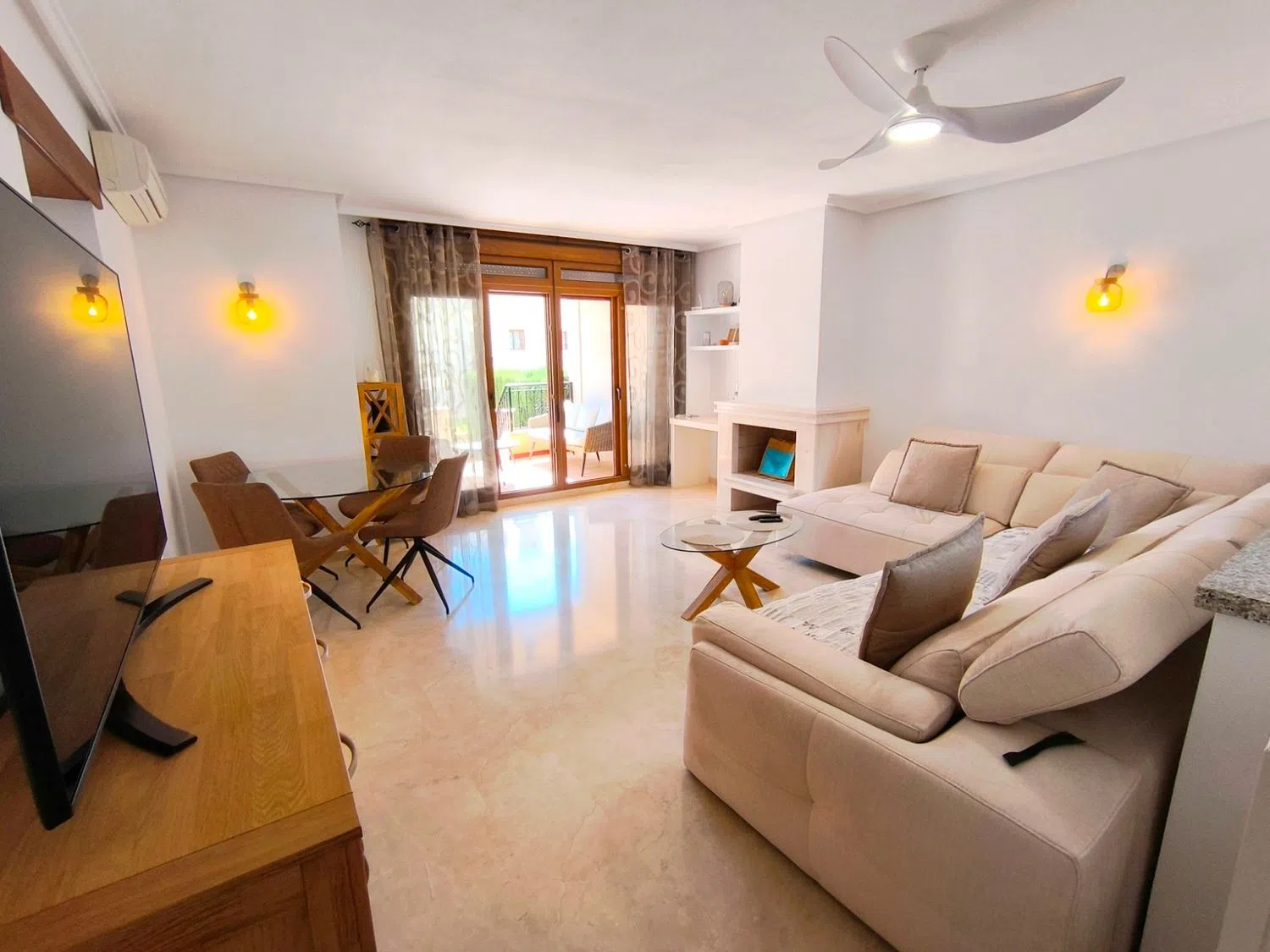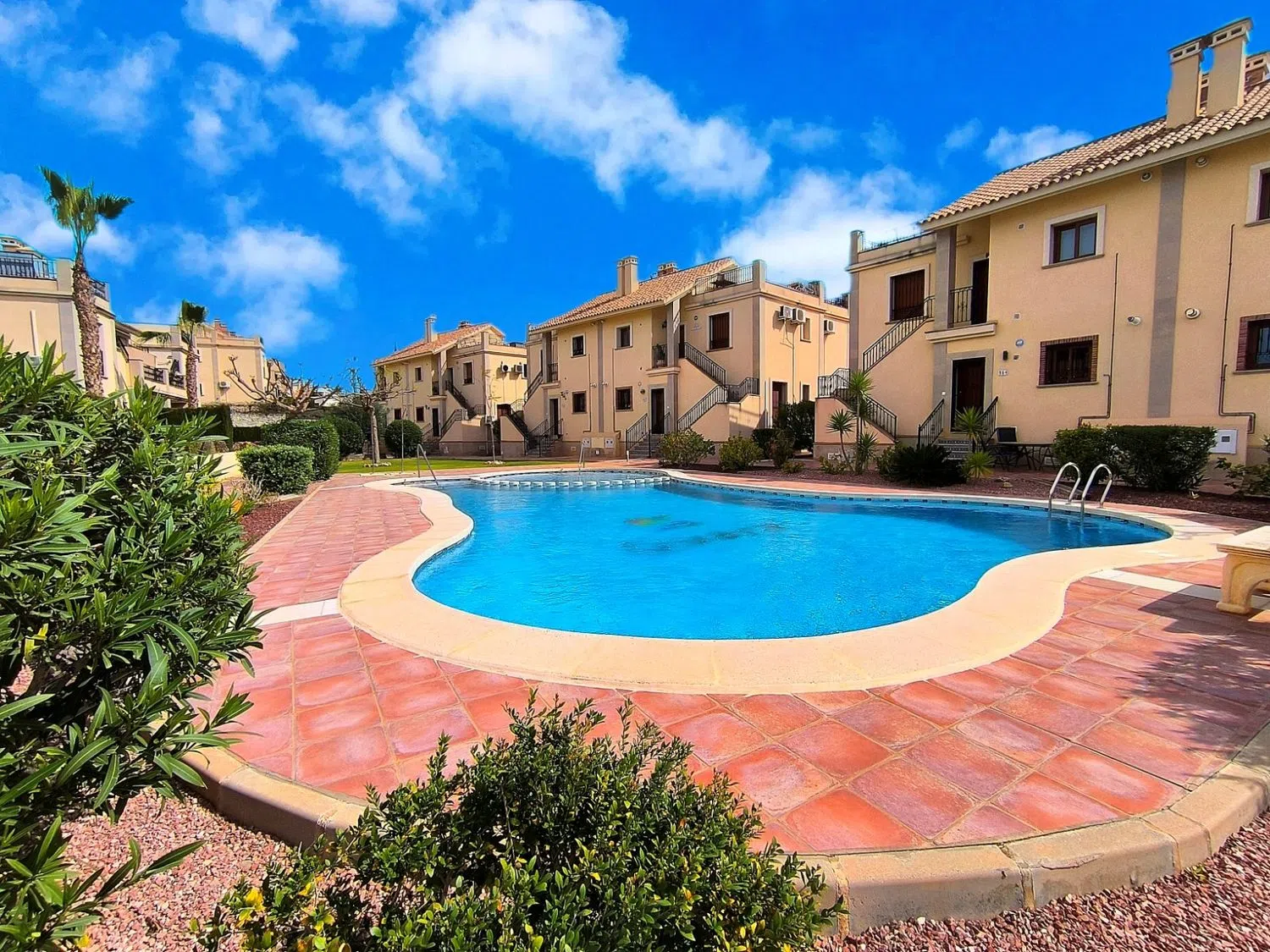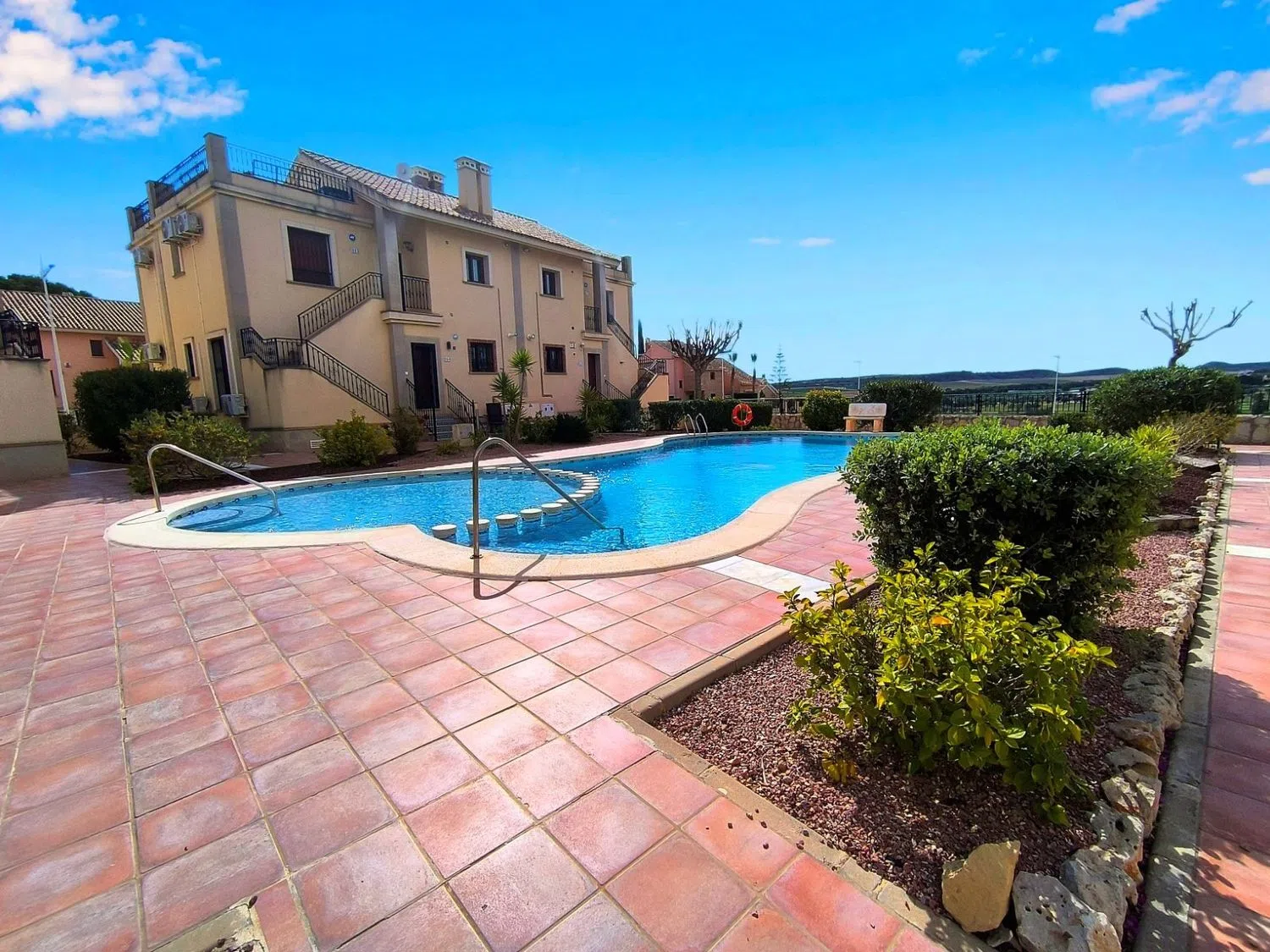 **Encantador apartamento en planta baja en La Finca Golf Resort, Algorfa**Descubra la combinación perfecta de lujo y tranquilidad con este exquisito apartamento en planta baja ubicado en el prestigioso La Finca Golf Resort de 5 estrellas en Algorfa. Ubicada en medio de una impresionante belleza natural y majestuosas montañas, esta propiedad es parte de una exclusiva comunidad de solo 25 casas. Disfrute de un estilo de vida sereno con acceso a una inmaculada piscina comunitaria y jardines bellamente cuidados. Entre para encontrar un espacioso salón que integra a la perfección un comedor, perfecto para el entretenimiento. La cocina bien equipada cuenta con muebles bajos y altos modernos y electrodomésticos de alta gama que satisfacen todas sus necesidades culinarias. El apartamento ofrece dos habitaciones dobles, cada una con armarios empotrados, mientras que la suite principal incluye un baño privado exclusivo. Un segundo baño con azulejos cuenta con ducha sobre la bañera para mayor comodidad. Disfrute del tranquilo espacio al aire libre con vista a los exuberantes jardines comunitarios y la impresionante piscina, ideal para relajarse. Con servicios como bares, restaurantes y una tienda de conveniencia cerca, todo lo que necesita está a su alcance. La ubicación es muy accesible, con la autopista AP7 a solo 10 minutos, el aeropuerto de Alicante directamente accesible y las playas con bandera azul a solo 15-20 minutos en coche. Construido en 2007 y mantenido en excelentes condiciones, este apartamento con orientación sur incluye una plaza de aparcamiento y está equipado con aire acondicionado y bomba de calor para una comodidad durante todo el año. Con una calificación energética de clase E, esta casa combina comodidad y eficiencia. ¡No dejes pasar esta oportunidad de tener un trocito de paraíso en uno de los resorts de golf más buscados de España!