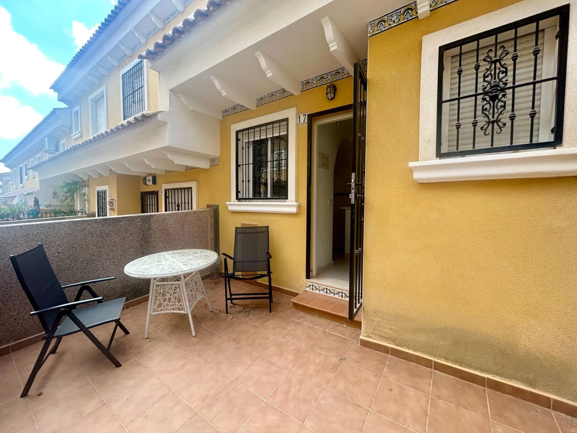 Tríplex adosado en venta en Urbanización Montemar, junto a La Finca Golf en Algorfa (Costa Blanca) Descubre este bonito adosado tipo tríplex en venta en Algorfa, situado en la exclusiva urbanización Montemar, a pocos metros del prestigioso La Finca Golf Resort. Una ubicación privilegiada en plena Costa Blanca, ideal tanto para vacaciones como para vivir todo el año. La propiedad se distribuye en varias plantas: Planta baja: espaciosa cochera cerrada con acceso interior a la vivienda. Primera planta: luminoso salón-comedor, cocina americana, baño y dos terrazas, una de ellas con agradables vistas a la zona verde. Segunda planta: dos dormitorios, un baño completo y otra terraza con vistas despejadas. Última planta: amplio y soleado solárium privado, perfecto para relajarse y disfrutar del clima mediterráneo con preciosas vistas al entorno natural. El residencial cuenta con una piscina comunitaria y está ubicado en una zona tranquila, a poca distancia de todos los servicios, comercios y a tan solo unos minutos en coche de las playas de Guardamar del Segura y Torrevieja. Este tríplex en venta en Montemar – Algorfa combina comodidad, buena ubicación y un entorno inmejorable para disfrutar del estilo de vida mediterráneo.