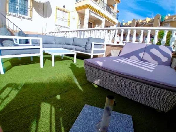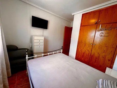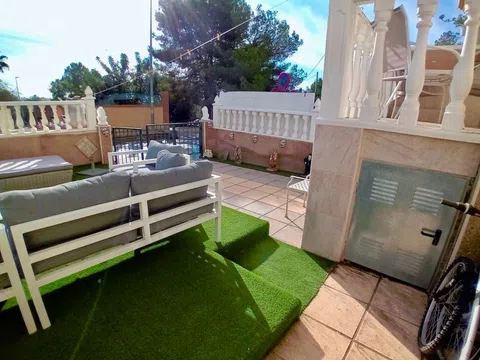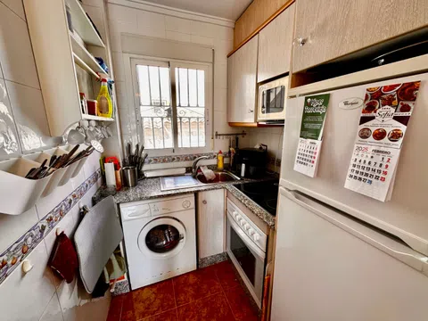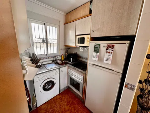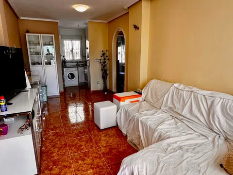 Se vende apartamento en planta baja bien cuidado, ubicado en la agradable urbanización Montemar en Algorfa. Dispone de jardín privado y plaza de parking. Una puerta doble conduce al camino de entrada con estacionamiento, y una entrada independiente da acceso al jardín. Este jardín de fácil mantenimiento ofrece numerosas posibilidades de ocio: comidas al aire libre, relax y convivencia. ¡Podrás disfrutar del sol todo el día! Se ha ampliado la terraza delante de la puerta de entrada y se ha creado un práctico espacio de almacenamiento debajo de ella. En su interior encontrará un luminoso salón diáfano con cocina. Un arco conduce a dos amplios dormitorios y un baño. Ya sea que esté buscando una casa de vacaciones sin complicaciones o un lugar agradable para vivir, este apartamento es ideal. Se ofrece en excelentes condiciones y totalmente amueblado y equipado. A poca distancia encontrará fantásticos bares y restaurantes, una panadería, una tienda local, un dentista, una farmacia y mucho más. No pierdas esta oportunidad excepcional. ¡Contáctanos hoy para programar un recorrido!