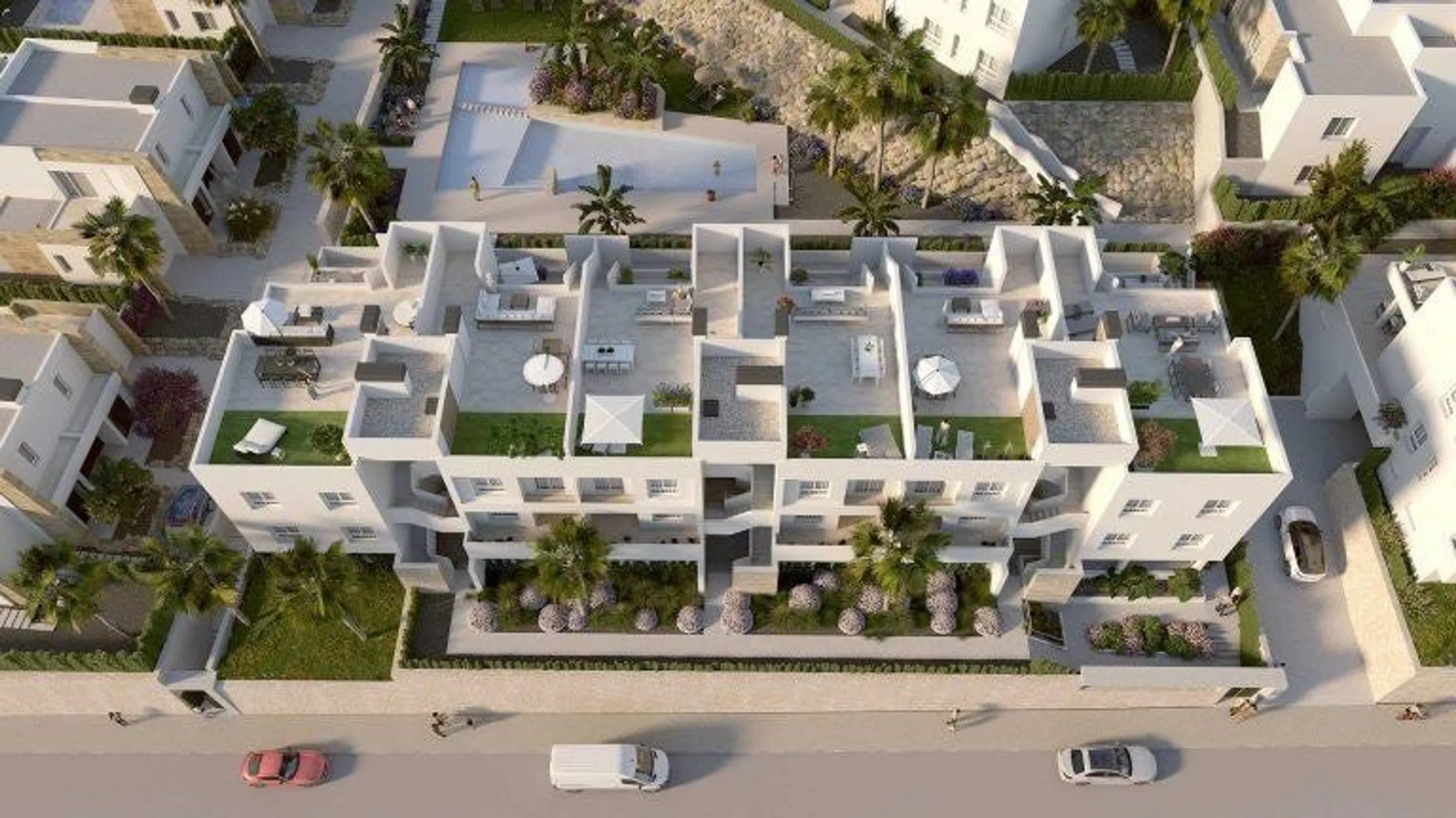 Situados en La Finca Resort, Costa Blanca Sur, los apartamentos Zante forman parte del Residencial Grecia. Estos luminosos apartamentos de nueva obra se distribuyen en dos bloques de dos plantas cada uno. Las viviendas planta baja ofrecen de una amplia terraza y los áticos disponen de un increíble solárium. A 5 minutos de la localidad de Algorfa, este resort con campo de golf ofrece a sus residentes todo tipo de servicios y una fácil comunicación por toda la Costa Mediterránea. Los precios son Desde 275.000€.