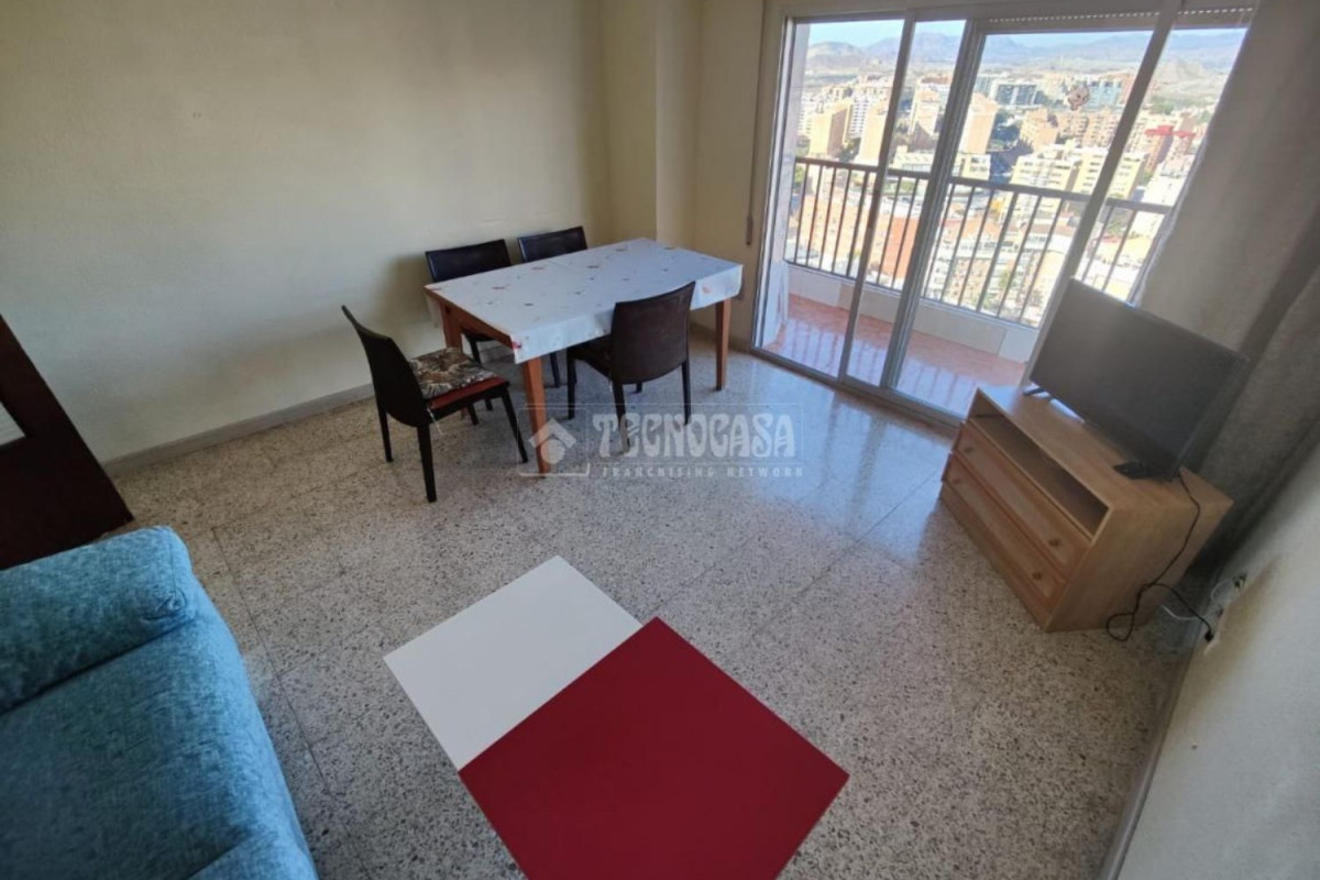 VIVIENDA EN EXCLUSIVA! SE TRATA DE UNA 21º PLANTA CON ASCENSOR DE 106 M2 CONSTRUIDOS, VISTAS TOTALMENTE DESPEJADAS, COMPLETAMENTE AMUEBLADA, TRES HABITACIONES EN FINCA MUY CUIDADA, ZONA CENTRO DE LA CIUDAD DE ALICANTE, EN CALLE BENASAU (Zona muy cuidada y tranquila), A ESCASOS METROS DE LA ESTACIÓN DE RENFE.Esta amplia y luminosa vivienda consta de 106 m2 distribuidos de la siguiente manera:- 3 habitaciones. Totalmente luminosas, con armarios empotrados y una de ellas con salida al balcón.- 1 baño. Totalmente equipado, dispone de plato de ducha. - 1 aseo. Gran luminosidad, totalmente equipado.- Cocina. Equipada totalmente, de grandes dimensiones, donde poder disfrutar de cálidos momentos.- Salón. Vistas espectaculares, luminoso y con salida al balcón. La finca se encuentra en muy buen estado y es muy cuidada por la vecindad, además estando la vivienda rodeada de todos los servicios necesarios (farmacias, centros de salud de atención primaria, supermercados, transporte público, tanto autobús que conecta con todas las zonas de la ciudad de Alicante como estación de TRAM, bazares y tiendas multiprecio, carnicerías fruterías.. . ) Se encuentra haciendo paralela a la Bono Guarner, el corazón del barrio de San Blas, dotada de todo tipo de comercios.
