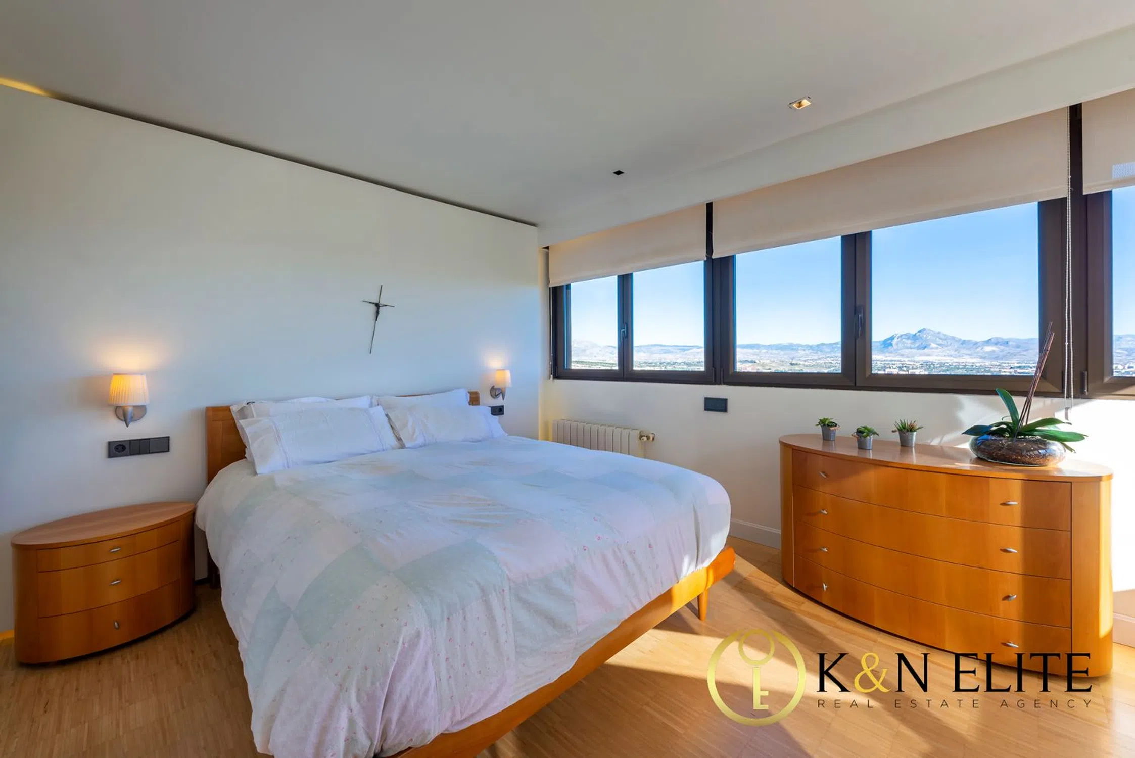 Disfruta de una espectacular vivienda en el precioso enclave natural de la Serra Grossa, en Vistahermosa. Amplio y luminoso apartamento en una exclusiva urbanización privada, con amplias zonas verdes junto a los mejores colegios de la ciudad de Alicante. Esta amplia vivienda de 223 m2 construidos de superficie en una planta distribuidos en salón, comedor con la salida directa a una amplia terraza, cocina independiente y totalmente equipada con la salida a la galería y a la terraza, 3 amplios dormitorios, 2 baños completos 1 de ellos en suite y la terraza con vistas a la piscina, urbanización, mar y montaña. Toda la casa dispone de instalación de aire acondicionado frío/calor por conductos y calefacción central por radiadores de Gas Natural en todas las estancias. El suelo es de parqué de madera natural. Las paredes son lisas y todos los cerramientos exteriores son de tecnial y climalit con cerramiento oscilo-batiente con persiana. Este exclusivo inmueble se encuentra ubicado en una zona residencial muy tranquila, en una preciosa urbanización con amplias zonas ajardinadas, una gran piscina, áreas de club social, gimnasio, pistas de pádel, fútbol y zonas infantiles. La vivienda, además, cuenta con 1 plaza de garaje y 1 trastero de más de 20 m2.