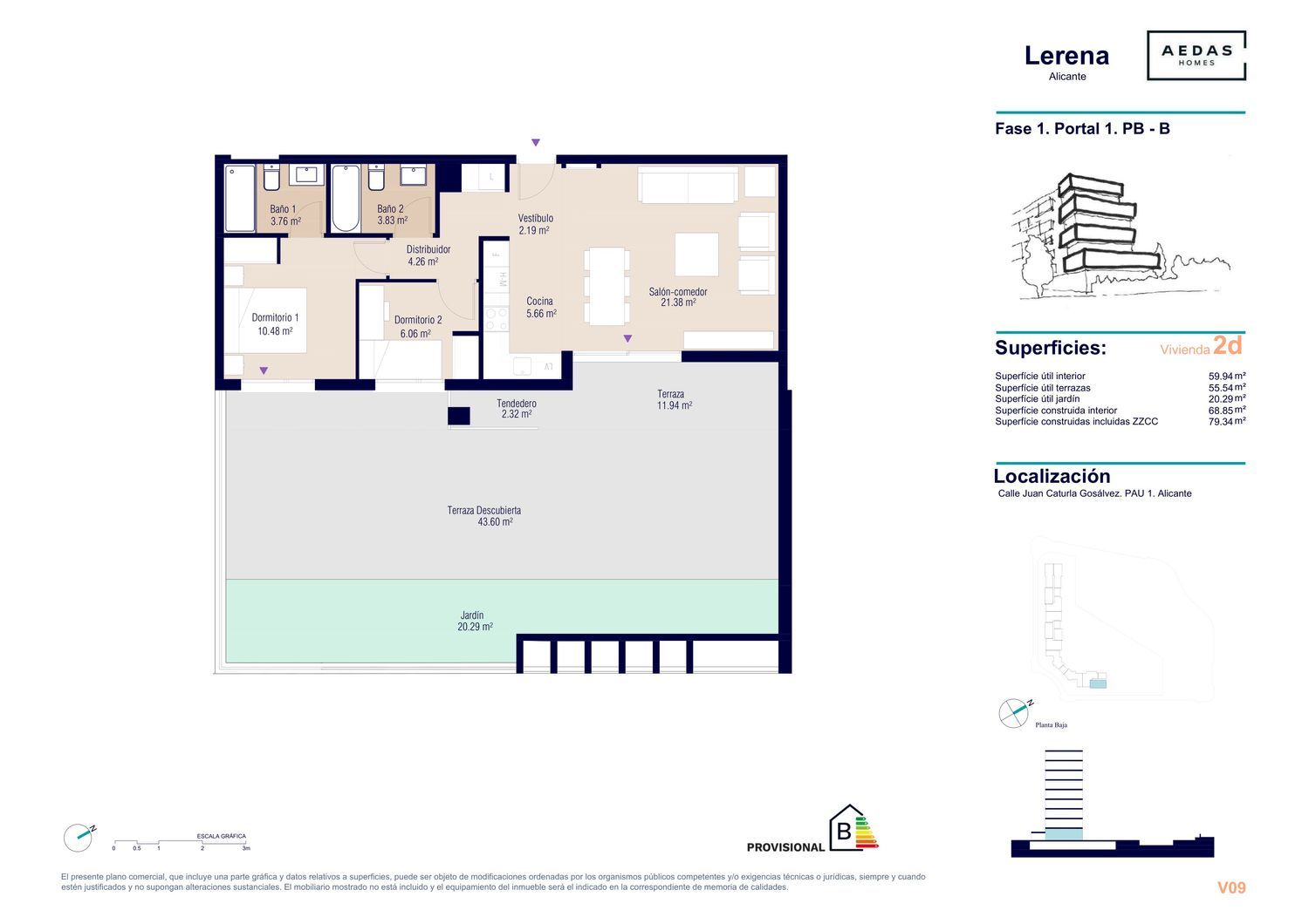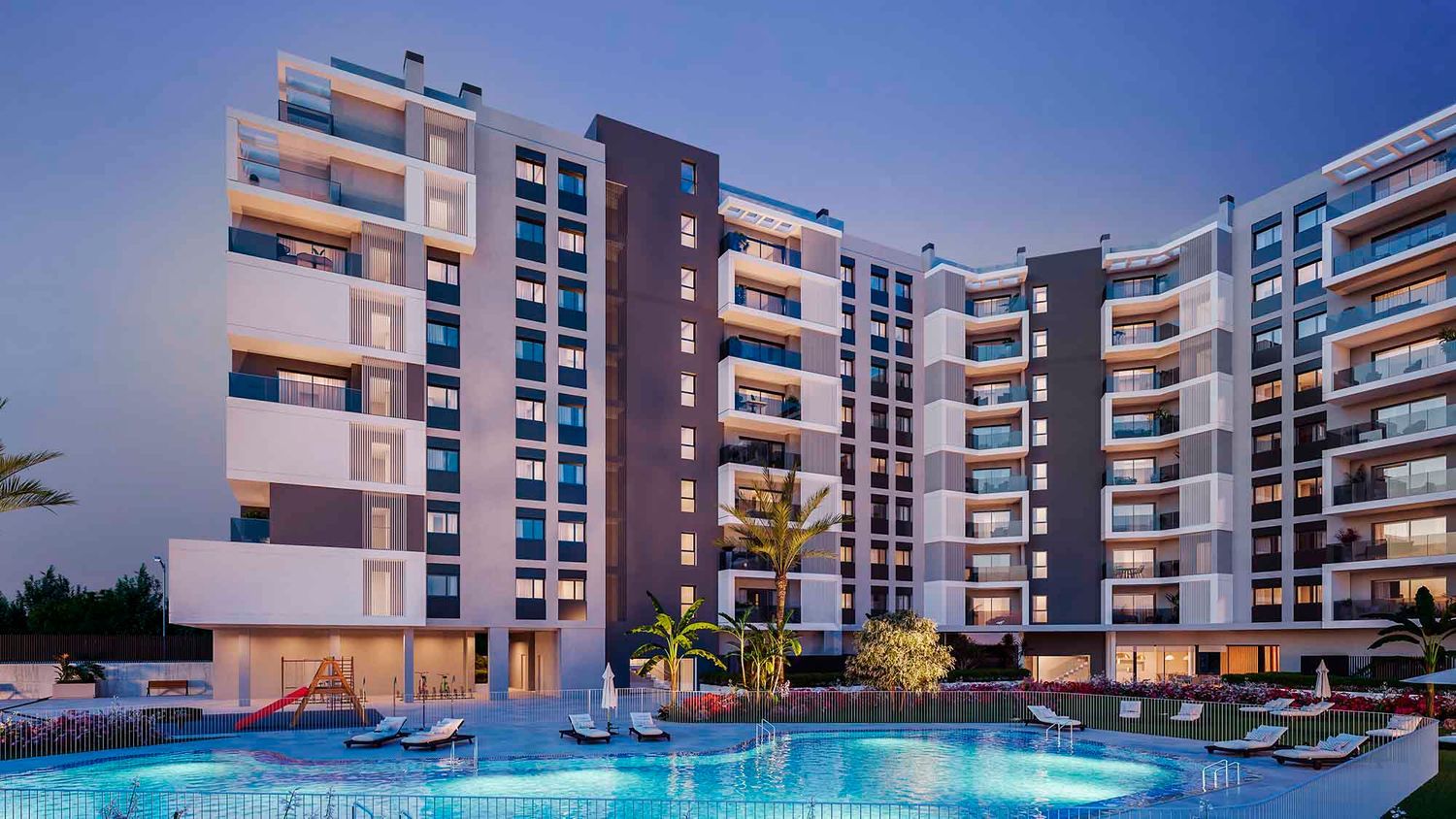 La promoción Lerena, compuesta por 138 viviendas de 1, 2, 3 dormitorios con plaza de garaje y trastero, situada en una excepcional y tranquila ubicación de la ciudad de Alicante, aúna una oferta de alta calidad y gran diseño a precios competitivos pensada para todo tipo de demanda. Su situación es ideal para quienes deseen vivir a tan sólo 15 minutos del centro, en un entorno totalmente consolidado y que disfruta de todo tipo de servicios (colegios, dotaciones comerciales, y de ocio, instalaciones deportivas, etc. ).Las viviendas, distribuidas en un bloque de arquitectura vanguardista, disfrutarán de un sinfín de zonas comunes como piscinas para adultos y niños, espacio de juegos infantiles, club social, áreas ajardinadas o aparcamientos para bicicletas. Todo esto además de contar con unos acabados y materiales inmejorables. IVA no incluido en el precio.