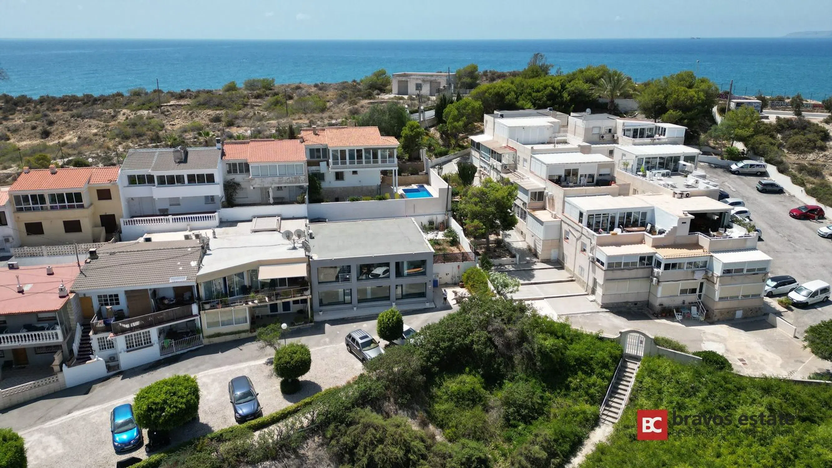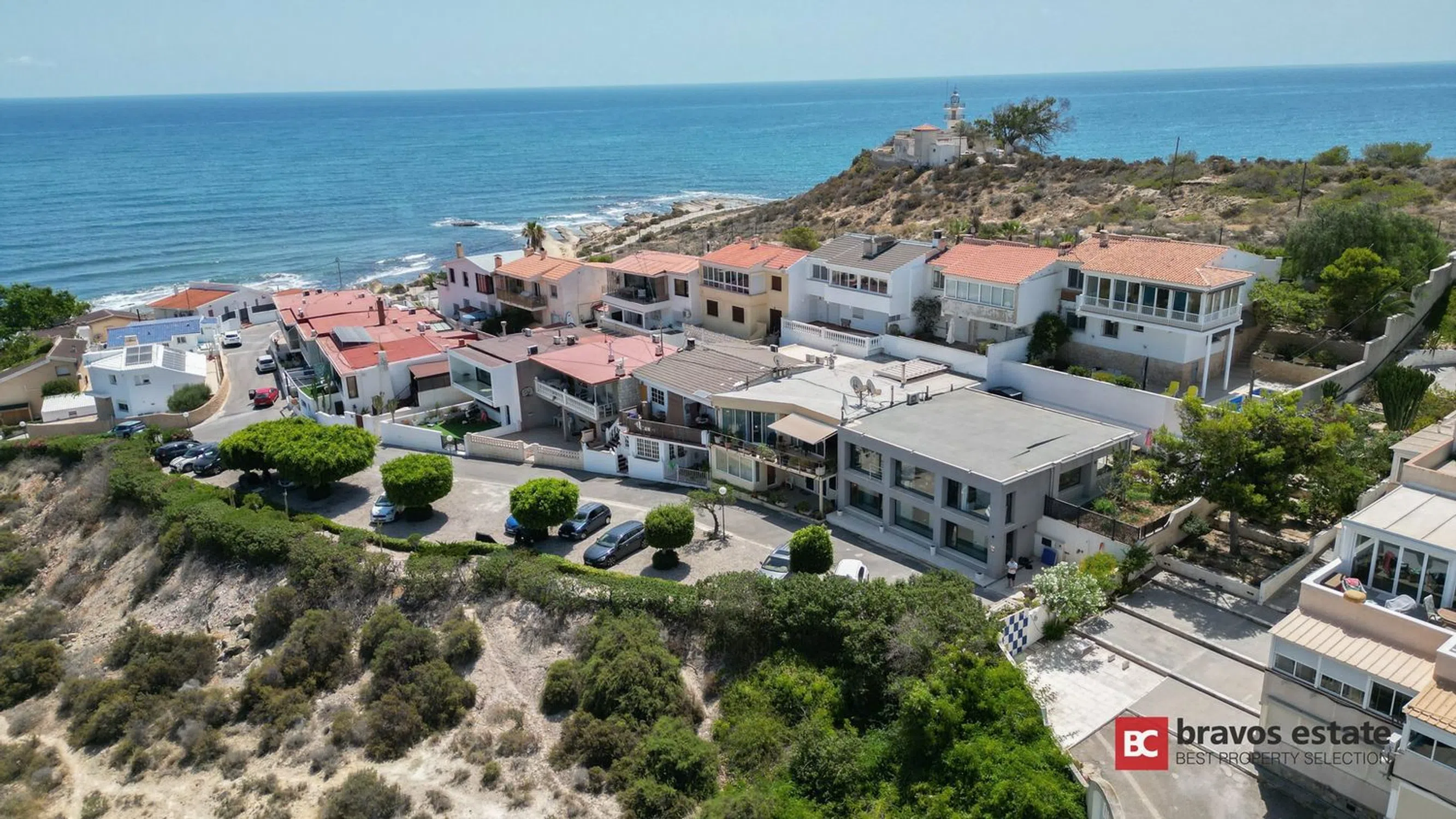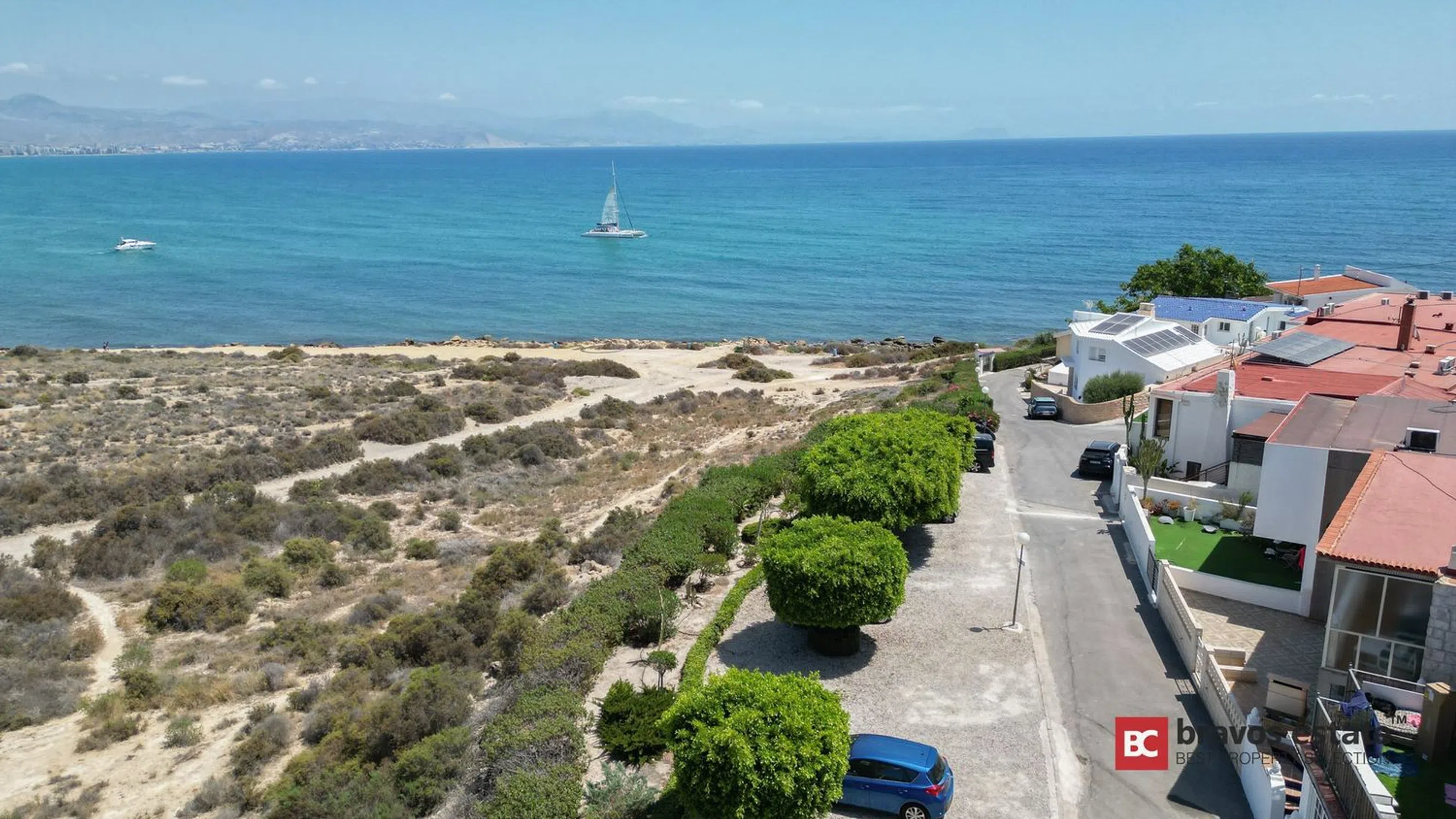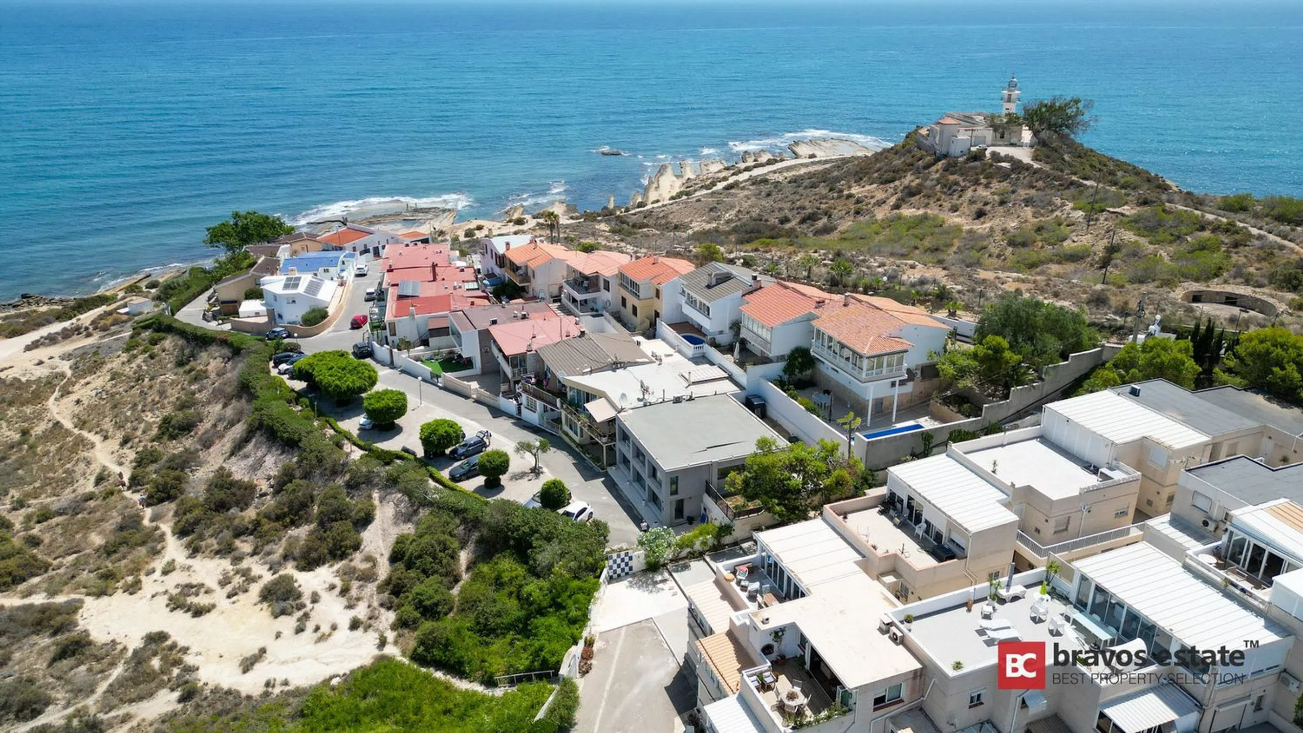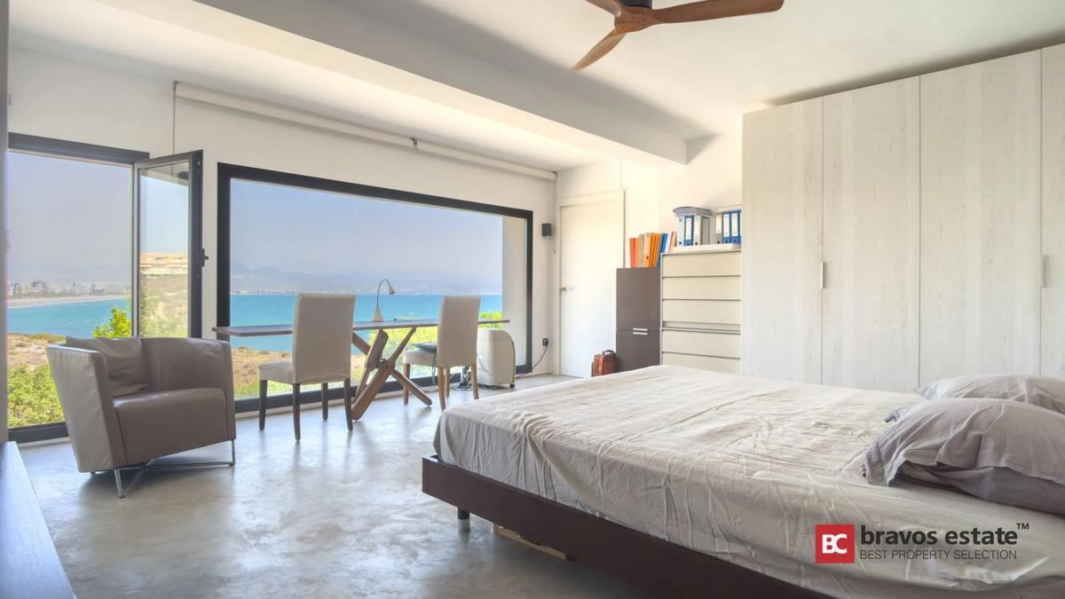 Magnífica vivienda adosada situada en primera línea del prestigioso Cabo de las Huertas en Alicante, totalmente reformada en 2017 con las más altas calidades y un diseño moderno y elegante. Con impresionantes vistas panorámicas al Mediterráneo, este hogar ofrece una experiencia residencial única, combinando lujo, confort y exclusividad. Distribución: La propiedad cuenta con 250 m² construidos, distribuidos en dos plantas principales y una terraza cubierta con potencial para convertirse en una espectacular terraza rooftop: Primera planta (110 m²): amplio salón-comedor abierto con cocina integrada totalmente equipada, grandes ventanales con vistas al mar, baño completo y elegante escalera de diseño. Segunda planta (140 m²): 3 dormitorios espaciosos, 3 baños completos (incluyendo uno en suite), y una terraza privada de 40 m² con acceso a un jardín privado de 136 m² ideal para instalar piscina o jacuzzi. Cubierta (144 m²): preparada estructuralmente para una terraza rooftop con vistas inigualables. Calidades y Extras: Suelos de hormigón pulido Ventanas de aluminio con doble acristalamiento Climatización individual moderna Detalles decorativos en piedra natural Orientación norte-este Ubicación Privilegiada: Acceso directo al Parque Natural del Cabo de las Huertas y sus exclusivas calas. Cerca de colegios, transporte público, supermercados y comercios esenciales, disfrutando de un estilo de vida excepcional junto al mar.