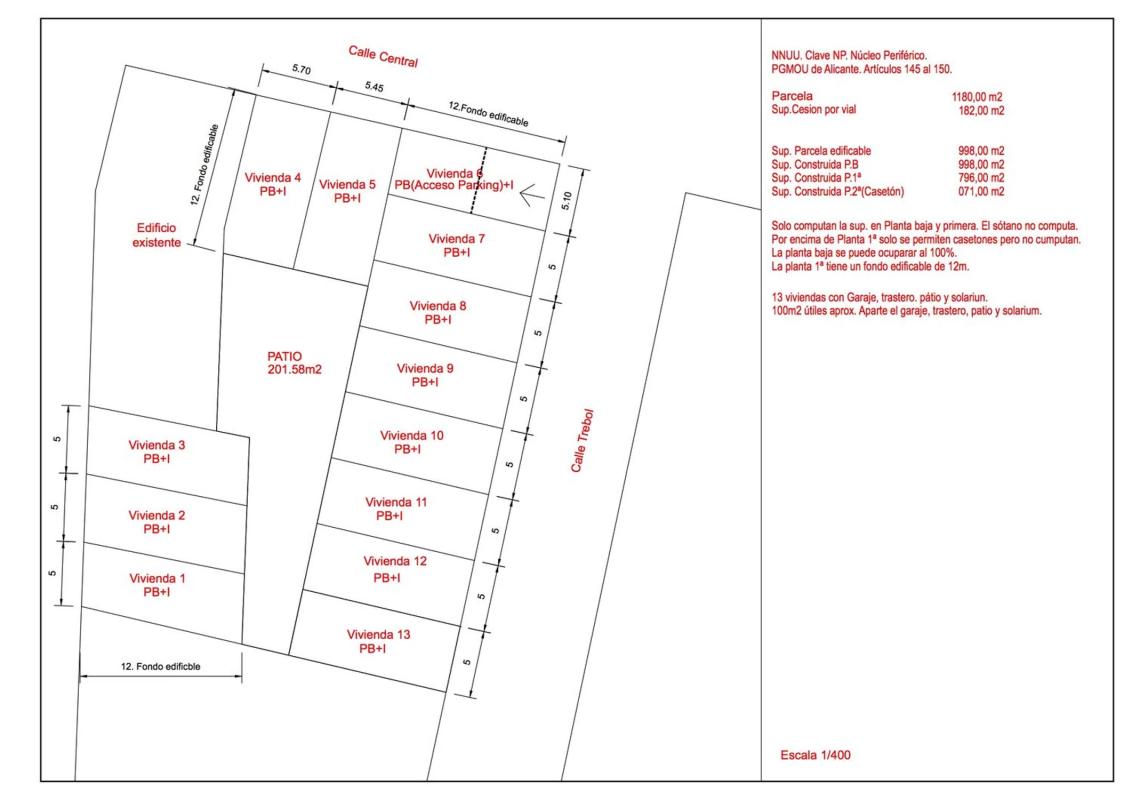 En venta parcela edificable en zona urbana, núcleo de Bacarot. Estudio previo de edificabilidad para 13 viviendas. Interesados en adquisición contactar sin compromiso.