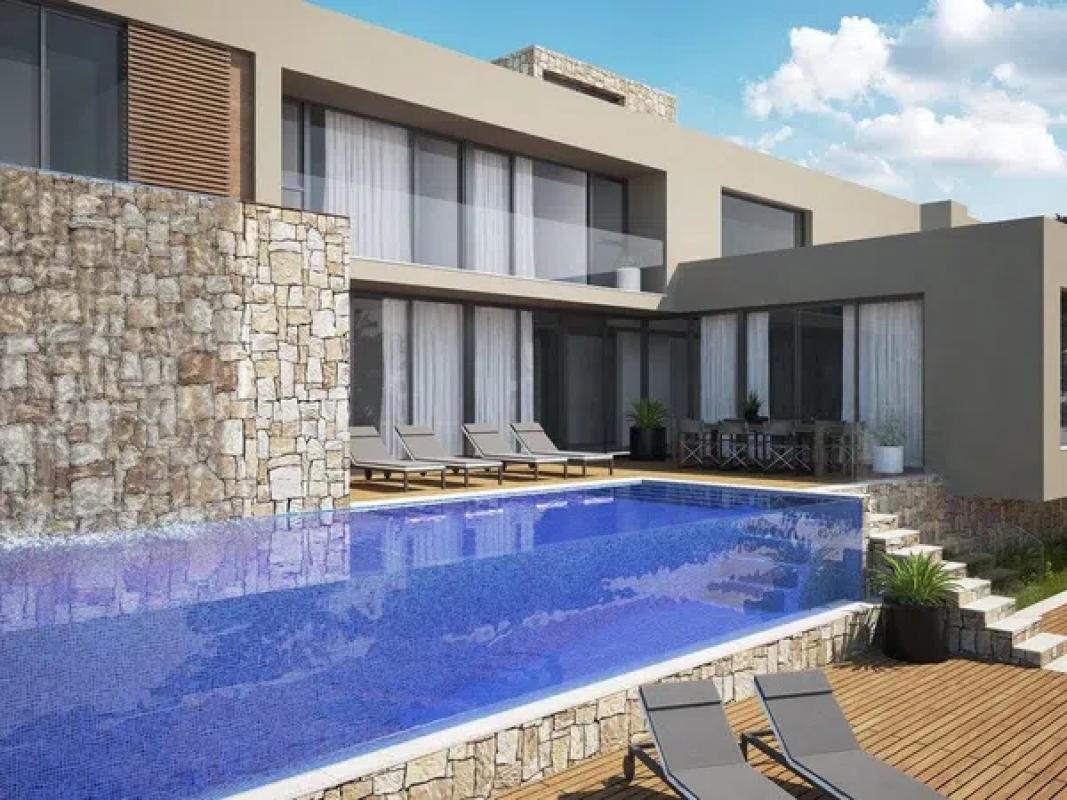 Moderno diseño de la vivienda en el que destacan las grandes superficies acristaladas y una piscina infinita con borde de cristal. A la casa se accede por la parte superior, donde hay un par...