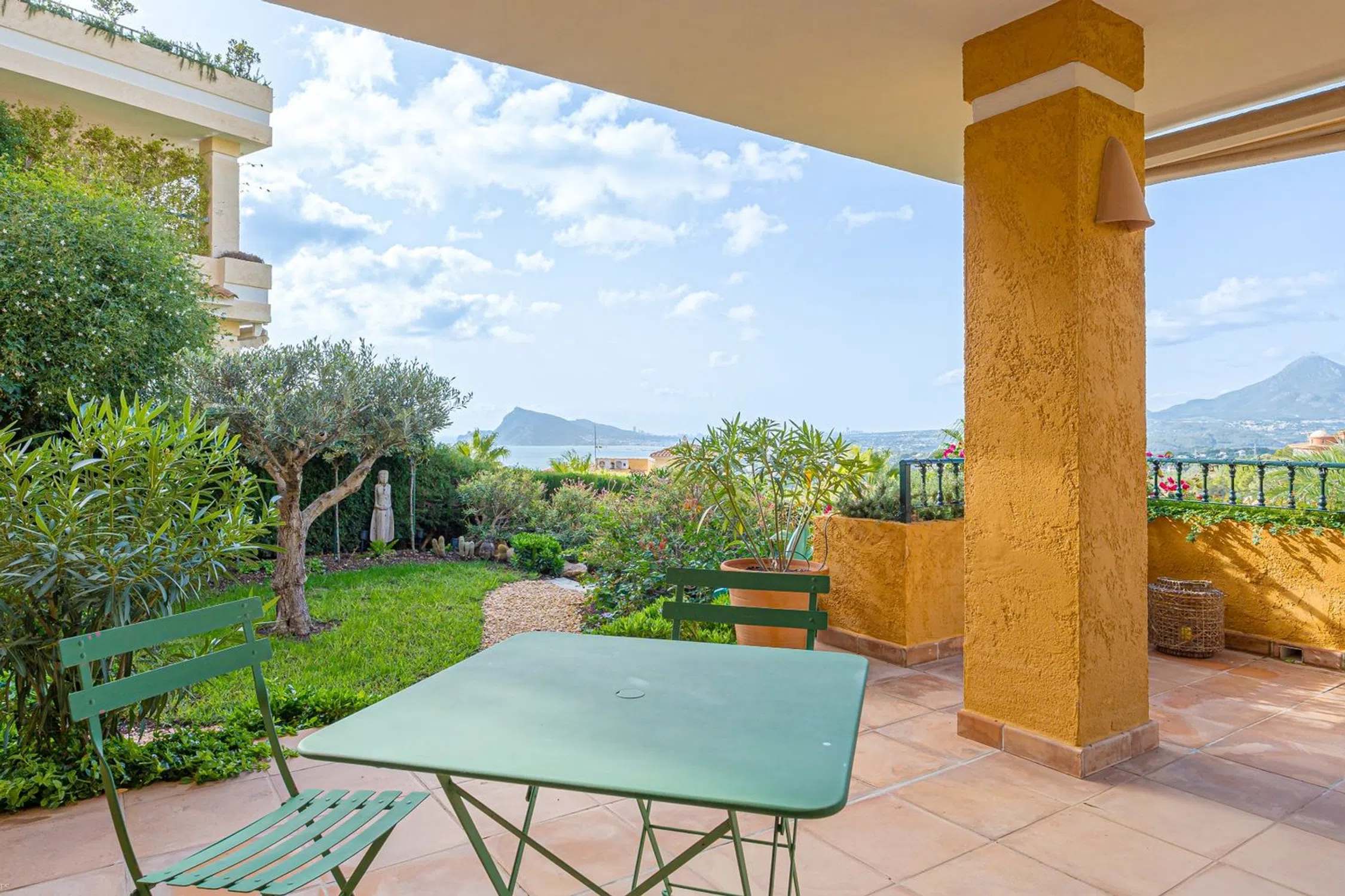 Alcosta Views presenta en exclusiva este precioso y amplio apartamento. Esta joya se sitúa en la exclusiva urbanización Ducado Real de Altea Hills. Ducado Real se distingue por sus muy pocas unidades de viviendas todas ellas con materiales y acabados de primera calidad. Preciosas vistas al mar y a la bahía de Altea así como a las montañas Puig Campana y Sierra de Bernia. Con 234 m2 construidos más terraza y jardín privado, la propiedad nos ofrece desde el primer momento una atmósfera de sofisticación, lujo y confort. El apartamento cuenta con una terraza muy espaciosa con zonas techadas y descubiertas para poder disfrutar del aire libre tanto al sol como a la sombra, e invitando a aprovechar cada día del año del bondadoso clima de Altea, con su agradable verano y sus suaves y soleados inviernos. Un precioso jardín rodea al apartamento con mucha privacidad y preciosas vistas. El salón comedor de gran amplitud separado en dos ambientes siempre guardando las preciosas vistas al mar. Tres dormitorios dobles entre los cuales destaca el dormitorio principal con amplio vestidor y cuarto de baño con ducha. Este dormitorio con salida directa a la terraza. Otros dos dormitorios dobles con dos cuartos de baños completos. Gran cocina reformada con mucho gusto, altos estándares de calidad y una zona de lavandería separada para mayor comodidad. Suelos de mármol y radiantes, climatización por conductos, dos plazas de garaje y trastero son algunos de los extras de este lujoso apartamento. Un elegante mobiliario y una exquisita decoración realzan el atractivo de esta magnífica propiedad, diseñada meticulosamente para aquellos que buscan un hogar donde cada detalle satisfaga los más altos estándares de confort y estilo. El complejo con preciosos jardines y piscina desde donde disfrutar también de maravillosas vistas al mar. Sin lugar a duda, se trata de una joya inmobiliaria única. No dude en llamarnos y le prepararemos una visita. .