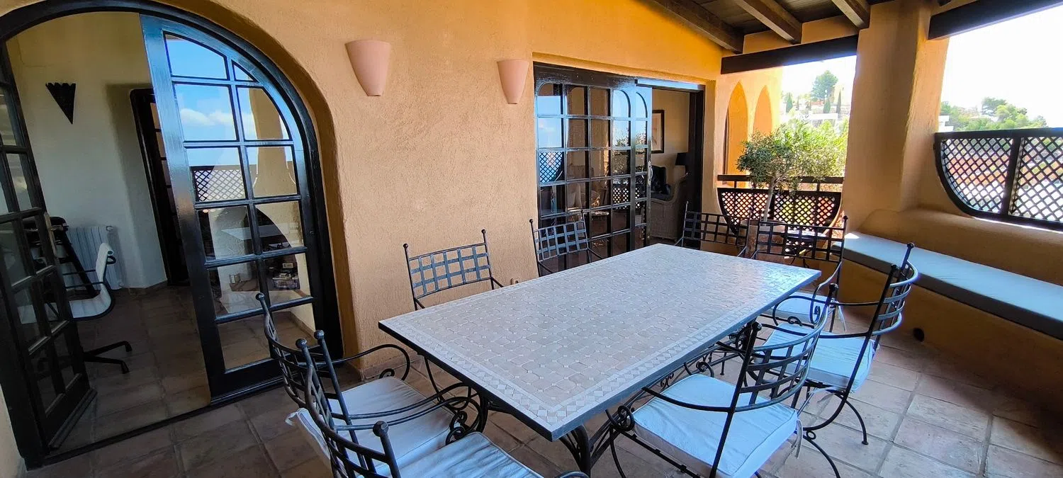This luxurious penthouse is situated in one of the most iconic residential areas of the Costa Blanca, characterized by a Mediterranean style with Moorish influences. Nestled near a prestigious golf course, it boasts breathtaking panoramic views of both the sea and the mountains.