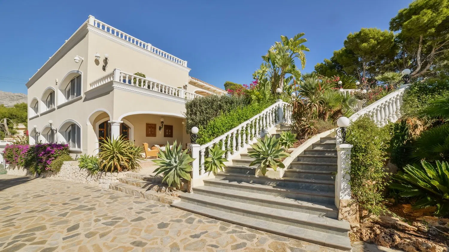 Are you in search of a highly private south-facing villa offering breathtaking 360º panoramic views of both the sea and the mountains? This property features an expansive heated pool and numerous sun-soaked terraces surrounding the house and pool, all located just three minutes from the beach. Be sure to check out our video and photo gallery, where each image tells its own unique story.