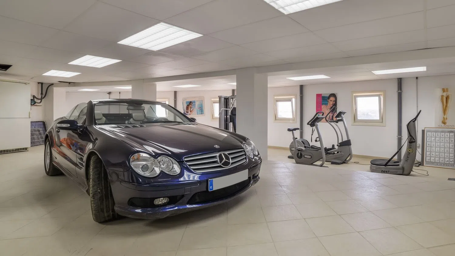 The beautifully landscaped grounds are adorned with lemon and orange trees, palm trees, and almond trees, all benefiting from an automatic irrigation system. Among the added features are exterior lighting, both covered and open terraces, an automatic electric entrance gate, a secure main door, built-in wardrobes, a gym, electric shutters, double-glazed windows, air conditioning for heating and cooling, a security alarm, and internet access.