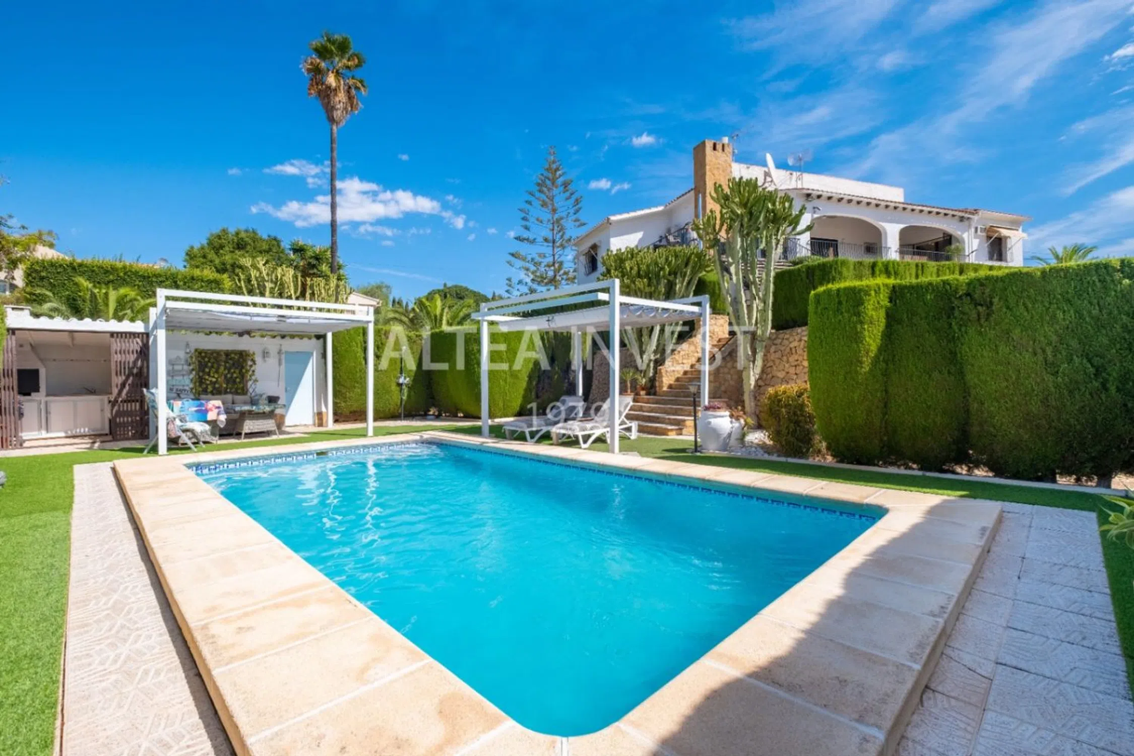Exclusivo Chalet con Encanto Mediterráneo en El Planet, Alfaz del Pi Descubra el privilegio de vivir en la Costa Blanca en un entorno donde la serenidad, la luz y la naturaleza se unen para crear un auténtico hogar de ensueño. Este magnífico chalet, situado en la prestigiosa y tranquila zona de El Planet en Alfaz del Pi, representa la esencia de la vida mediterránea: amplitud, confort y elegancia en un marco natural incomparable. Características Destacadas Espacios amplios y luminosos La vivienda ofrece estancias generosas que se llenan de luz natural durante todo el día. Sus cinco dormitorios garantizan comodidad tanto para la familia como para acoger a invitados, mientras que los cuatro baños, modernos y funcionales, aportan intimidad y confort en cada rincón. Un oasis de naturaleza y tranquilidad La propiedad se alza sobre una espectacular parcela de 3.000 m² rodeada de vegetación mediterránea. Un jardín cuidado con esmero y una piscina privada invitan a disfrutar del sol alicantino y a vivir momentos de auténtico bienestar. Su orientación sureste asegura una luminosidad constante y un ambiente vibrante durante todo el año. Confort en todas las estaciones El chalet está equipado con aire acondicionado, calefacción central y chimenea, creando un clima ideal en cualquier época del año. Sus espacios exteriores, como la barbacoa y la cocina de verano, están diseñados para compartir agradables reuniones con familiares y amigos. La cocina independiente, amplia y práctica, se convierte en un punto de encuentro donde cada comida se disfruta al máximo. Seguridad y practicidad Entre sus comodidades destacan el garaje privado, las terrazas cubiertas y descubiertas con vistas despejadas, sat-tv, internet y un sistema de seguridad con puerta reforzada y alarma. Todo lo necesario para vivir con total tranquilidad y comodidad. Ubicación privilegiada El Planet es una de las zonas más valoradas de Alfaz del Pi por su tranquilidad y su excelente conexión con los alrededores. Desde la propiedad se accede en pocos minutos a las playas de Altea y Albir, así como a restaurantes, comercios y todos los servicios esenciales. Un lugar perfecto para quienes desean la calma de un entorno natural sin renunciar a la cercanía de la costa y la vida urbana. Una propiedad para disfrutar del auténtico Mediterráneo Un refugio diseñado para vivir con estilo y aprovechar cada momento. Su diseño, sus comodidades y su ubicación hacen de él un hogar único, donde cada día se disfruta con la privacidad, la luz y la belleza que solo la Costa Blanca puede ofrecer. Vivir aquí es disfrutar del verdadero lujo mediterráneo en un entorno privilegiado.