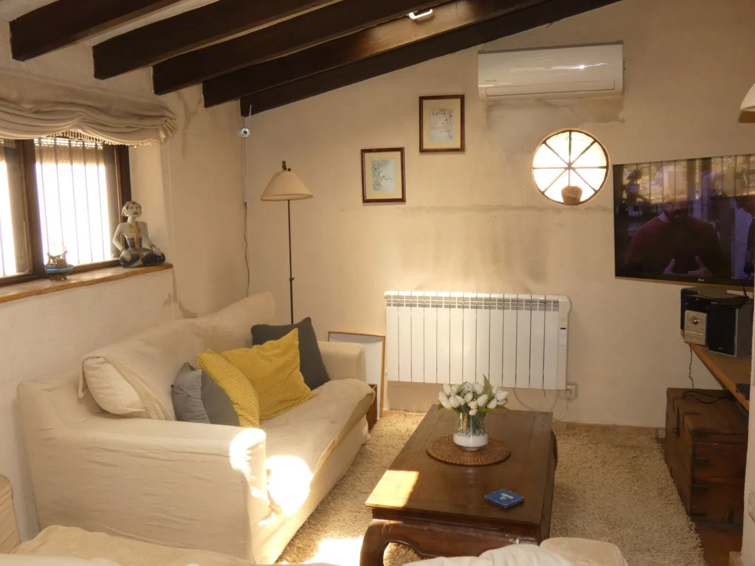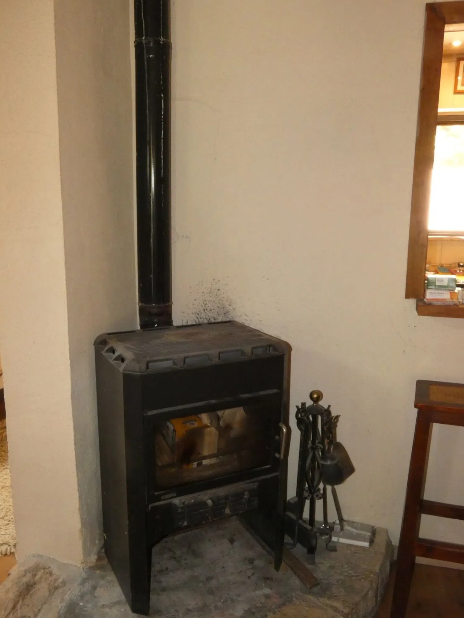 Moving to the first floor, you will find a large second bedroom complete with its own bathroom, a feature added in 2010. All rooms are equipped with air conditioning for your comfort, while a wood-burning stove in the living room provides cozy warmth during cooler days.