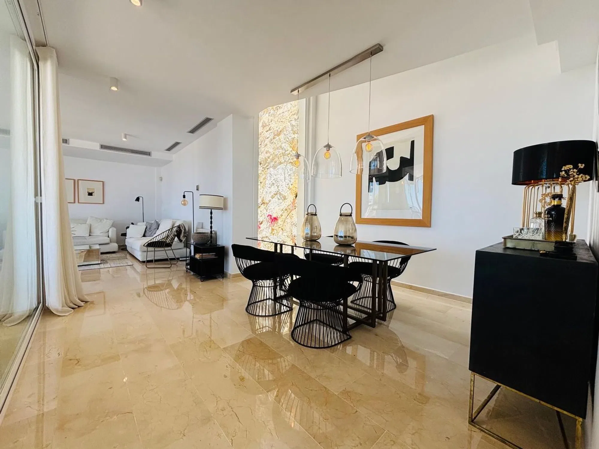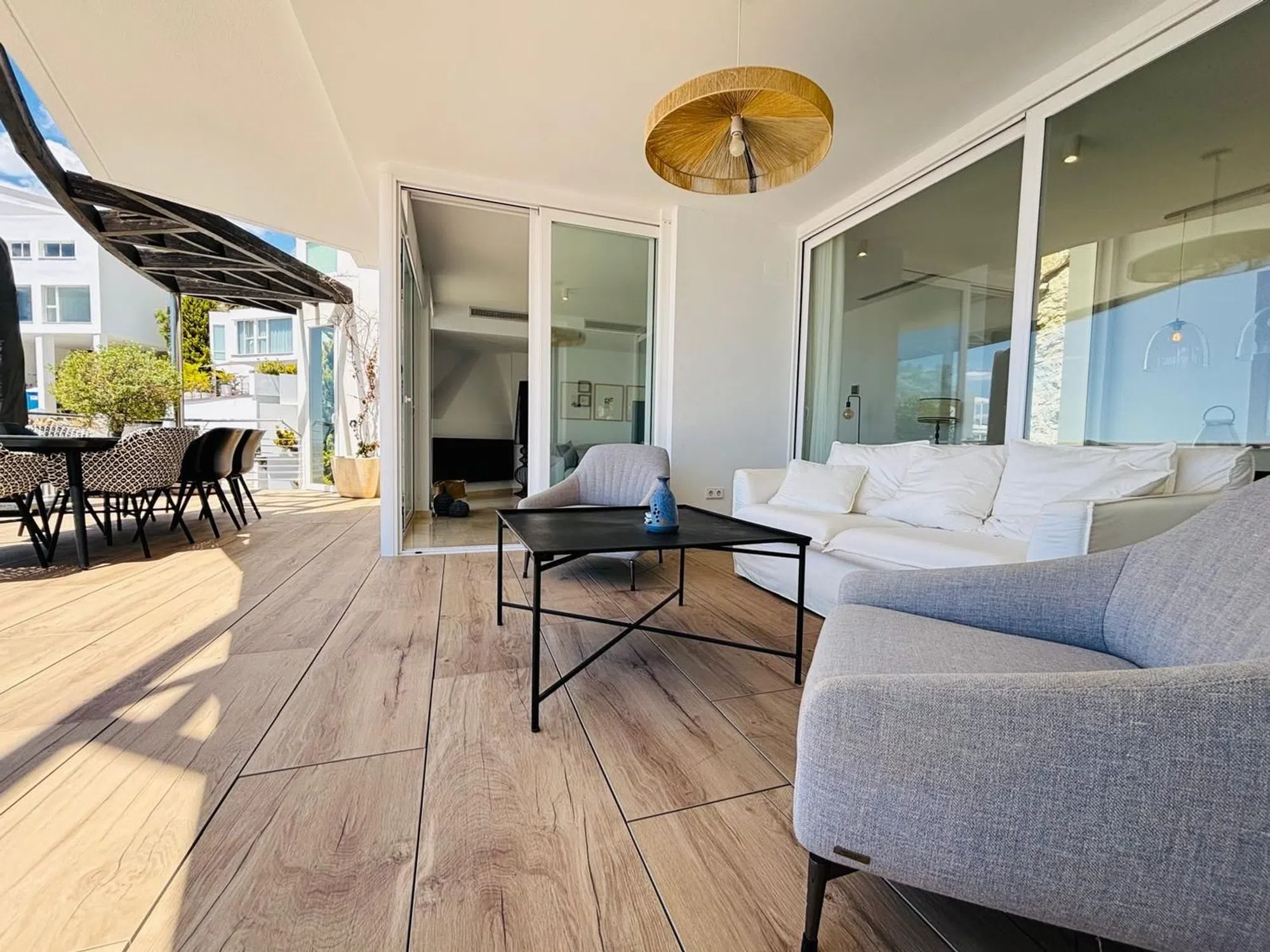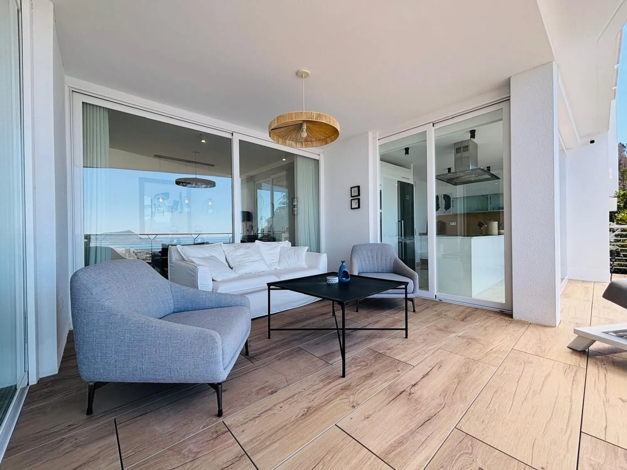 Descubre esta exclusiva villa de lujo, un verdadero oasis que combina elegancia y confort. Con 352 m² construidos y 303 m² útiles, esta impresionante propiedad cuenta con 4 dormitorios en suite, cada uno diseñado para ofrecer el máximo confort y privacidad. Situada en un complejo cerrado con cámaras de vigilancia, disfrutarás de la tranquilidad y seguridad que mereces. La villa se distribuye en tres plantas conectadas por un ascensor, lo que facilita el acceso a cada rincón de este hogar. El amplio salón-comedor, bañado en luz natural gracias a los ventanales del suelo al techo, es el lugar perfecto para relajarse o recibir a amigos y familiares. La cocina de diseño abierta, equipada con una isla central, hará las delicias de los amantes de la gastronomía. En el exterior, una amplia terraza con piscina privada te invita a disfrutar del sol y las vistas panorámicas al mar y la montaña. La zona chill out y la barbacoa integrada son ideales para organizar inolvidables reuniones al aire libre. Además, la villa cuenta con 2 garajes cerrados y acabados de alta gama que reflejan un estilo de vida exclusivo. No pierdas la oportunidad de vivir en este espectacular hogar, construido en 2019 y orientado al sur para aprovechar al máximo la luz solar.