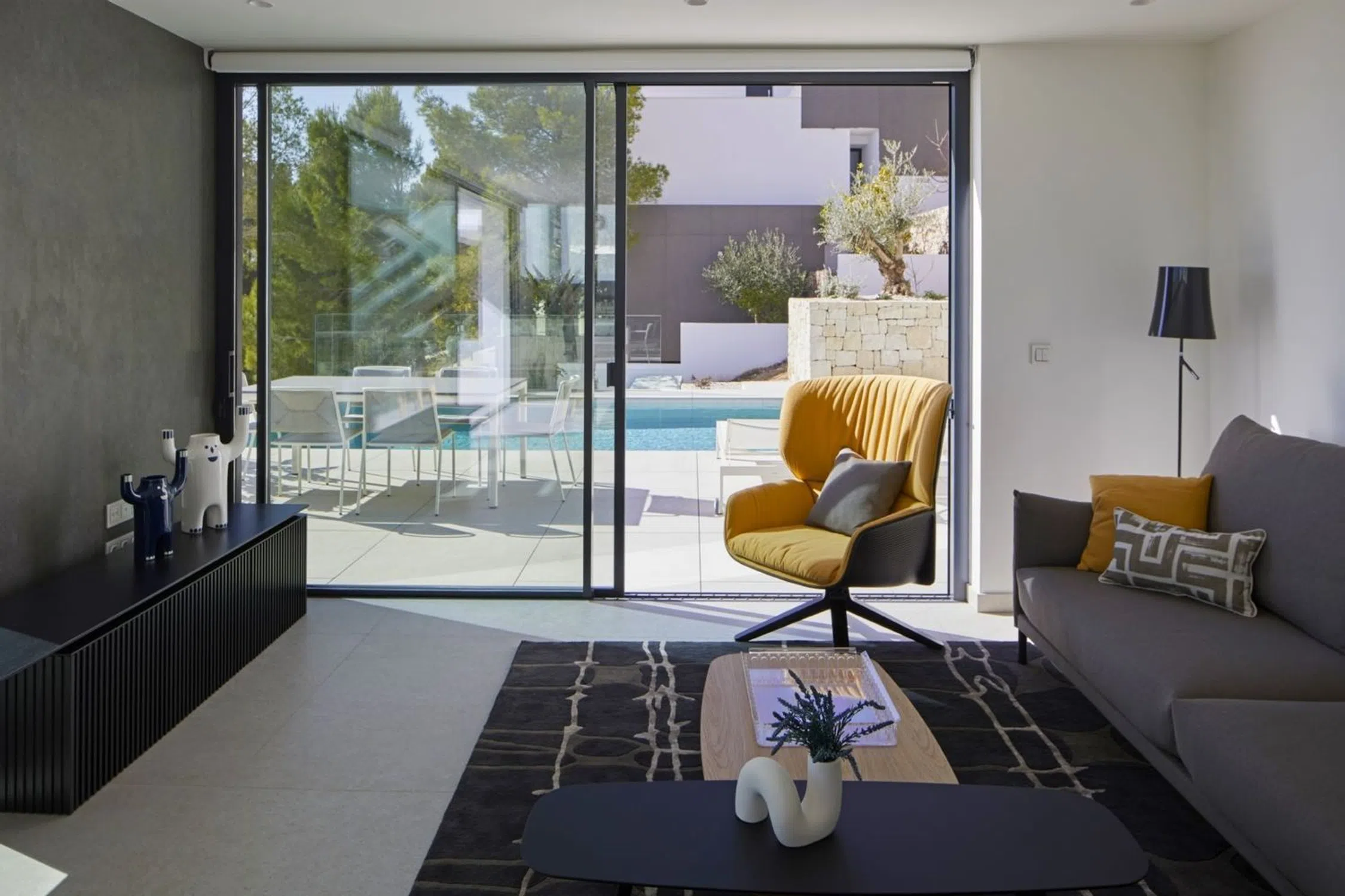 En la Sierra de Altea, con unas impresionantes vistas al mar, se encuentra esta Villa, minimalista de nueva construcción, con las mejores calidades y un diseño perfecto. La villa está distribuida en tres alturas, en la planta alta dispone de un garaje para dos coches y el hall de entrada que nos comunica con el resto de la vivienda. En la planta media se encuentran tres de los cuatro dormitorios de esta vivienda, dos dormitorios principales y dos dormitorios adicionales. El dormitorio principal de esta planta tiene la cama situada para disfrutar de las maravillosas vistas al mar, tiene acceso a terraza privada y dispone de baño en suite y vestidor. Los otros dos dormitorios tienen también cada uno su baño en suite, amplios armarios roperos y comparten terraza. Además de tener armarios adicionales en el pasillo de acceso a los mismos. La planta principal se distribuye en dos zonas, delimitadas por el hall y el núcleo de la escalera. En un lado tenemos el cuarto dormitorio con baño en suite, vestidor y acceso a la terraza principal con una zona de porche. La otra zona alberga un aseo para invitados, cocina abierta al comedor con una isla central con zona de fuegos y de desayuno, comedor con acceso al porche, una luminosa sala de estar. Tres espacios abiertos, inundados por la luz del mediterráneo y sobre todo comunicados con el exterior de la vivienda, con sus varios porches, aseo de cortesía exterior, amplia terraza y una piscina con un lateral en sinfín para no perder el mar de vista ni un sólo instante. Villa equipada con ascensor, sistema de seguridad, suelo radiante, aire acondicionado, iluminación técnica, zonas ajardinadas. Diseño, equipamiento, calidad y unas impresionantes vistas al mar le esperan en Altea, Costa Blanca Norte. [IW].