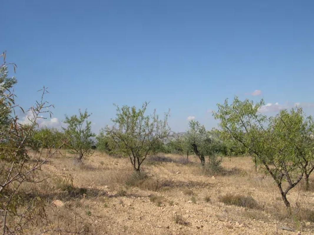 Terreno con fachada a carretera, unos 70 almendros en producción, muchos pinos y encinas, algún olivo, etc. También hay caza. Estudio permuta por propiedad de precio similar en Alicante o su...