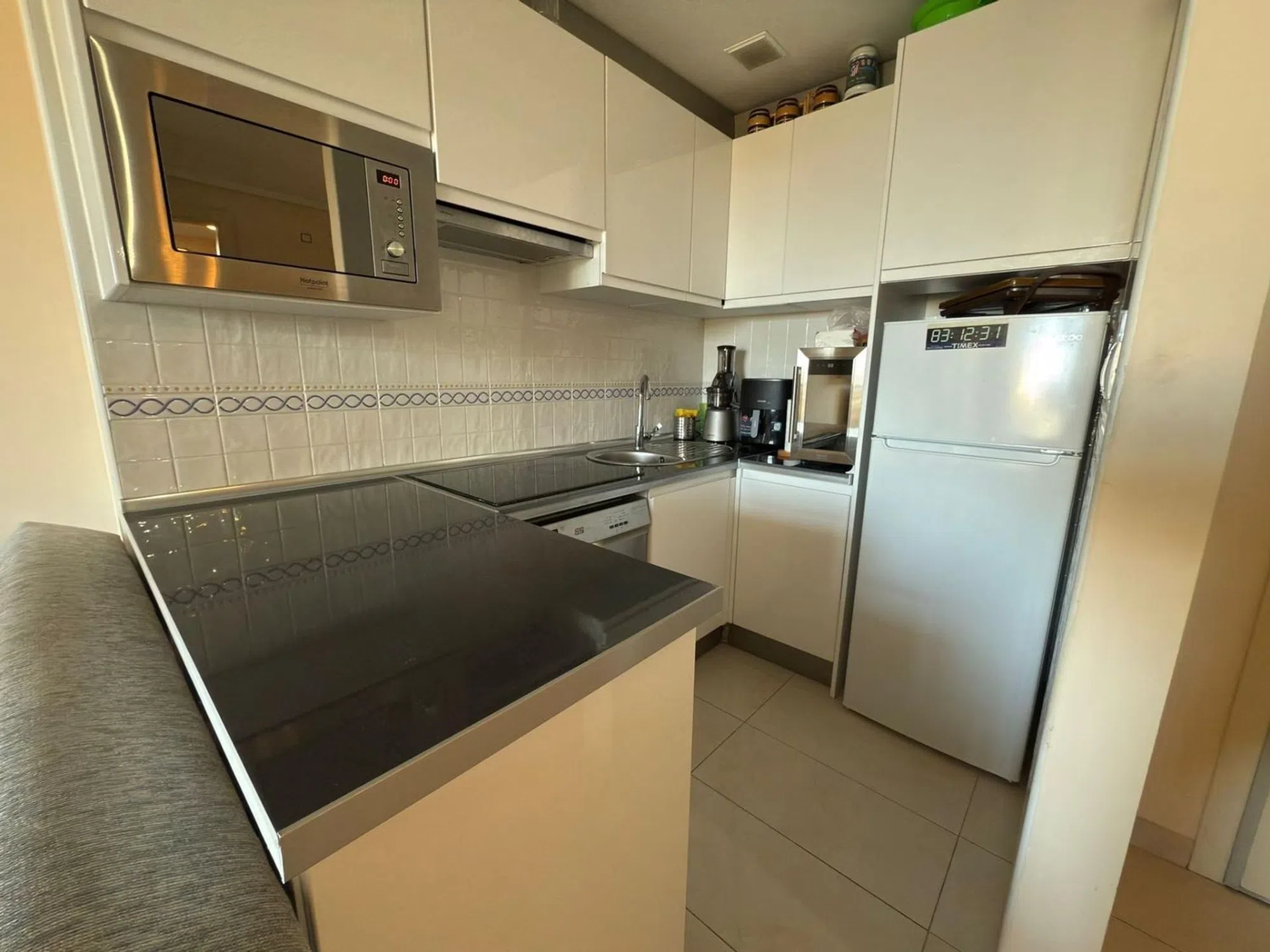 Apartamento en Benidorm, 78 m² de superficie, 15 m² de terraza, 600 metros de la playa, 1 dormitorio, 1 baño, acabado exterior de aluminio. Además: armarios empotrados, ascensor, piscina comunitaria. Tarifa de servicio: 75 EUR/mes. Impuesto sobre bienes inmuebles (IBI): 400 euros. (42.211) [IW].