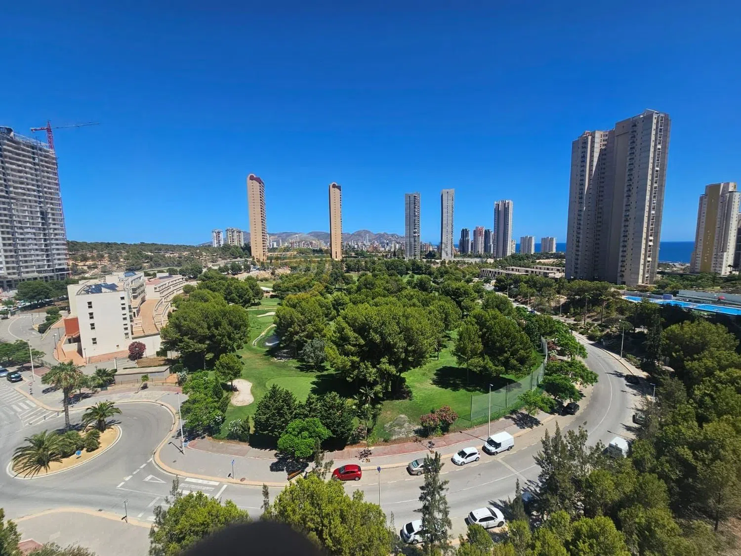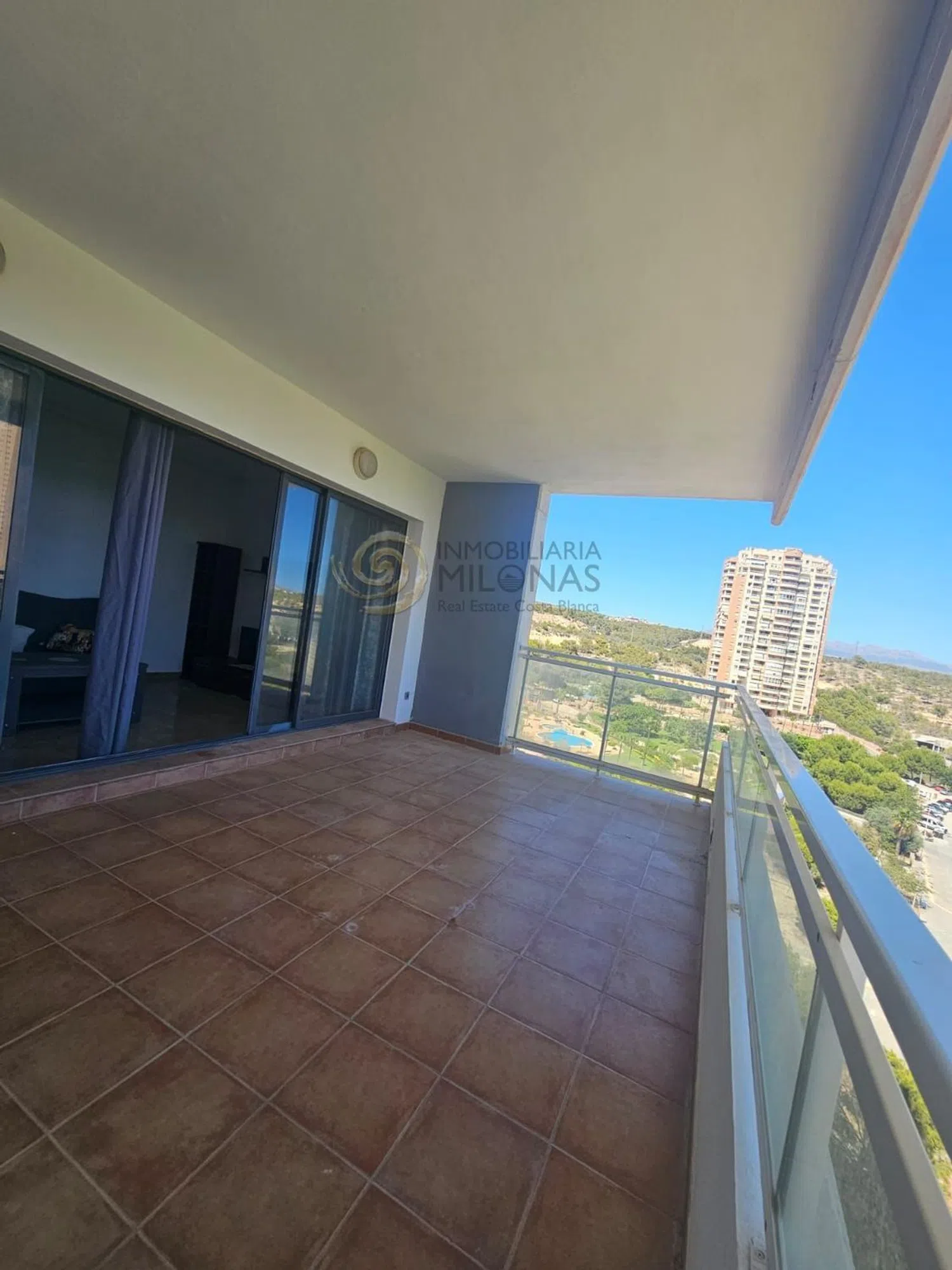 Beautiful corner apartment located in a trendy residential area, featuring approximately 85 m2 with two bedrooms and two full bathrooms. The spacious living and dining area flows into an independent kitchen with a gallery, leading to a large open terrace that boasts stunning views of the sea, the golf course, and the mountains.