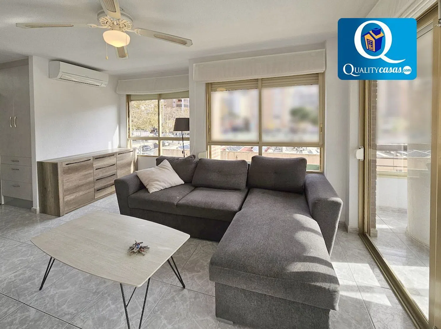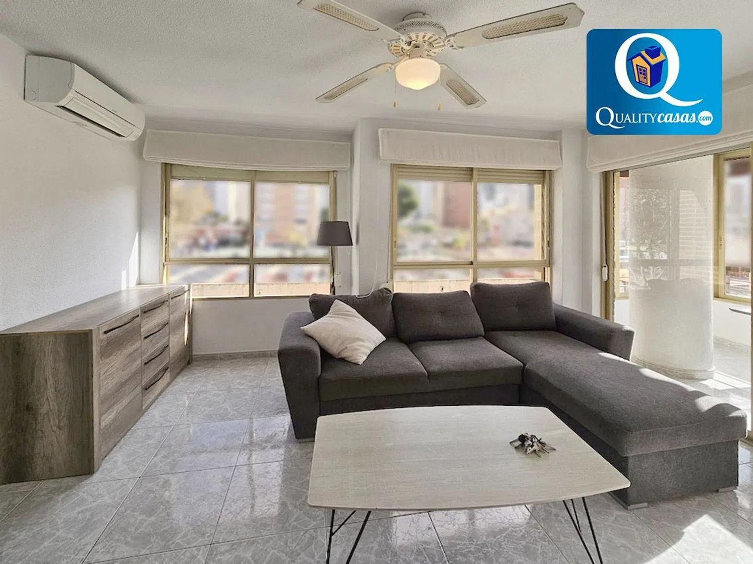 Referencia 53023 Un excelente piso en magnífica zona de Benidorm (Playa de Levante), con urbanización privada, en avenida principal y a diez minutos de la playa. Se trata de una propiedad totalmente exterior, muy amplia y luminosa, con una excelente distribución y grandes posibilidades para dotarla de nuestro estilo personal. Con una construcción sólida y de calidad, la vivienda se ofrece semiamueblada, se encuentra en excelente estado y dispone de óptimas calidades, contando con suelos de gres, AA. CC con 4 splits, puerta blindada, carpintería lacada en blanco, ventiladores de techo y ventanas aluminio climalit, entre otras mejoras. El amplio y luminoso salón, muy bien comunicado, disfruta de dos orientaciones y su magnífica terraza acristalada nos ofrece vistas despejadas a la avenida. La moderna cocina independiente, con zona de office, se encuentra totalmente equipada y cuenta con todos los electrodomésticos. La vivienda cuenta con 3 dormitorios exteriores con armarios empotrados y 2 baños completos. La finca dispone de ascensor y la vivienda cuenta además con plaza de parking en la urbanización, que dispone de zona comunitaria ajardinadas, piscinas para adultos y niños y zona deportiva con pista de tenis. Todo un lujo de vivienda en excelente zona de Benidorm, para quien sabe apreciar la calidad, exclusividad y posibilidades que ofrece. Concierte ahora una visita y compruebe personalmente la oportunidad que supone la adquisición de esta propiedad. La presente publicación tiene carácter meramente informativo, orientativo y no vinculante, por lo que no supone información contractual alguna, siendo su uso estrictamente comercial. Este anuncio puede contener errores, se muestra a título informativo de la información recibida, sin ser responsable la inmobiliaria de dichos errores.