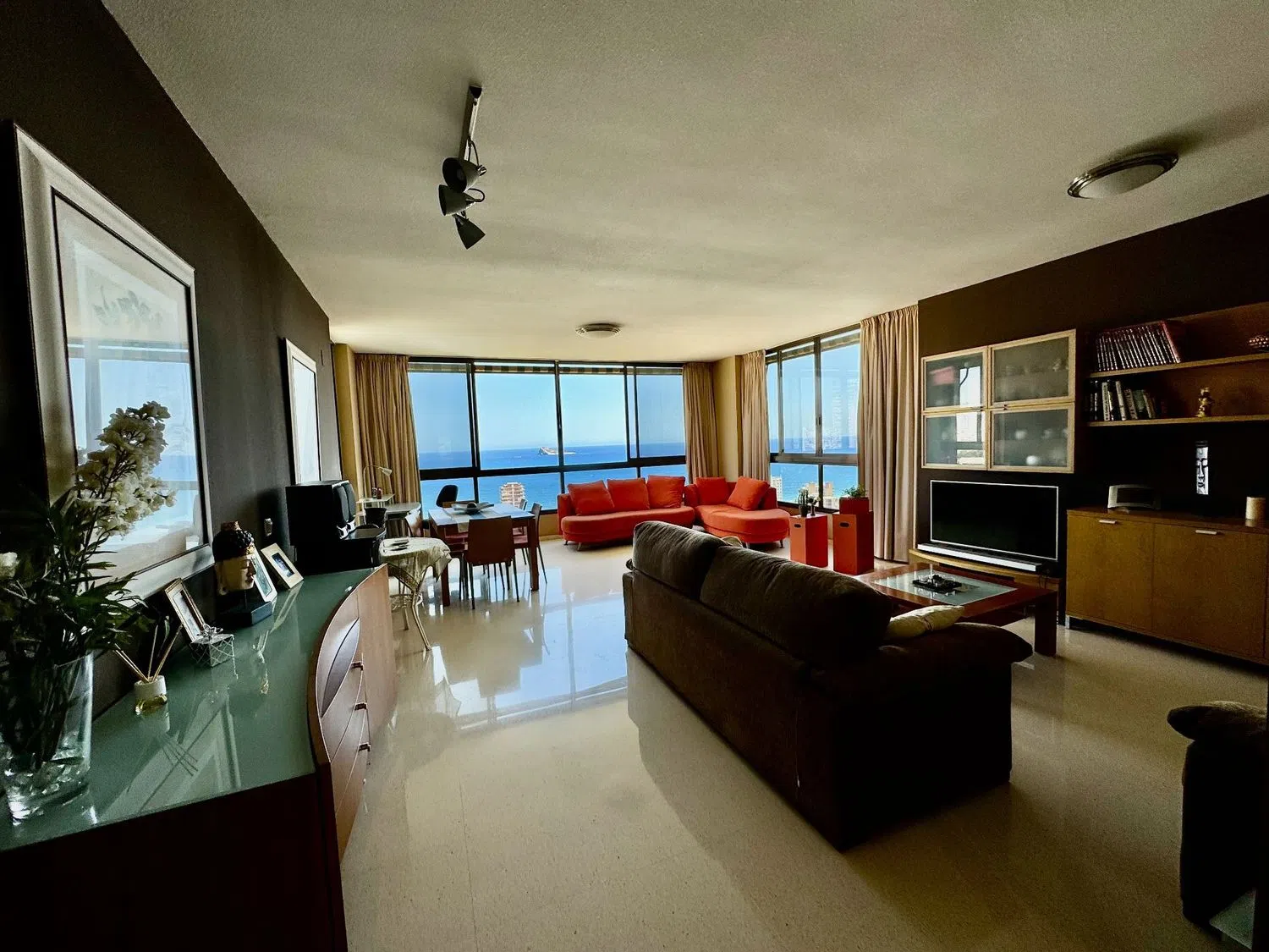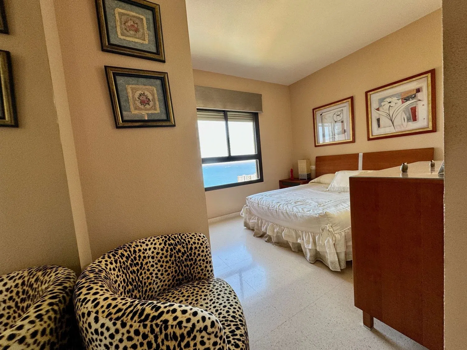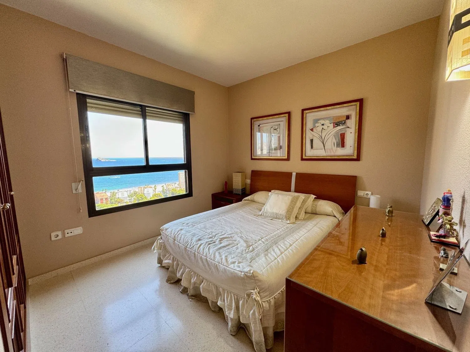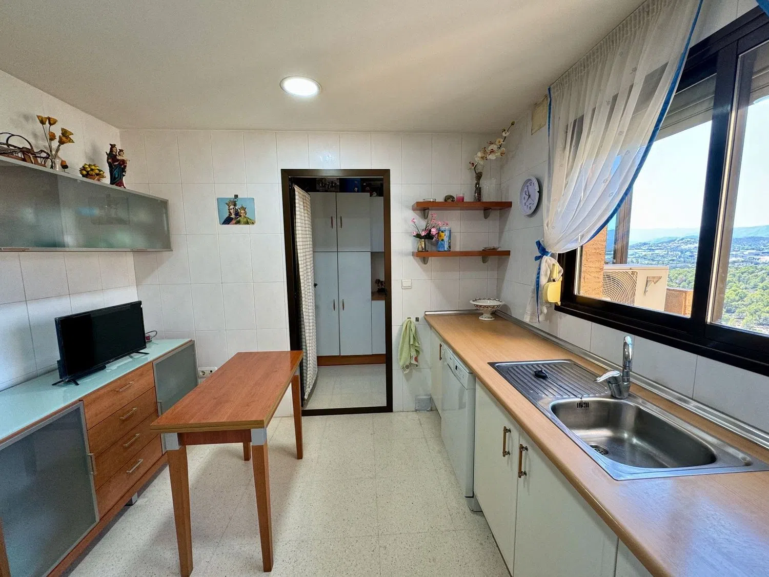 This spacious apartment boasts stunning sea views and is conveniently located just 500 meters from one of the finest beaches in the area. The living room is expansive, covering 48 square meters, and there are three generously sized bedrooms, one of which features an en-suite bathroom. The kitchen offers mountain views and comes fully furnished, complete with a pantry.
