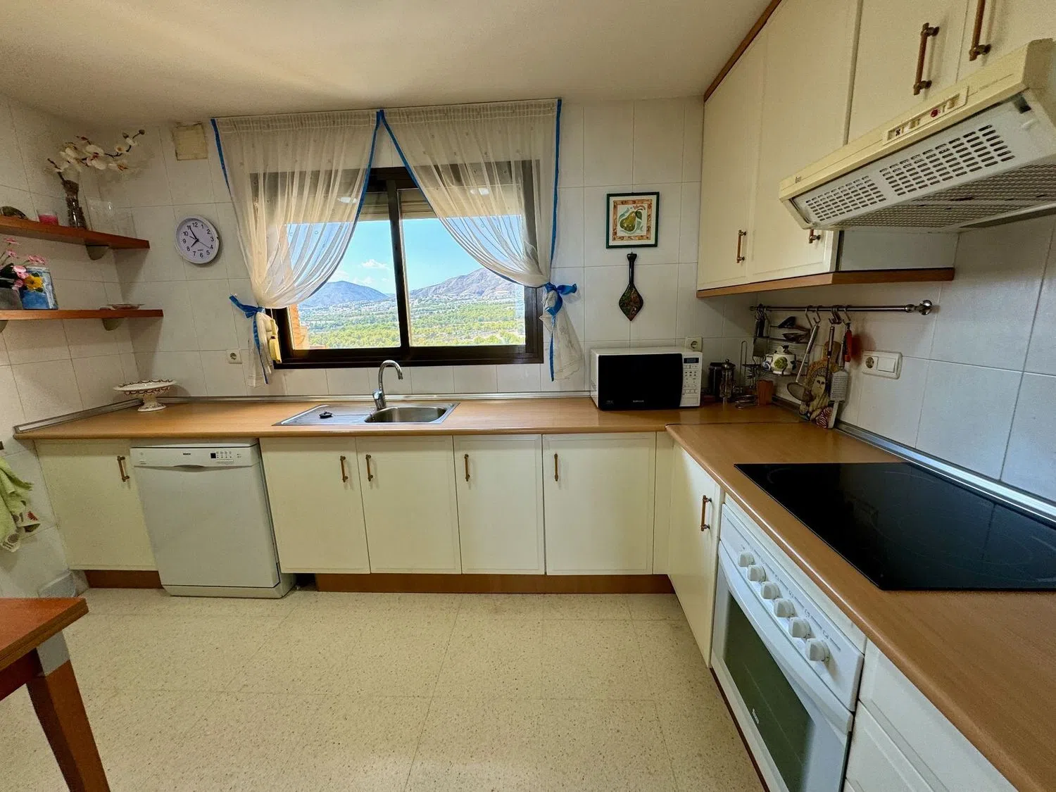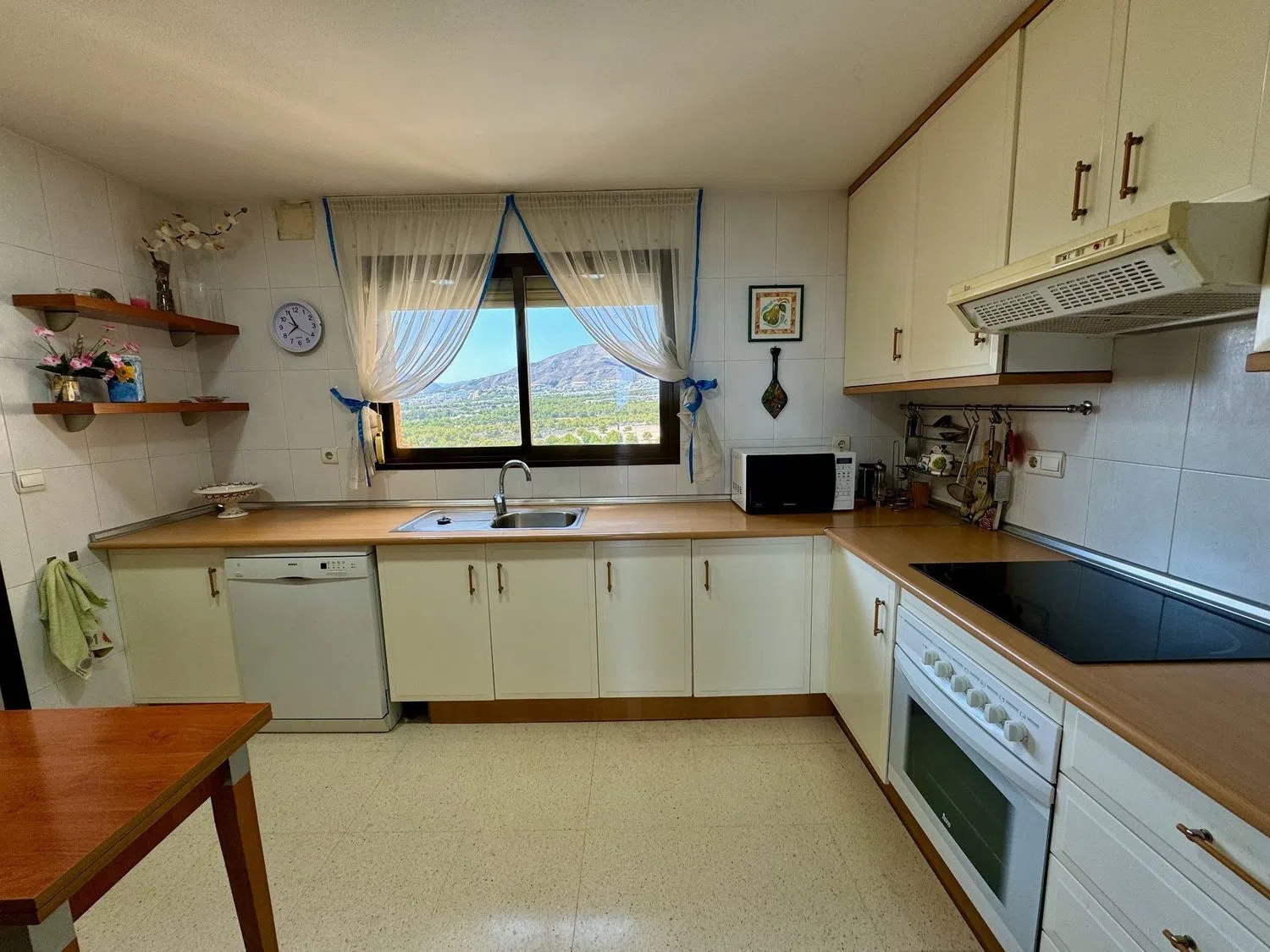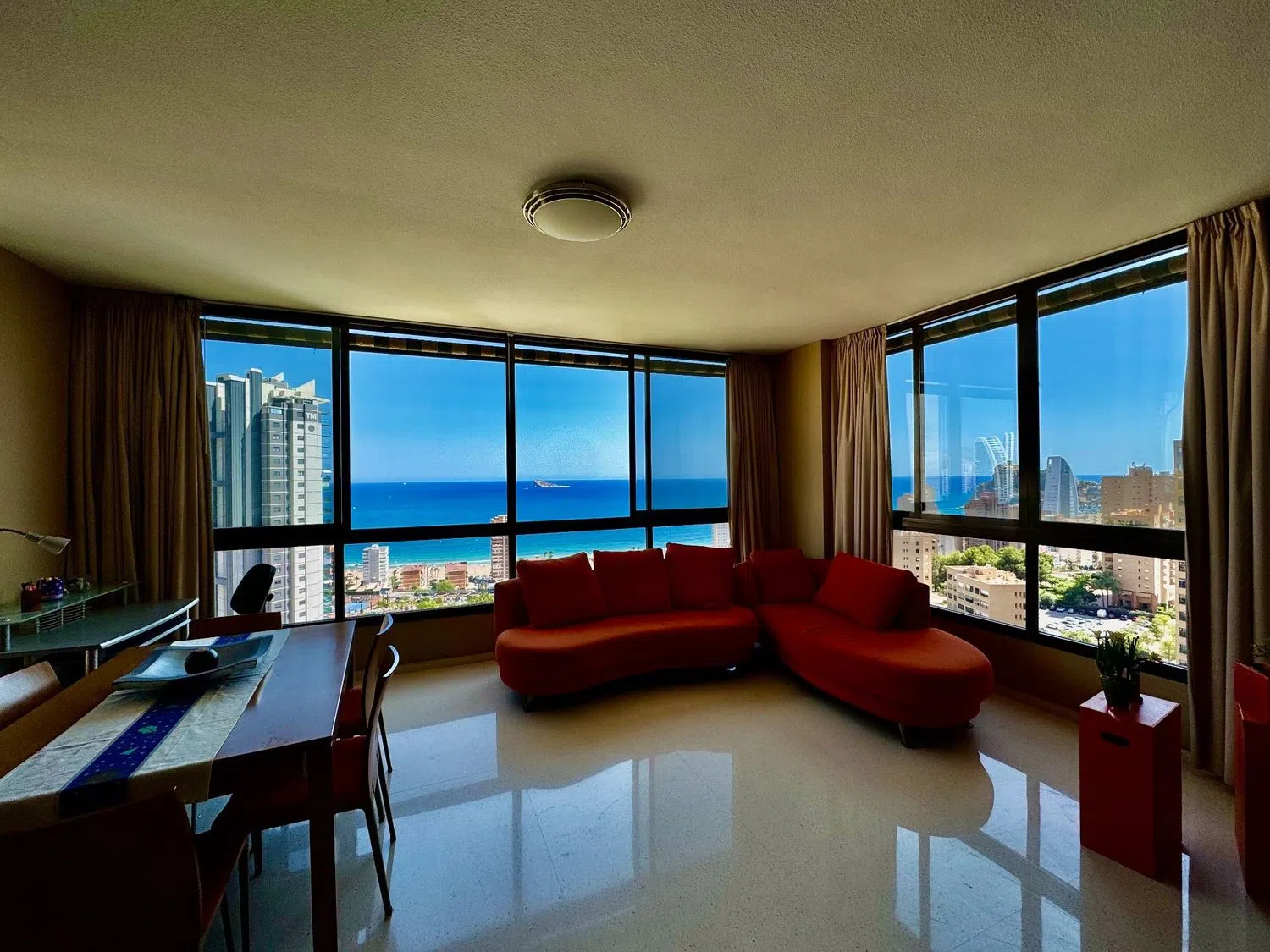 This spacious apartment boasts stunning sea views and is conveniently located just 500 meters from one of the finest beaches in the area. The living room is expansive, covering 48 square meters, and there are three generously sized bedrooms, one of which features an en-suite bathroom. The kitchen offers mountain views and comes fully furnished, complete with a pantry.