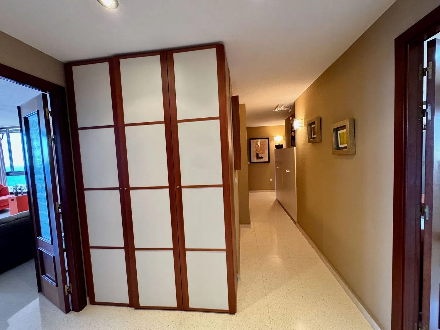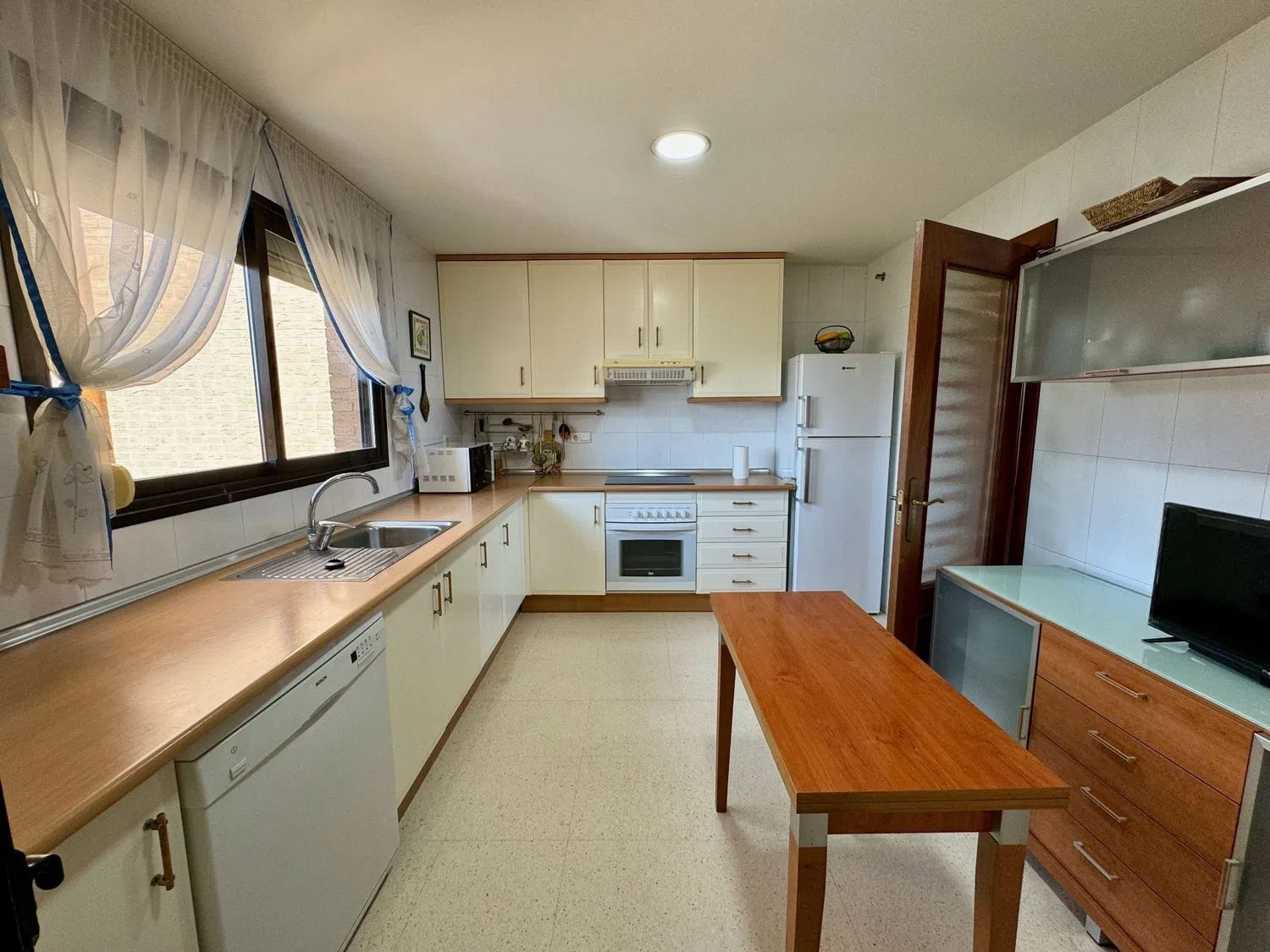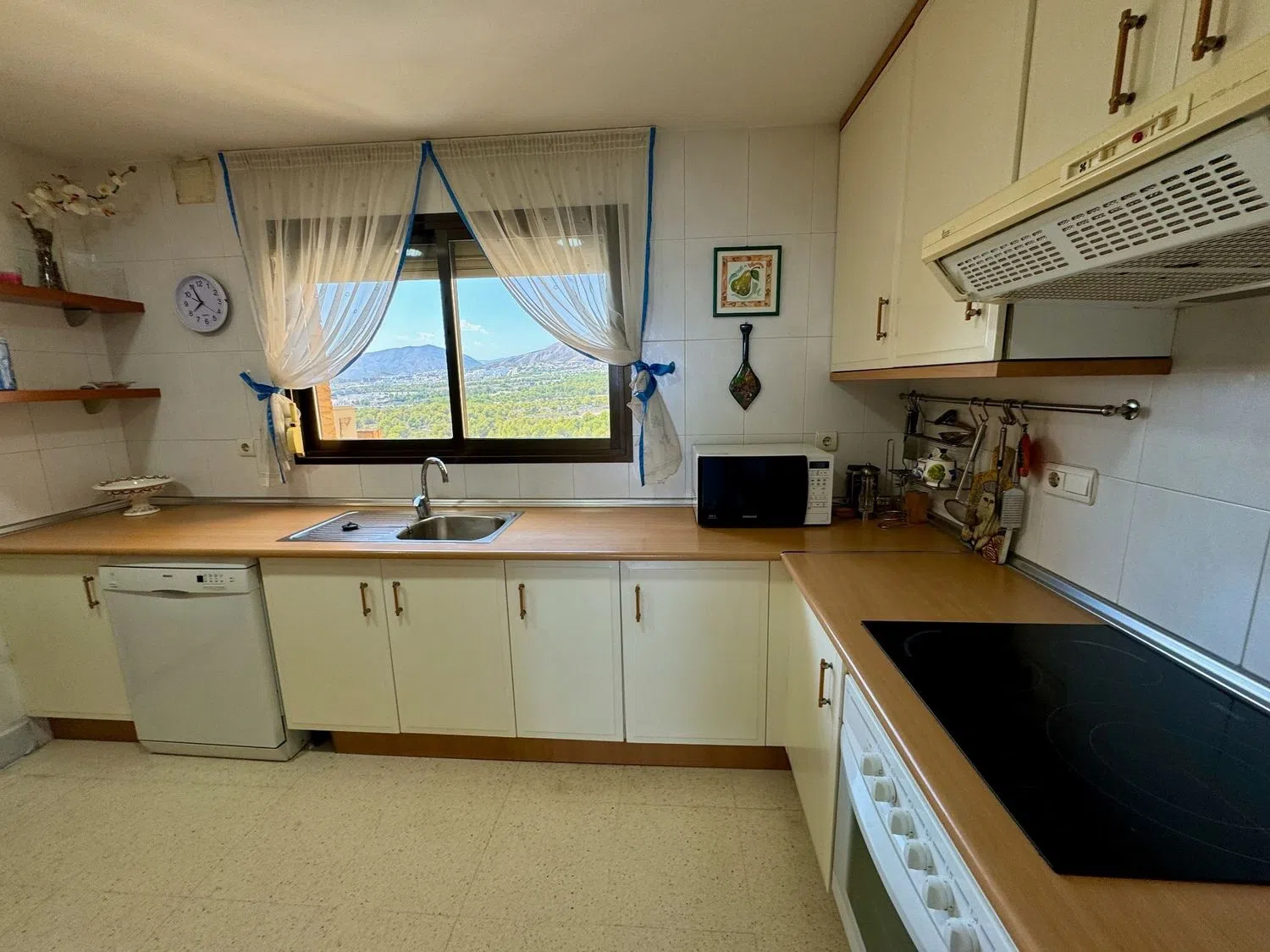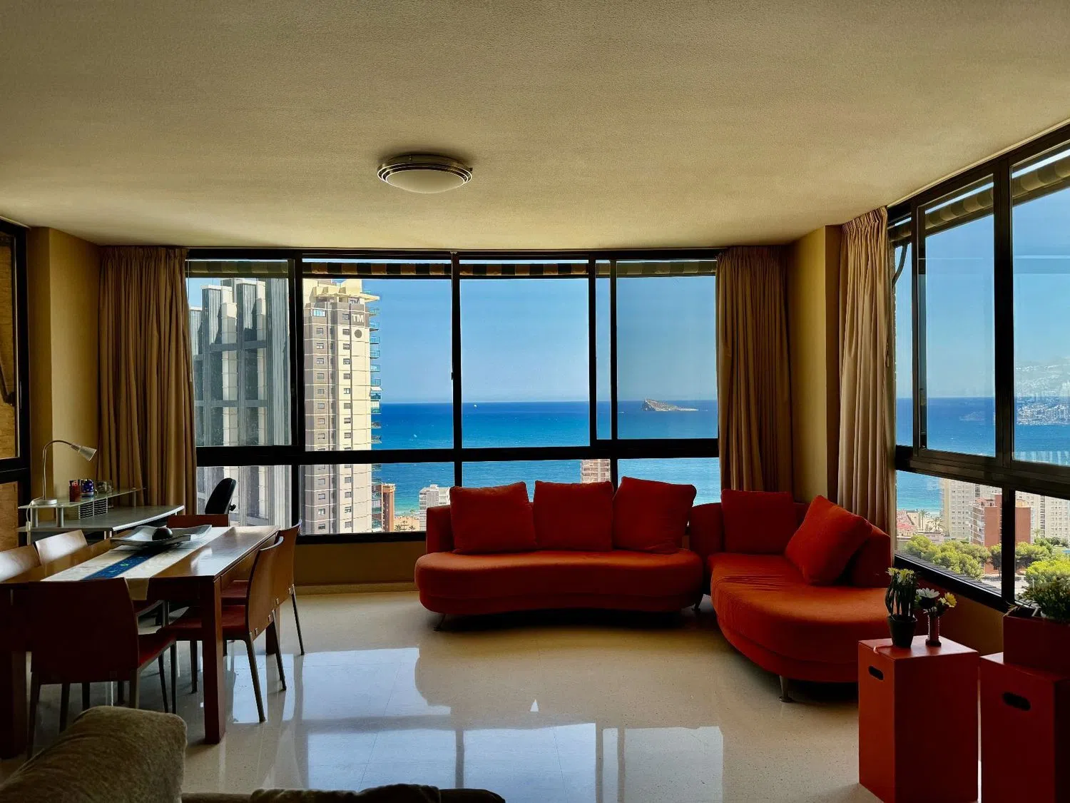 This spacious apartment boasts stunning sea views and is conveniently located just 500 meters from one of the finest beaches in the area. The living room is expansive, covering 48 square meters, and there are three generously sized bedrooms, one of which features an en-suite bathroom. The kitchen offers mountain views and comes fully furnished, complete with a pantry.