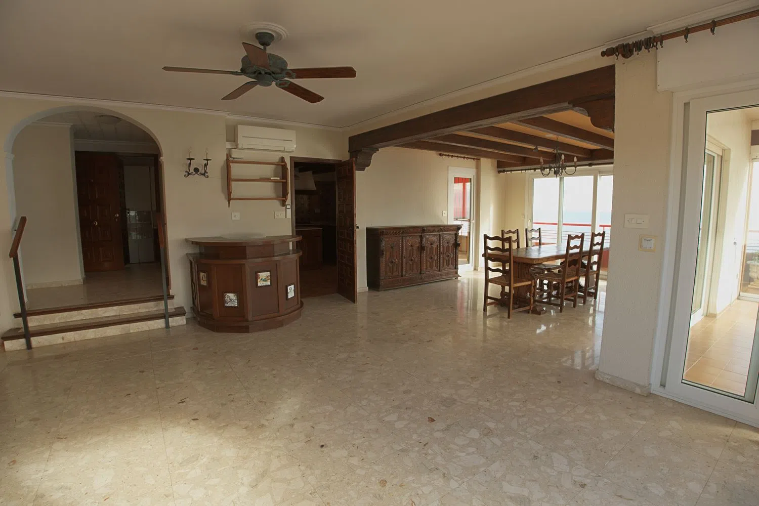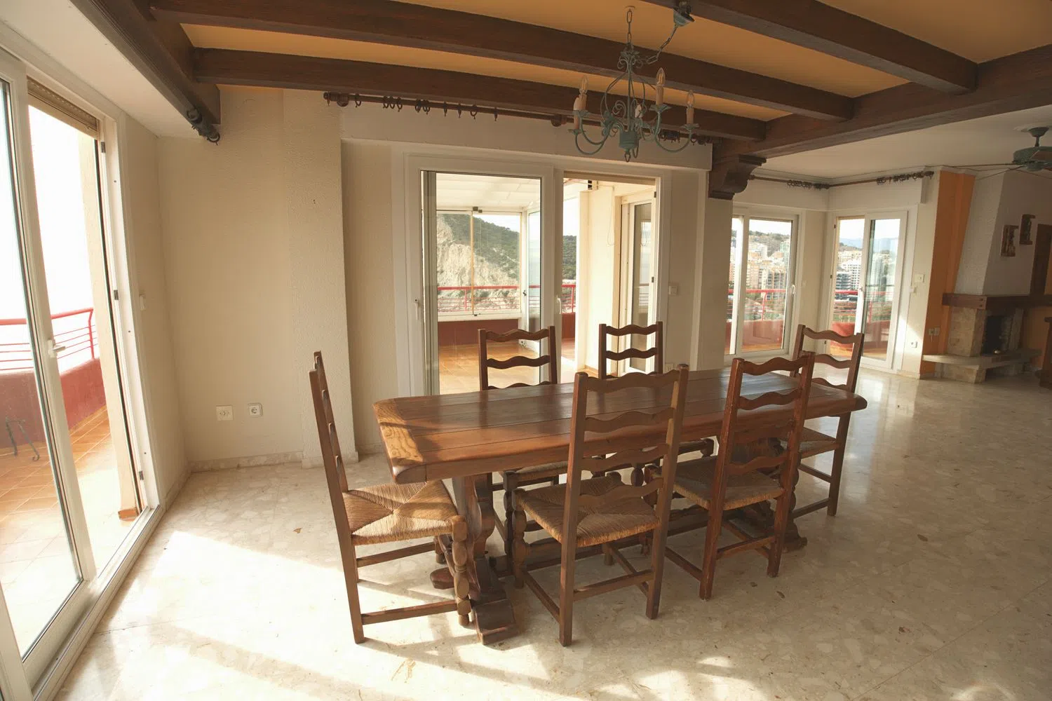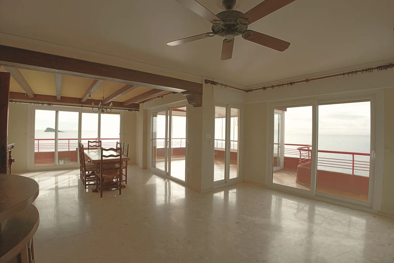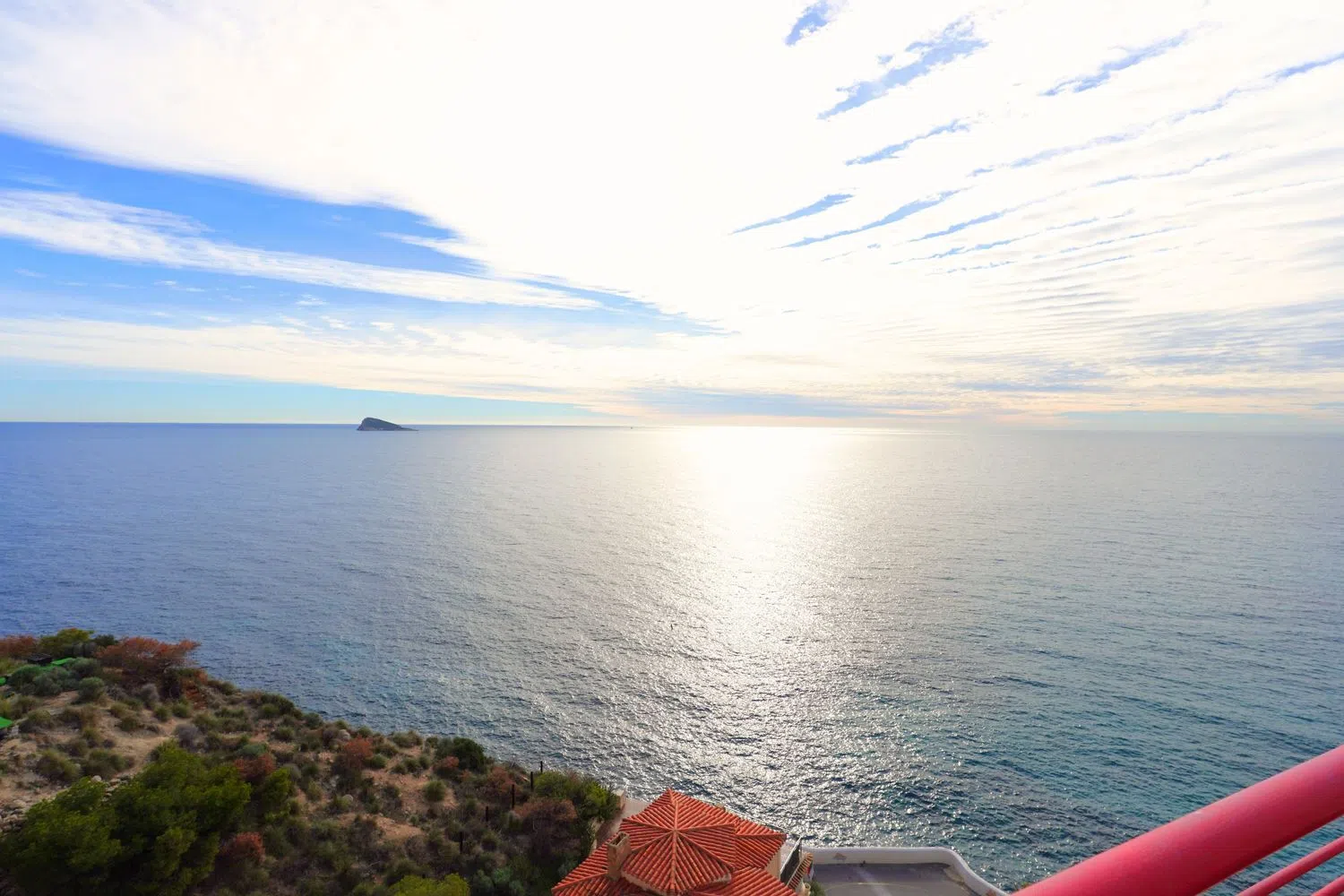 Si estás buscando un ático con impresionantes vistas al mar, el edificio Bellver es la opción ideal. Situado en la exclusiva zona de Benidorm Poniente, en la punta de la Cala de Finestrat, este espectacular inmueble ofrece unas vistas al mar de 180º que te dejarán sin aliento. Se trata de un amplio piso con grandes oportunidades de personalización para crear el ambiente que siempre has deseado, con vistas al mar desde todas las estancias. Los espacios son abiertos y amplios, perfectos como base para diseñar un hogar único. Ubicado en un lugar elevado privilegiado, el edificio Bellver ofrece una vista panorámica del azul turquesa del Mediterráneo y de la arena dorada de la playa de Cala de Finestrat. Para acceder al ático, que se encuentra en la sexta y última planta, simplemente utiliza la entrada principal al edificio y el ascensor, que tiene acceso privado a esta planta. Al entrar, un acogedor recibidor te da la bienvenida y te conduce a un luminoso espacio abierto de doble altura y una sala de estar - comedor de 45 m², perfecto para entretener a familiares e invitados. Cuenta con chimenea y acceso directo a la terraza acristalada, la cocina interior y la exterior. Los amplios ventanales permiten que la luz natural inunde el espacio y ofrecen vistas excepcionales al mar que te cautivarán al instante. En el exterior, disfrutarás de una terraza cubierta de 16 m², donde podrás relajarte y contemplar el impresionante panorama, además de acceder a tu piscina privada. La amplia cocina está diseñada para facilitar la preparación de tus comidas, y cuenta con una terraza cerrada contigua equipada con barbacoa, perfecta para disfrutar de comidas al aire libre. Un funcional lavadero con espacio de almacenaje completa este espacio. En esta misma planta, encontrarás un amplio dormitorio principal que también ofrece vistas panorámicas al mar y acceso directo a la terraza. Cuenta con armarios empotrados y un amplio baño privado. Además, hay otro dormitorio, un baño adicional y un aseo de cortesía separado en el mismo nivel. Ascendiendo por una escalera exterior, llegarás a la piscina privada del inmueble. Y si sigues subiendo encontrarás un increíble solárium de 130 m², amplio y luminoso, con vistas fenomenales al mar, ideal para disfrutar del sol en total privacidad. Este solarium cuenta con un loft completo con cocina y baño ya reformados y con todas las comodidades necesarias, sin duda un espacio extra que hace de esta vivienda un inmueble muy especial. Para mayor comodidad, se dispone de un garaje privado cerrado. La vivienda se sitúa en una calle residencial muy tranquila sin tráfico alguno, además tiene fácil acceso a pie a la cala de Finestrat y a la playa de Poniente, dando la posibilidad de disfrutar de todos los servicios en unos pocos minutos. No dudes en visitarla! ABSTENERSE AGENCIAS.