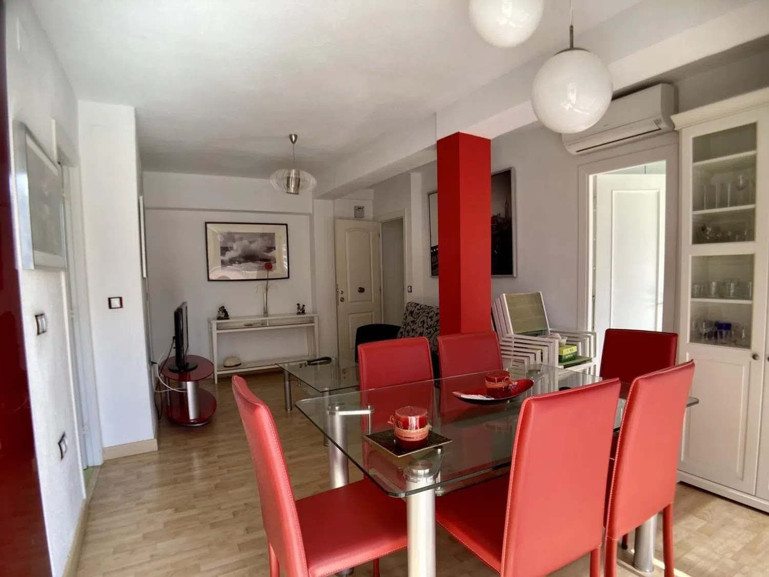 Within a gated community, residents can enjoy beautiful shared green spaces and communal parking. Recently renovated, this penthouse comes fully furnished and is ready for immediate occupancy. It features both heating and cooling air conditioning, ensuring comfort throughout the year.