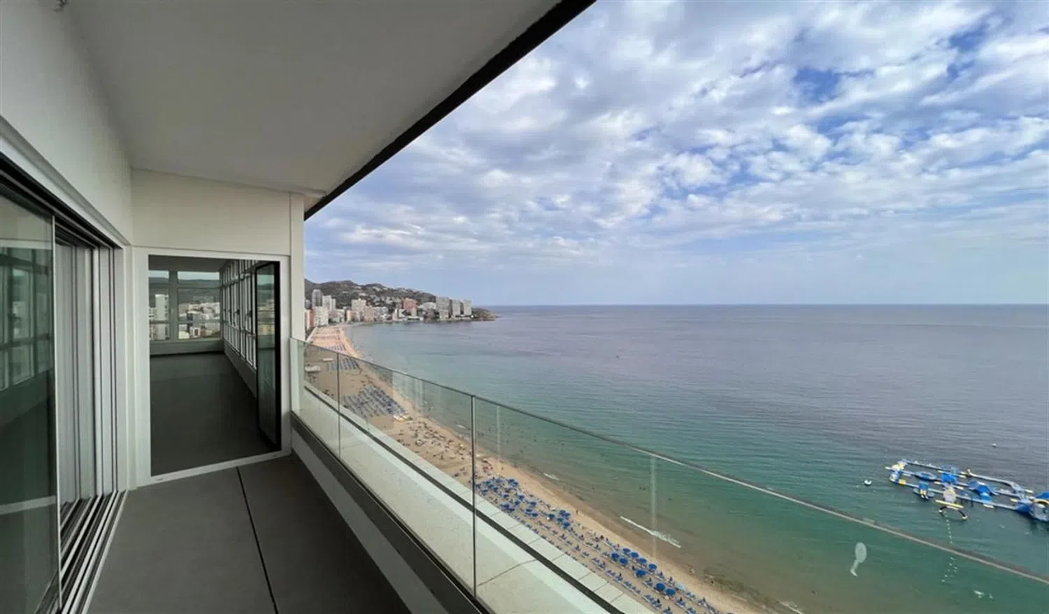 Exceptional luxury opportunity - a stunning and spacious penthouse located on the 28th floor, boasting dual corner exposure and three orientations, with spectacular sea and beach views, situated right on the beachfront. This remarkable property offers a direct exit to the beach and spans 235 m² constructed with 170 m² usable space, all with breathtaking vistas.