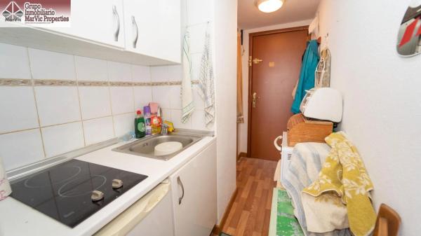 Descubre este acogedor estudio ubicado en la zona de Plaza de Toros, a tan solo 1200 metros del mar. Con una superficie construida de 30 m² (28 m² útiles), esta propiedad se encuentra en buen estado y disfruta de una orientación suroeste que garantiza luminosidad durante todo el día. El inmueble cuenta con un baño completo, cocina americana equipada únicamente con muebles y está totalmente amueblado para tu comodidad. Además, podrás disfrutar de vistas despejadas desde su terraza acristalada. La urbanización ofrece múltiples servicios: piscina comunitaria ideal para relajarte bajo el sol; vigilancia las 24 horas que brinda seguridad adicional; así como zonas infantiles perfectas para familias. Su ubicación céntrica permite acceder fácilmente a hospitales, colegios, centros comerciales e instalaciones deportivas. Este estudio es perfecto tanto como residencia habitual o inversión vacacional ya que se vende sin inquilino actual lo cual elimina cualquier problema relacionado con la posesión inmediata. No pierdas la oportunidad de adquirir esta joya inmobiliaria.