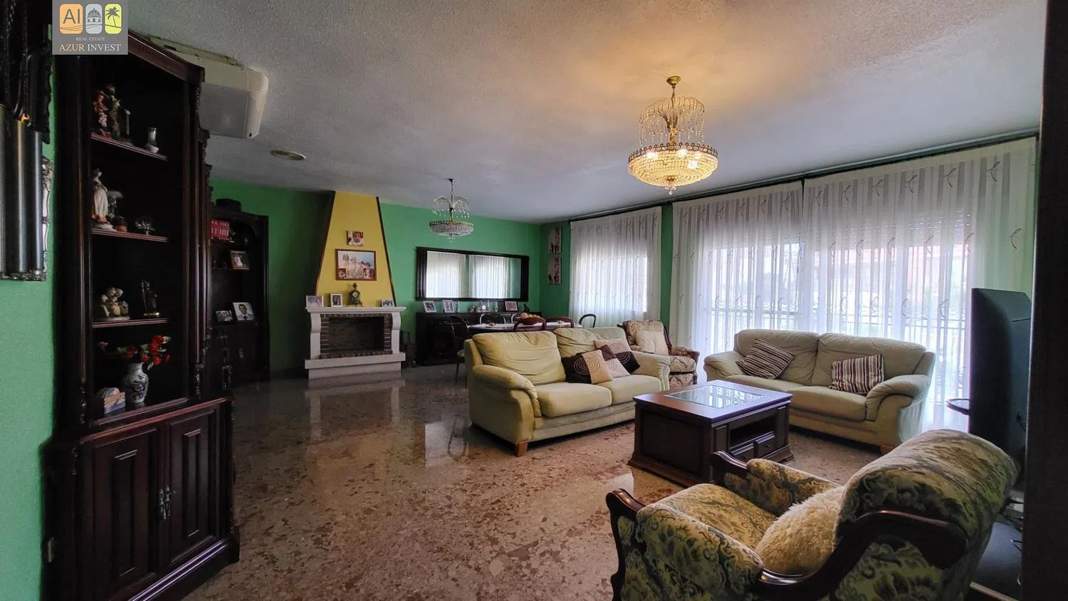 This spacious villa boasts a generous 410 m2 of constructed area, set within a sprawling 1386 m2 plot in a sought-after location. The property is designed across two levels, with the main living area situated on the first floor. This level features three well-appointed bedrooms, two bathrooms, a separate kitchen, a laundry area, and a large living-dining room complete with a cozy fireplace. An expansive terrace provides stunning views of the lush garden, the inviting pool, and the surrounding cityscape.