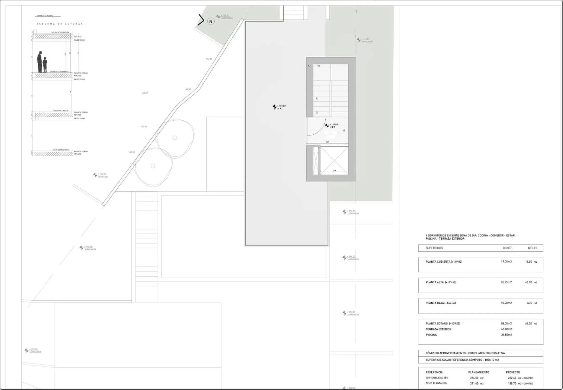 Esta villa especial estará orientada al sureste y ofrecerá maravillosas vistas al mar desde Moraira hasta el Peñón de Ifach en Calpe. El arquitecto ha diseñado la villa para aprovechar al máximo el espacio disponible en la parcela. La villa se distribuirá en cuatro niveles, todos con vistas al mar, que estarán conectados por un ascensor y una escalera interior. El nivel de aparcamiento está a nivel de la calle con una escalera exterior que baja al nivel de entrada de la villa, aquí se podría instalar un segundo ascensor. - El nivel de acceso está situado junto a una gran terraza plana e incluye ascensor y escalera - La planta superior tiene dos dormitorios, ambos con baños en suite - La planta inferior tiene dos dormitorios más, también con baños en suite, uno de los cuales es la suite principal. Aquí hay acceso a un pequeño jardín y una terraza cubierta con acceso al lavadero y al cuarto técnico - El nivel del sótano incluye el salón/comedor, una cocina de lujo con isla y un aseo para invitados, grandes puertas de cristal maximizan las maravillosas vistas. En el exterior hay una zona de barbacoa, terraza, jardines y la piscina privada - Este proyecto se construirá en una de las zonas más prestigiosas de la Costa Blanca norte, entre las localidades de Moraira y Calpe. - Para más información, no dude en ponerse en contacto con nosotros.