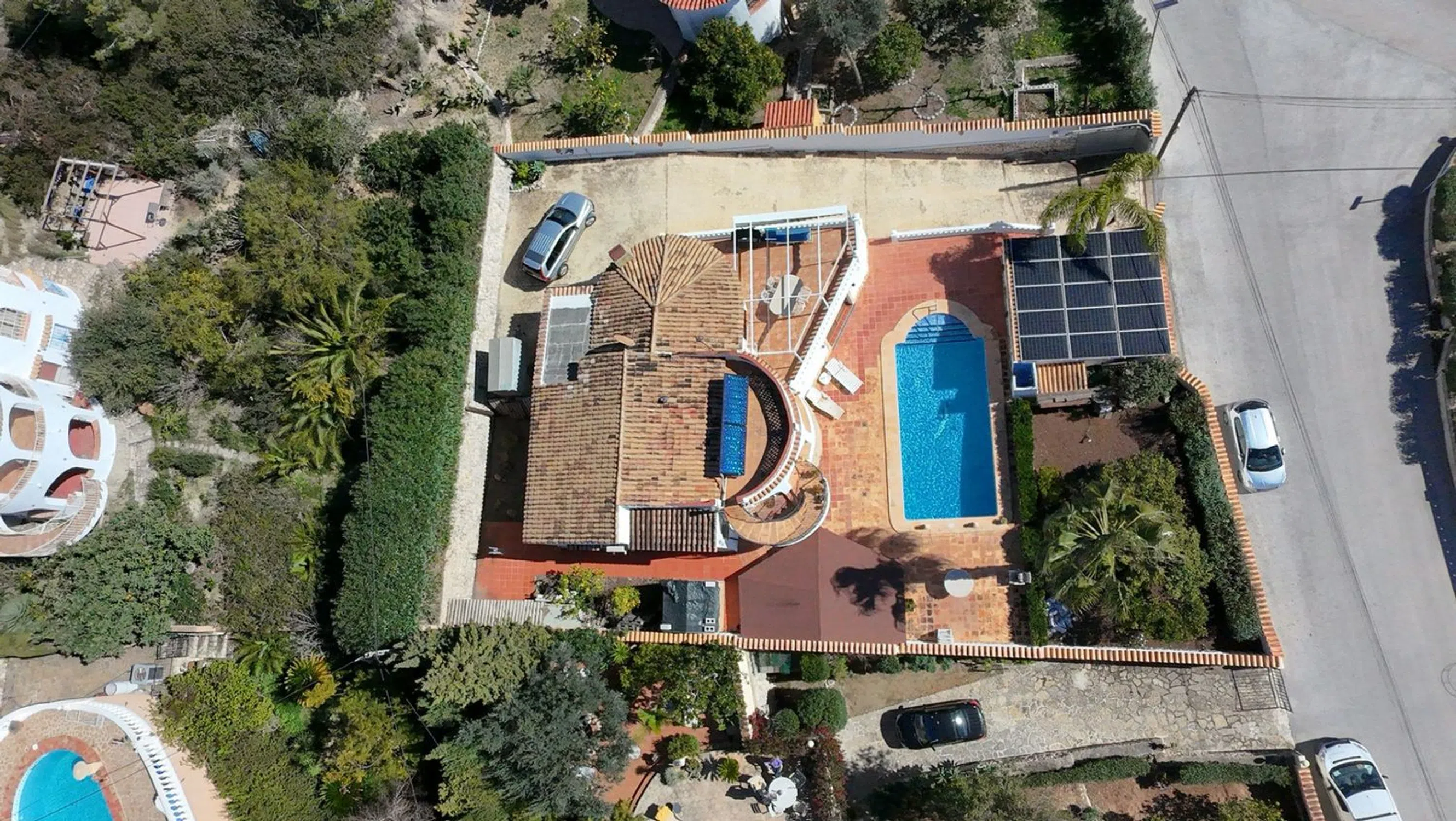Esta villa está situada en una de las urbanizaciones más tranquilas y bonitas de Benissa Costa. A medida que entramos en la casa, en la planta principal podemos encontrar 2 dormitorios y uno de ellos tiene un cuarto de baño, una sala de estar, un baño de visitas y una terraza cubierta / descubierta con impresionantes vistas abiertas a la montaña. La villa dispone de calefacción por suelo radiante en toda la casa, calefacción central, chimenea y aire acondicionado. Desde la planta principal podemos subir a la terraza superior descubierta donde también se encuentran los paneles solares. La planta baja contiene el espacio de almacenamiento de la casa y también tiene un apartamento de invitados, que en este momento se convierte en una sala de relajación con masaje y sauna. El jardín tiene una preciosa cocina de verano cubierta, una casita de madera utilizada como trastero, numerosos árboles frutales y acceso al garaje privado. Para más información, contacte con uno de nuestros agentes.