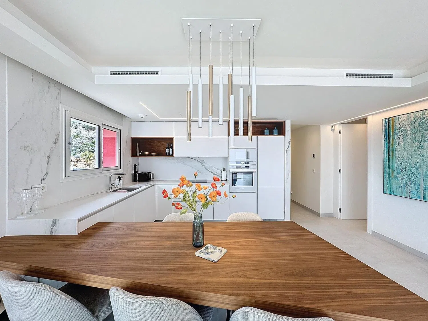 Exclusivo ático de lujo en Blue Infinity – Cumbre del Sol Si buscas un ático de lujo con un diseño contemporáneo, vistas panorámicas inigualables y las mejores calidades, esta propiedad en Blue Infinity, dentro de la prestigiosa urbanización Cumbre del Sol, es una oportunidad única. Ubicada entre Jávea y Moraira, en el municipio de Benitachell, esta vivienda es el equilibrio perfecto entre exclusividad, confort y estilo. Diseño y distribución excepcional Este espectacular ático es esquinero y muy soleado, lo que garantiza máxima privacidad y luminosidad durante todo el día. Con una superficie total construida de 317 m², la vivienda se distribuye de la siguiente manera: 130 m² de vivienda, con un diseño moderno y funcional. 73 m² de terraza privada, incluyendo una zona cubierta ideal para disfrutar del aire libre en cualquier época del año. 114 m² de zonas comunes con acceso a impresionantes instalaciones. Plaza de aparcamiento cubierta privada de 16 m². Trastero completamente equipado de 7 m² con estanterías. Espacios interiores diseñados para el confort El ático cuenta con tres dormitorios, dos amplios dormitorios dobles con armarios empotrados más El dormitorio principal que destaca por su vestidor abierto y baño en suite, ofreciendo un ambiente elegante y funcional. Además, la vivienda dispone de: Un segundo baño completo de diseño moderno. Un aseo de cortesía para mayor comodidad. Un espectacular salón-comedor con cocina abierta, ideal para disfrutar de reuniones y momentos especiales. Tanto desde el salón como desde el dormitorio principal, se accede directamente a la terraza, un espacio donde las vistas al mar y la luz natural crean una atmósfera única. Equipamiento de alta gama y extras exclusivos Esta propiedad está equipada con materiales y marcas de primera calidad, garantizando el máximo confort y tecnología de vanguardia: Calefacción por suelo radiante en toda la vivienda. Aire acondicionado por conductos para un clima perfecto todo el año. Sistema de domótica para un control inteligente del hogar. Electrodomésticos de alta gama (SIEMENS, SONOS, INALCO, HANS GROHE, entre otros). Un entorno inmejorable Ubicado en Blue Infinity – Cumbre del Sol, este ático forma parte de una urbanización exclusiva con acceso a zonas comunes de lujo, como piscinas infinitas, gimnasio y spa. Además, la ubicación permite disfrutar de playas espectaculares, senderos naturales y todos los servicios necesarios a pocos minutos. Exclusiva Promoción de Apartamentos de Lujo en Blue Infinity, Cumbre del Sol Ubicada en el prestigioso residencial Lirios, cerca de la entrada sur de la urbanización Cumbre del Sol en Benitachell, la promoción Blue Infinity ofrece un estilo de vida único y sofisticado, rodeado de la tranquilidad y belleza de la Costa Blanca. Zonas Comunes Excepcionales Los residentes de Blue Infinity disfrutan de unas instalaciones comunes de primera clase, diseñadas para el máximo confort y bienestar: Zona Wellness con piscina interior climatizada, gimnasio completamente equipado, baño turco y sauna. Piscina exterior desbo...