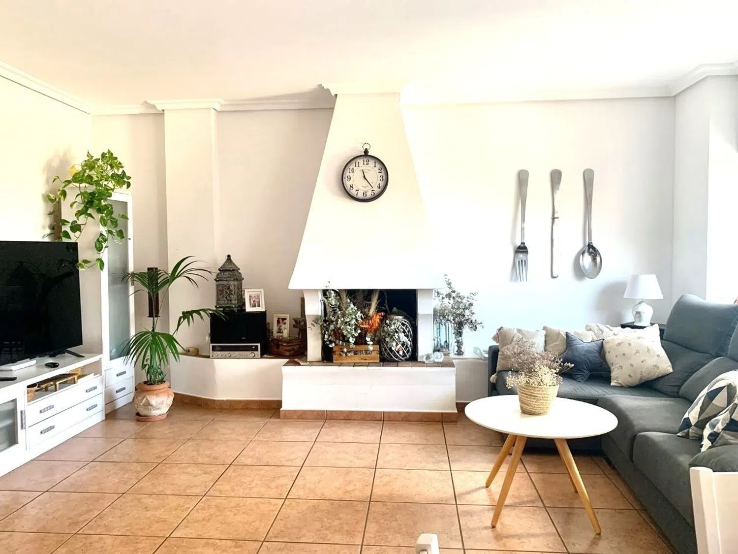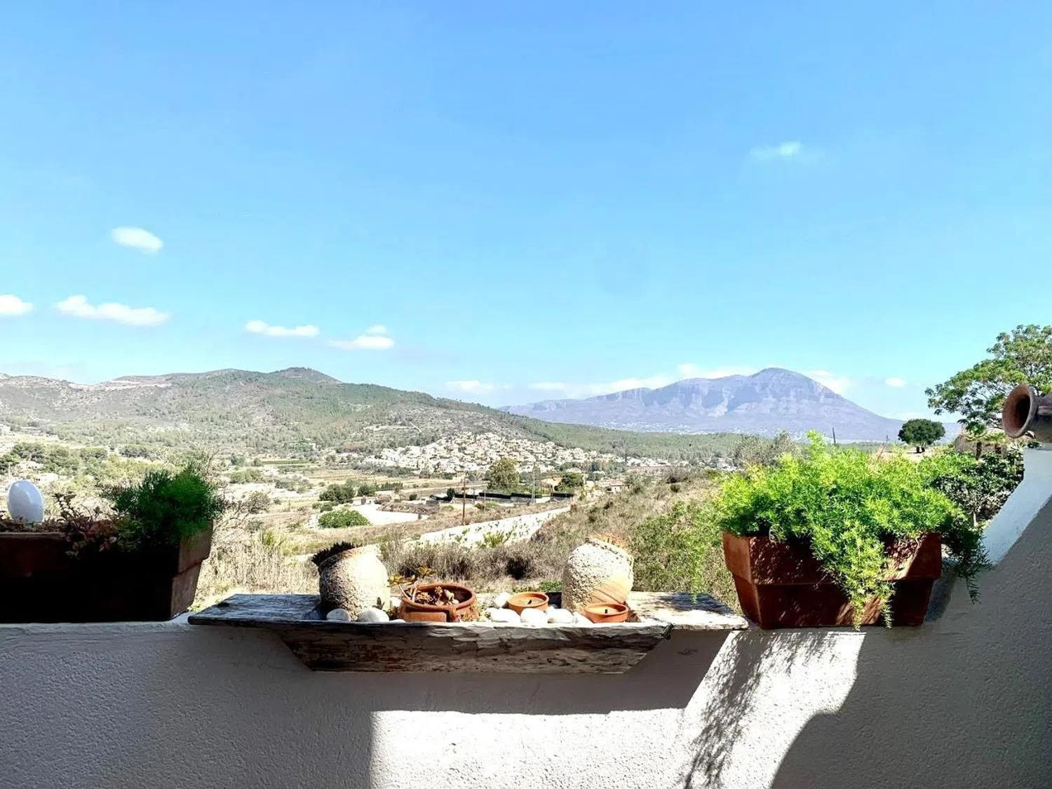 Complementing the living space is a 20 m² terrace that provides stunning views of the valley and the majestic Montgó mountain. The terrace also grants access to the basement, which serves as a storage area with a total of 49 m². Additionally, there is a convenient guest bathroom on this level.