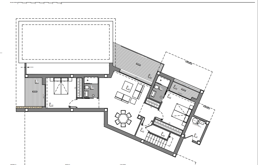 The top floor houses the sleeping quarters, featuring two double bedrooms and a suite with a private bathroom, walk-in closet, and private terrace. An additional bathroom is available as well. All rooms open onto a terrace offering breathtaking sea views, perfect for enjoying unforgettable sunrises.