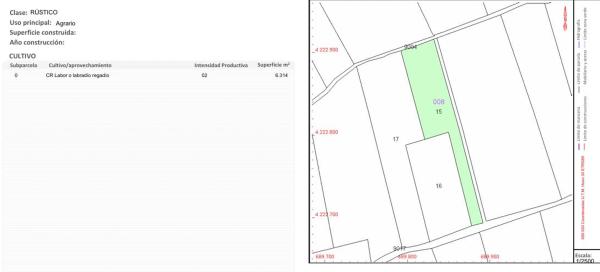 Terreno rustico de regadío en zona de huerta consolidada con riego. a menos de 1K del barrio de los cubos y 1 km del barrio San José. con acceso por carretera asfaltada hasta la entrada y con camino de acceso hasta el final de la parcela, lo que facilita mucho la entrada de camiones y tractores para labranza.
