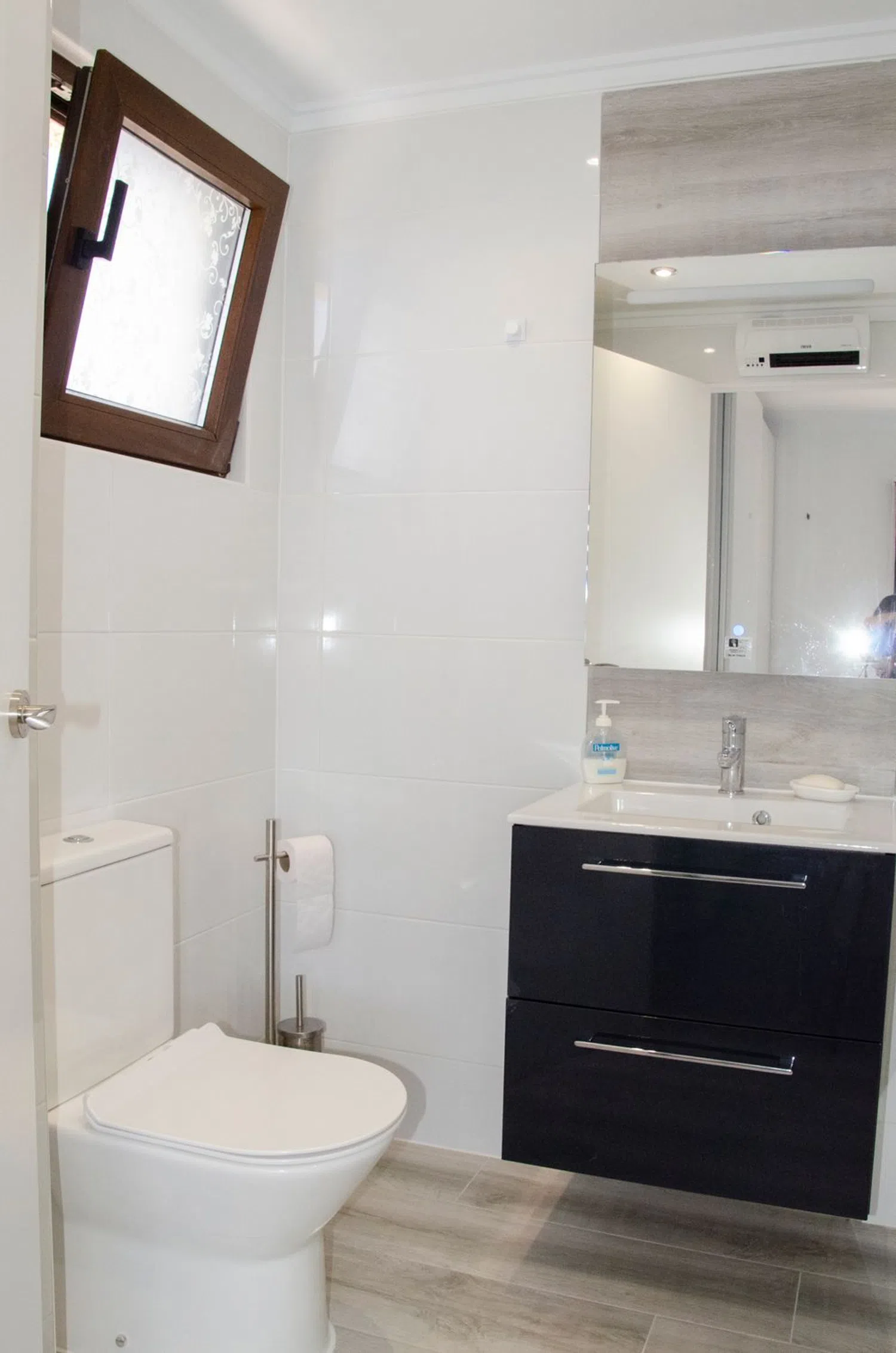 The main bedroom provides additional comfort with a dressing area that includes built-in wardrobes. For climate control, the apartment is outfitted with air conditioning, and the generous dining area is enhanced by a gas fireplace, perfect for cozy evenings.
