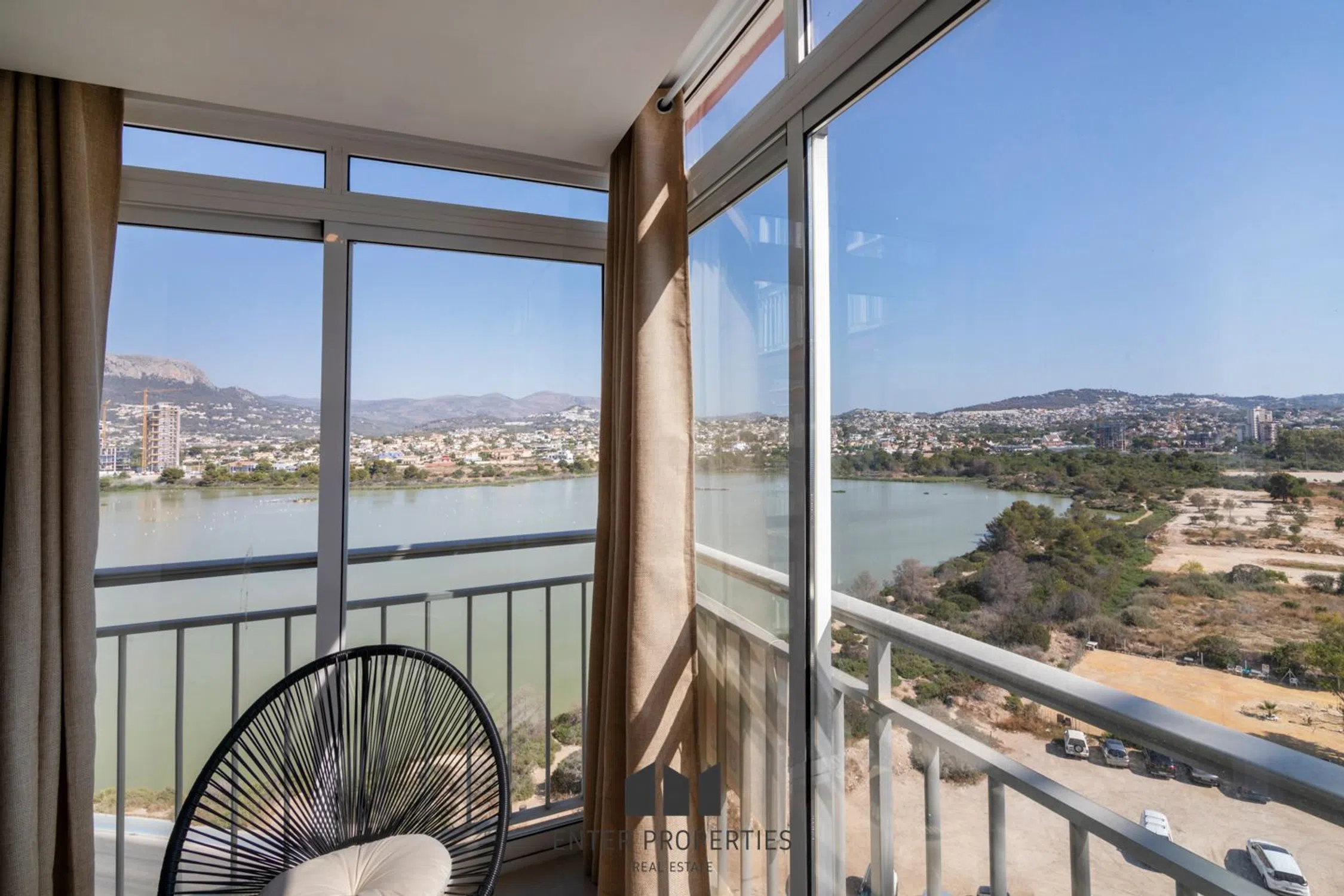 Vistas privilegiadas al mar, a Las Salinas y a la montaña: apartamento panorámico en Calpe, a solo 200 metros de la Playa de la Fossa Ubicado en una urbanización cerrada en una de las zonas más codiciadas de Calpe, este apartamento de 76 m² construidos ofrece una experiencia residencial excepcional, donde la luz natural, las vistas inigualables y la proximidad al mar se combinan en armonía. Desde su elegante terraza acristalada se disfrutan panorámicas únicas: el azul intenso del Mediterráneo, el lago salado de Las Salinas —un espectáculo natural poco común visible desde una posición privilegiada—, las imponentes montañas del entorno y la vibrante silueta urbana de Calpe. Una postal viva que cambia con la luz del día y que se convierte en protagonista de cada estancia. La distribución interior es moderna y funcional. El amplio salón-comedor se fusiona con una cocina abierta que potencia la sensación de amplitud y conecta visualmente con el exterior. Las dos habitaciones cuentan con armarios empotrados y gran capacidad de almacenaje. Todo el inmueble está climatizado por conductos y equipado con puerta blindada para mayor seguridad. La orientación norte/este garantiza luminosidad durante las horas de la mañana y un clima fresco durante todo el año, ideal para quienes buscan confort térmico sin renunciar a la luz. Se incluye una plaza de garaje comunitaria, un añadido indispensable en esta ubicación tan cercana al puerto, tiendas y restaurantes. Contáctanos para agendar una videollamada y descubrir cada detalle de este exclusivo apartamento frente a Las Salinas y el mar. Privileged views of the sea, Las Salinas, and the mountains: panoramic apartment in Calpe, just 200 meters from La Fossa Beach Located in a gated community within one of Calpe’s most sought-after areas, this 76 m² apartment offers an exceptional residential experience where natural light, breathtaking views, and proximity to the sea blend in perfect harmony. From its elegant glazed terrace, enjoy unparalleled panoramas: the deep blue of the Mediterranean, the saltwater lagoon of Las Salinas —a rare natural spectacle visible from a unique vantage point—, the majestic surrounding mountains, and Calpe’s vibrant urban skyline. A living postcard that transforms with the daylight and becomes the focal point of every room. The interior layout is modern and functional. The spacious living-dining area seamlessly integrates with an open-plan kitchen, enhancing the sense of space and connecting visually to the outdoors. Both bedrooms feature built-in wardrobes with generous storage capacity. The entire property is equipped with ducted air conditioning and a reinforced security door for added safety. Facing northeast, the apartment is bathed in morning sunlight while maintaining a fresh indoor climate year-round—ideal for those who seek thermal comfort without sacrificing natural light. A communal garage space is included, an essential asset in such a prime location near the marina, shops, and restaurants. Contact us to schedule a video call and discover every detail of this exclusive apartment overlooking Las Salinas and the sea.