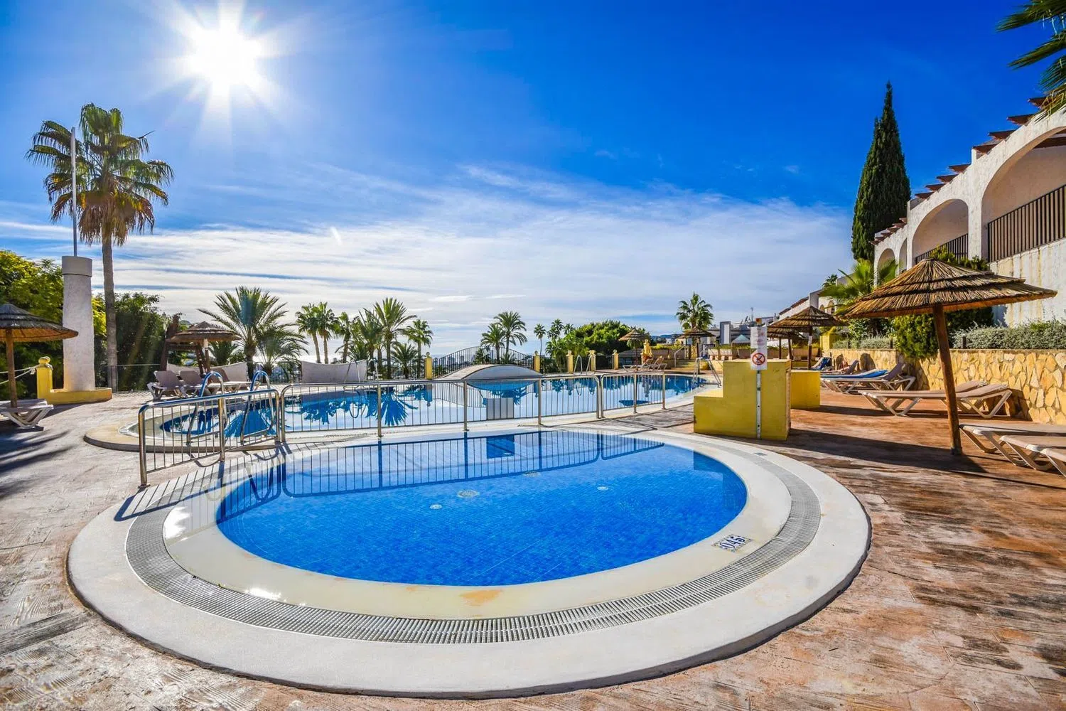 Nestled within a meticulously maintained private community, residents have access to several communal swimming pools, a spa, leisure areas, a café, and a reception service. This property offers a lifestyle of convenience and relaxation in a stunning setting. Feel free to reach out for more information without any obligation.