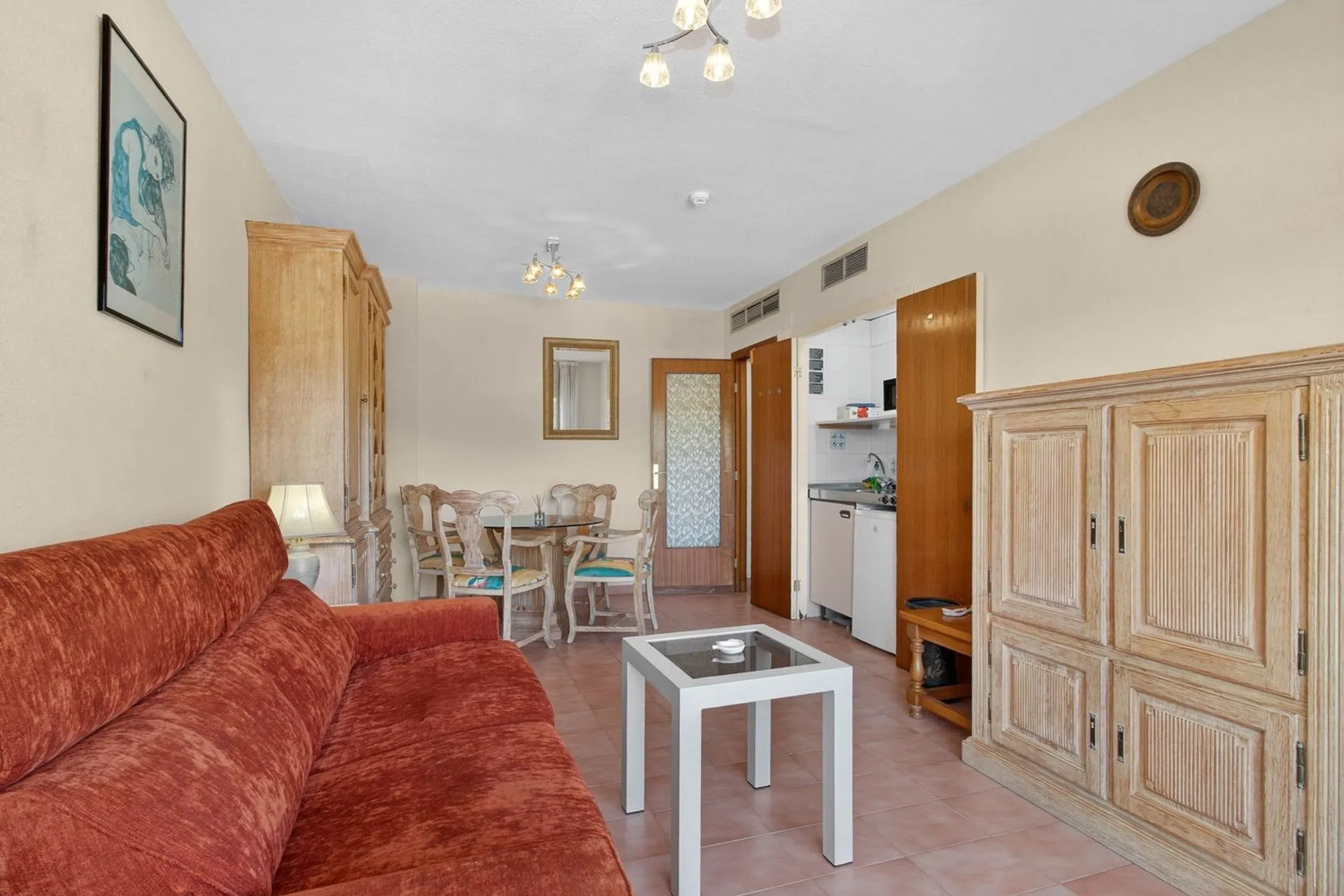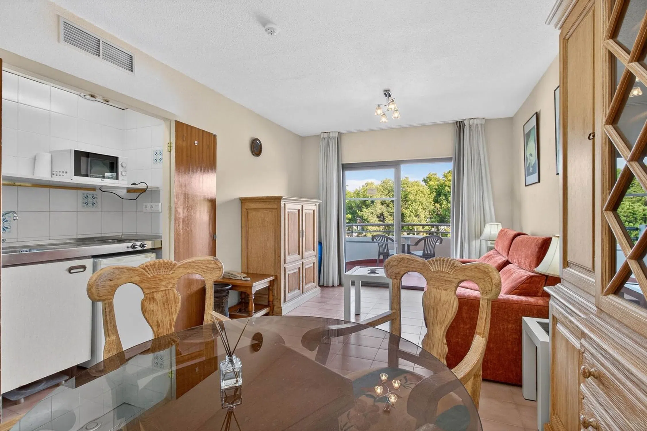 Se vende acogedor apartamento ubicado en la reconocida Urbanización Caleta, en Calpe, a escasos metros de la playa, supermercados y todos los servicios necesarios para disfrutar de una vida cómoda junto al mar. La vivienda forma parte del Aparthotel Galetamar, un complejo con todas las comodidades y un excelente mantenimiento. El edificio dispone de recepción con personal físico, servicio de mantenimiento, piscina comunitaria, amplias zonas ajardinadas y zona de aparcamiento privado, lo que garantiza confort y tranquilidad durante todo el año. Situado en la cuarta planta, el apartamento cuenta con 55 m² distribuidos en: •Recibidor de entrada. •Dormitorio doble con acceso directo a la terraza. •Baño completo. •Luminoso salón comedor con grandes ventanales. •Cocina equipada. •Amplia terraza soleada con vistas despejadas al mar y a la montaña. Además, dispone de aire acondicionado central por conductos (frío y calor), ideal para garantizar el máximo confort en cualquier época del año. Una excelente oportunidad tanto como vivienda vacacional, inversión para alquiler turístico, o residencia habitual en una de las zonas más demandadas de Calpe. Para más información o concertar una visita, no dudes en contactar. [IW].