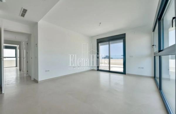 Discover this contemporary penthouse nestled in the heart of a vibrant coastal town. This modern apartment boasts unparalleled views of the Mediterranean Sea and is just a short stroll from the inviting beach. Upon entering this expansive 270 m² property, you will be greeted by a spacious open-plan living area of approximately 18 m², seamlessly connecting to an outdoor terrace, creating an ideal setting for both entertainment and relaxation.