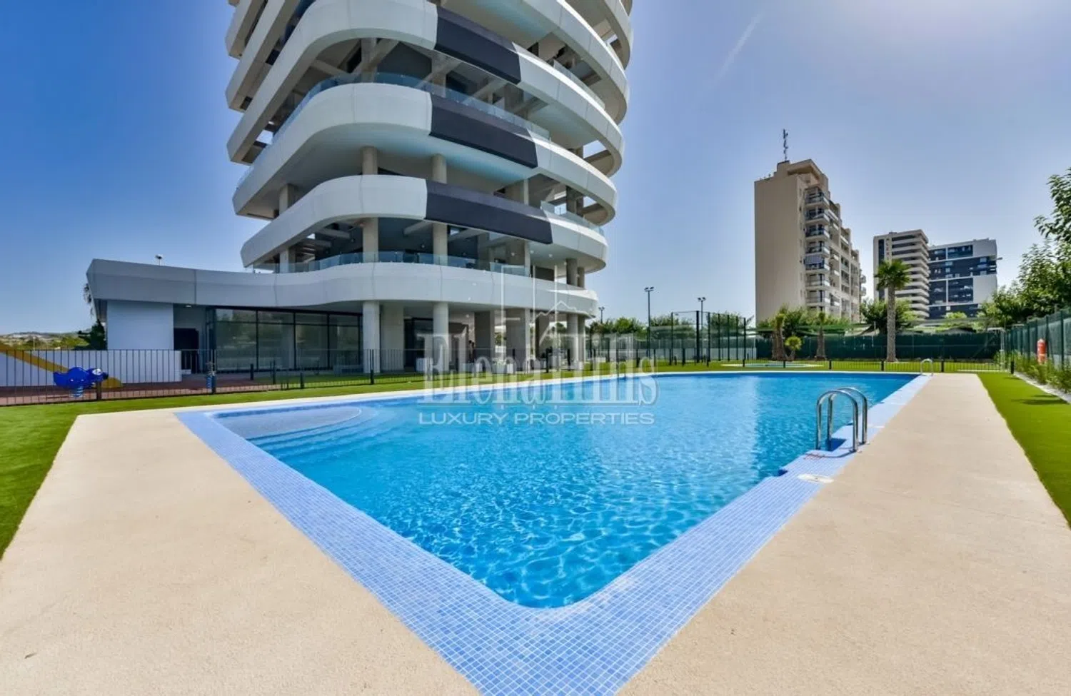 The penthouse features three generously sized bedrooms, each offering ample storage space. The master suite includes an en-suite bathroom, while the additional bedrooms share a tastefully designed bathroom. In addition to its prime location and spacious interiors, this penthouse comes with an array of premium amenities. Residents can indulge in their own private swimming pool and a sun terrace of around 116 m², or take advantage of the large communal pool, tennis court, gym area, and two private parking spaces.