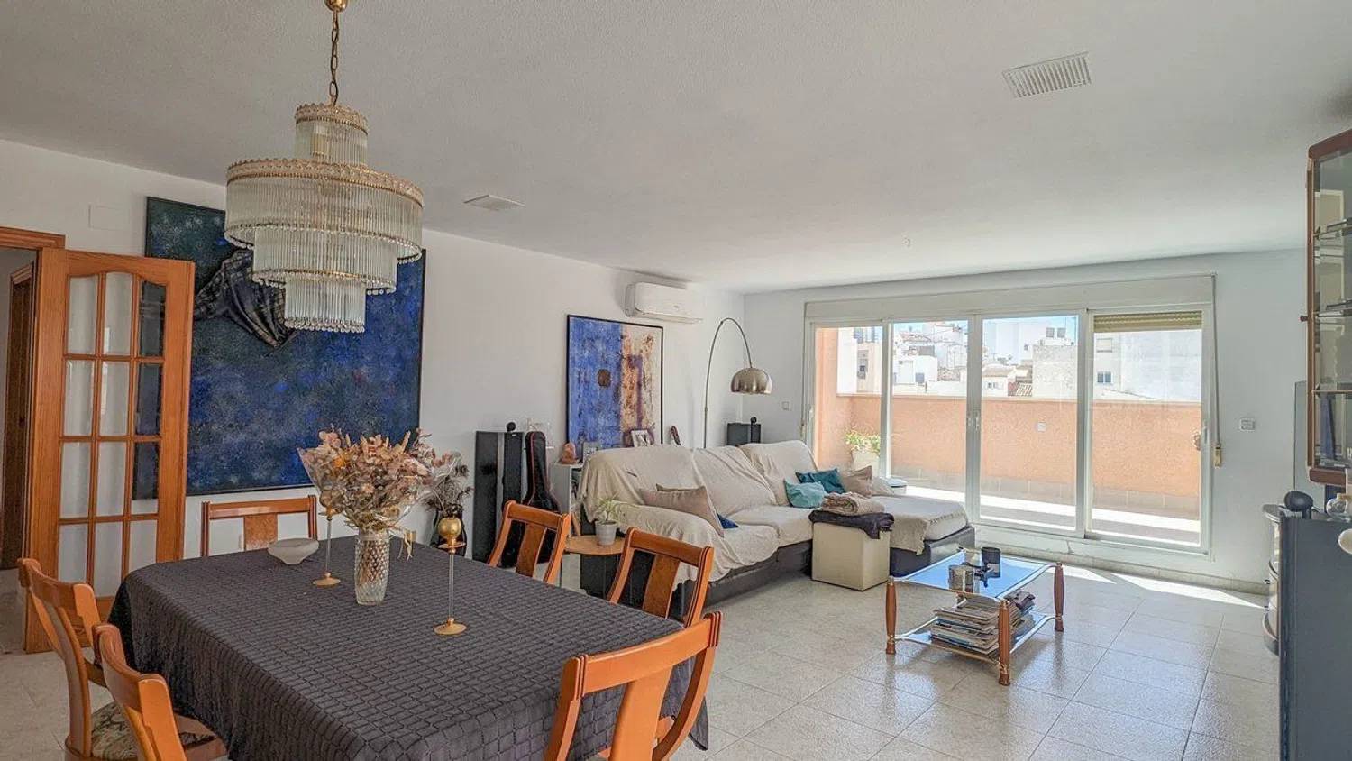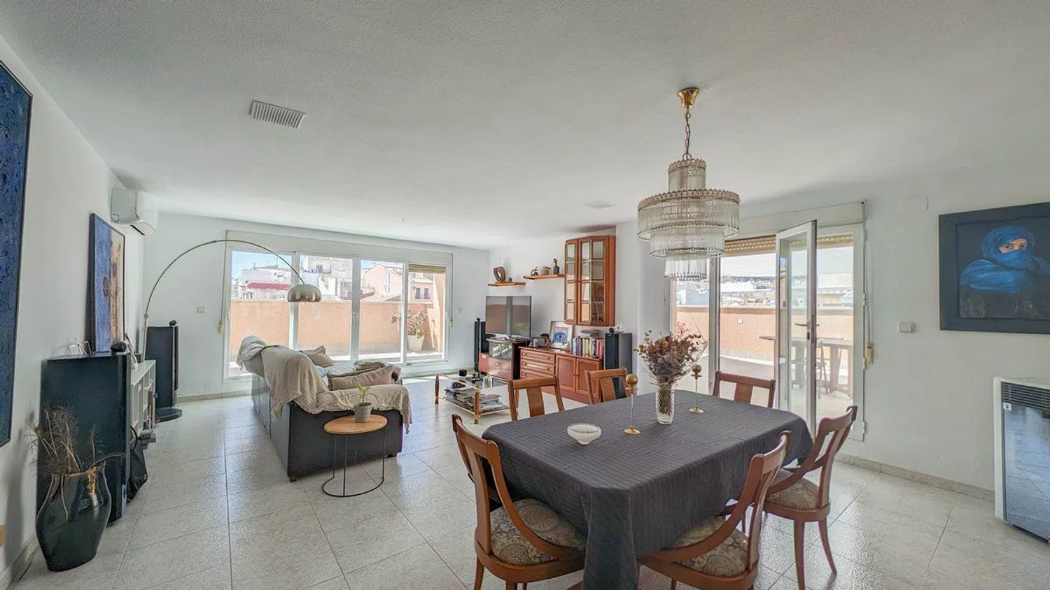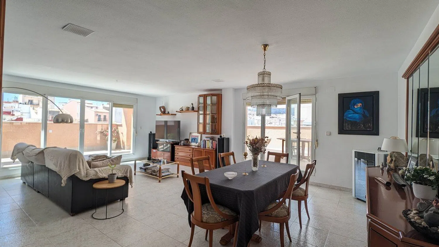 This stunning penthouse, featuring 250 m² of living space and an additional 250 m² of terrace, is ideally located in the vibrant center of a coastal town. Within walking distance, you'll find a variety of shops, supermarkets, and essential amenities, ensuring utmost convenience. It’s just an 8-minute stroll to the beautiful Arenal-Bol beach, making it a perfect retreat for both everyday living and leisure activities.