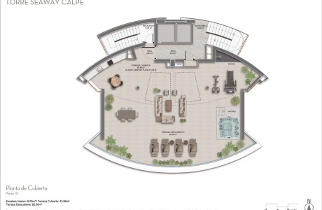 Tipo C. -El ático de 3 dormitorios tiene una superficie construida de 140,96 m2 en su planta principal, de los cuales 36,31 m2 corresponden a la terraza orientada al sur. La azotea tiene un total de 134,36 m2 distribuidos en parte descubierta y cubierta, con cocina de verano con BBQ, comedor exterior, chill-out con jacuzzi, ducha y gimnasio. Esta terraza ofrece unas vistas panorámicas absolutamente impresionantes del mar, las salinas, las montañas y los paisajes urbanos de Calpe.La planta principal del ático consta de 3 dormitorios, 2 baños completos, lavadero, vestidor y salón comedor de 28,10 m2 con cocina americana y acceso a una terraza con vistas al mar. La suite principal cuenta con baño propio y vestidor. Los otros 2 dormitorios tienen armarios empotrados; todas las habitaciones tienen acceso a la terraza orientada al sur. El precio es de 1.490. 000€, 2 plazas de garaje y trastero se venden aparte.Esta nueva promoción lo tiene todo para disfrutar de una alta calidad de vida cerca de todos los servicios y de la playa. No lo dude, llámenos para más información o reserve ya el apartamento de sus sueños.
