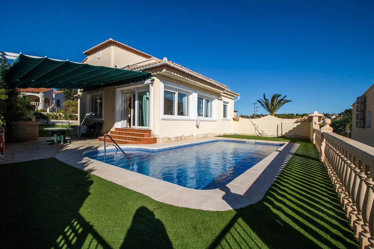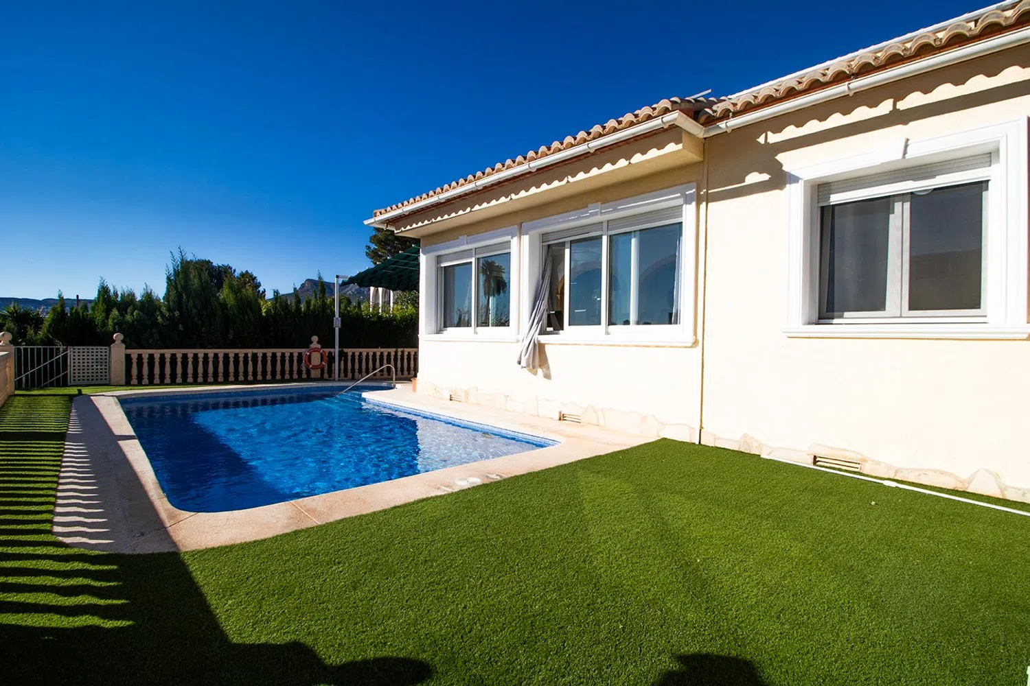 Welcome to this charming villa, ideally located in one of the most desirable areas. The home features a total of three bedrooms and two bathrooms. On the main floor, you'll find a lovely porch, an entrance hall, two bedrooms, and a complete bathroom. Additionally, there is an open-plan kitchen that connects to a spacious and bright living-dining area, leading out to a beautiful terrace and a 9x4 swimming pool. This Mediterranean villa, facing south, offers breathtaking views of a prominent natural landmark, a true icon of the coastal region.