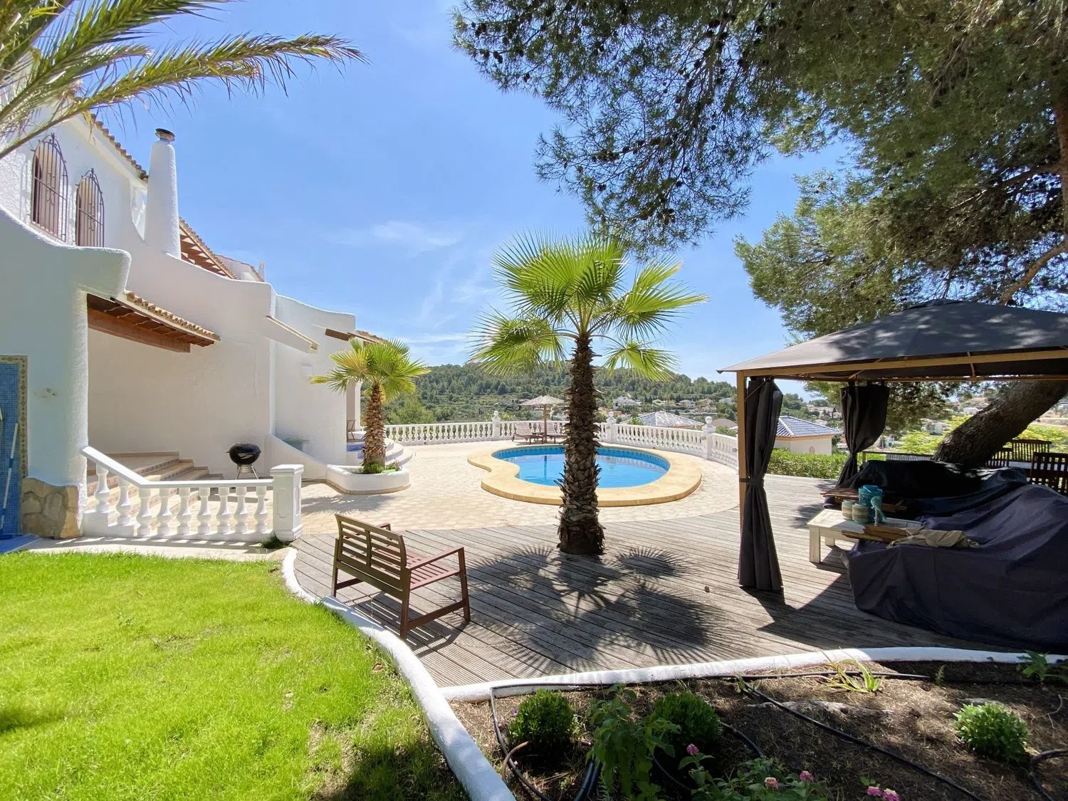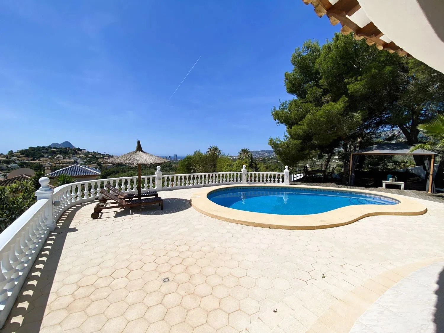This elegant independent villa boasts breathtaking sea views, making it a true gem. Encompassing a generous built area and an expansive plot, this property perfectly blends space, style, and comfort. The outdoor areas are a highlight, featuring a luxurious pool, spacious terraces, and lush gardens, ideal for enjoying life to the fullest.