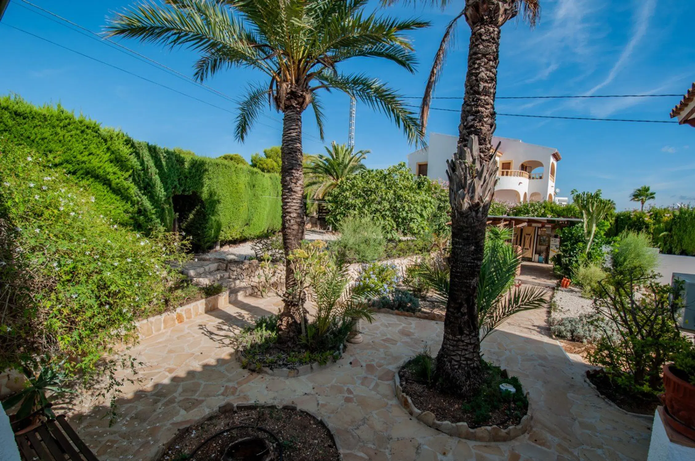 La residencia principal cuenta con una sala de estar/comedor junto a una cocina de concepto abierto, un espacio de trabajo, 1 habitación, 1 cuarto de baño y una terraza techada y al aire libre. Las 3 viviendas poseen cada una su propia entrada independiente. La primera casa para visitantes dispone de una sala de estar/comedor con cocina de concepto abierto, 1 amplio dormitorio, 1 cuarto de baño y una terraza en el frente y en la parte trasera. La segunda casa para visitantes cuenta con sala de estar/comedor, cocina, 2 dormitorios, 1 baño, terraza al descubierto y terraza cubierta. La tercera casa para visitantes incluye una sala de estar/comedor, cocina, 2 habitaciones, 1 cuarto de baño y terraza al aire libre y techada. Todas las viviendas cuentan con ventanas de doble acristalamiento, la residencia principal está equipada con calefacción central y aire acondicionado, mientras que la segunda y tercera casa para visitantes tienen calefacción por suelo radiante. También se encuentra una hermosa piscina de agua salada, un área cubierta con barbacoa, y un amplio espacio de almacenamiento que puede utilizarse para diversas finalidades, como guardar bicicletas o como gimnasio. La propiedad es accesible desde 2 calles, dispone de una cochera y un amplio espacio de estacionamiento. Está situada en una zona residencial tranquila a 800 metros de un supermercado.