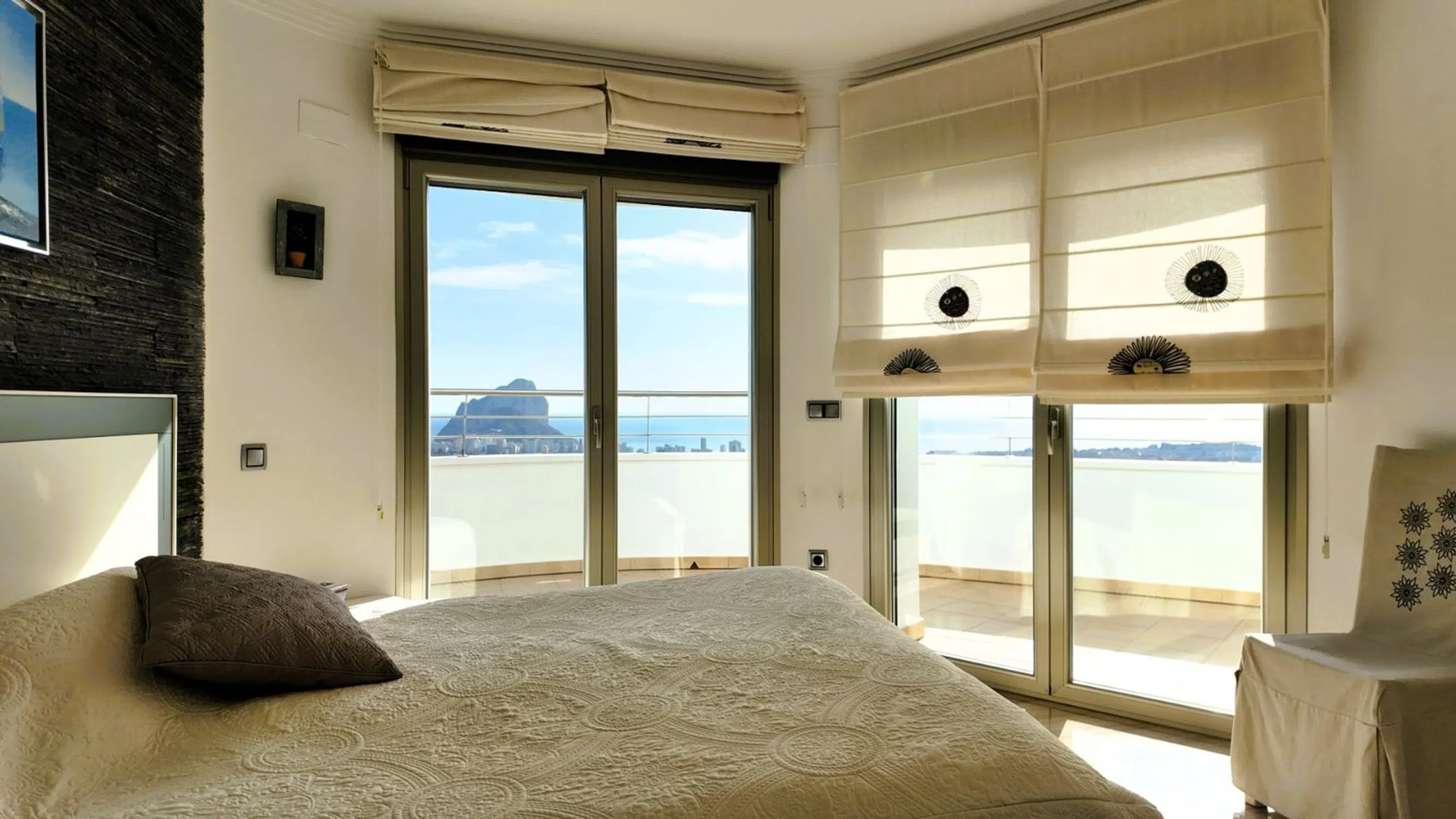 Villa de lujo en una zona privilegiada con mucha tranquilidad y vistas inigualables. Vistas panorámicas del mar, la roca y la bahía de Calpe. Ubicada en una zona tranquila y soleada. Villa construida de manera elegante y moderna, decorada con esmero y con todas las comodidades como domótica, cargadores para coches híbridos y eléctricos, aire acondicionado en todas las habitaciones, muy silencioso. La casa cuenta con 3 apartamentos independientes, un total de 8 dormitorios con vestidores, 7 baños (en suite), cocina de estilo americano, salón con acceso al exterior donde se encuentra la piscina climatizada que se puede disfrutar todo el año, que puede ser cubierta o dejada al aire libre, cocina de verano con todas las comodidades y área de barbacoa. Amplia villa con espacios generosos en toda la parcela.
