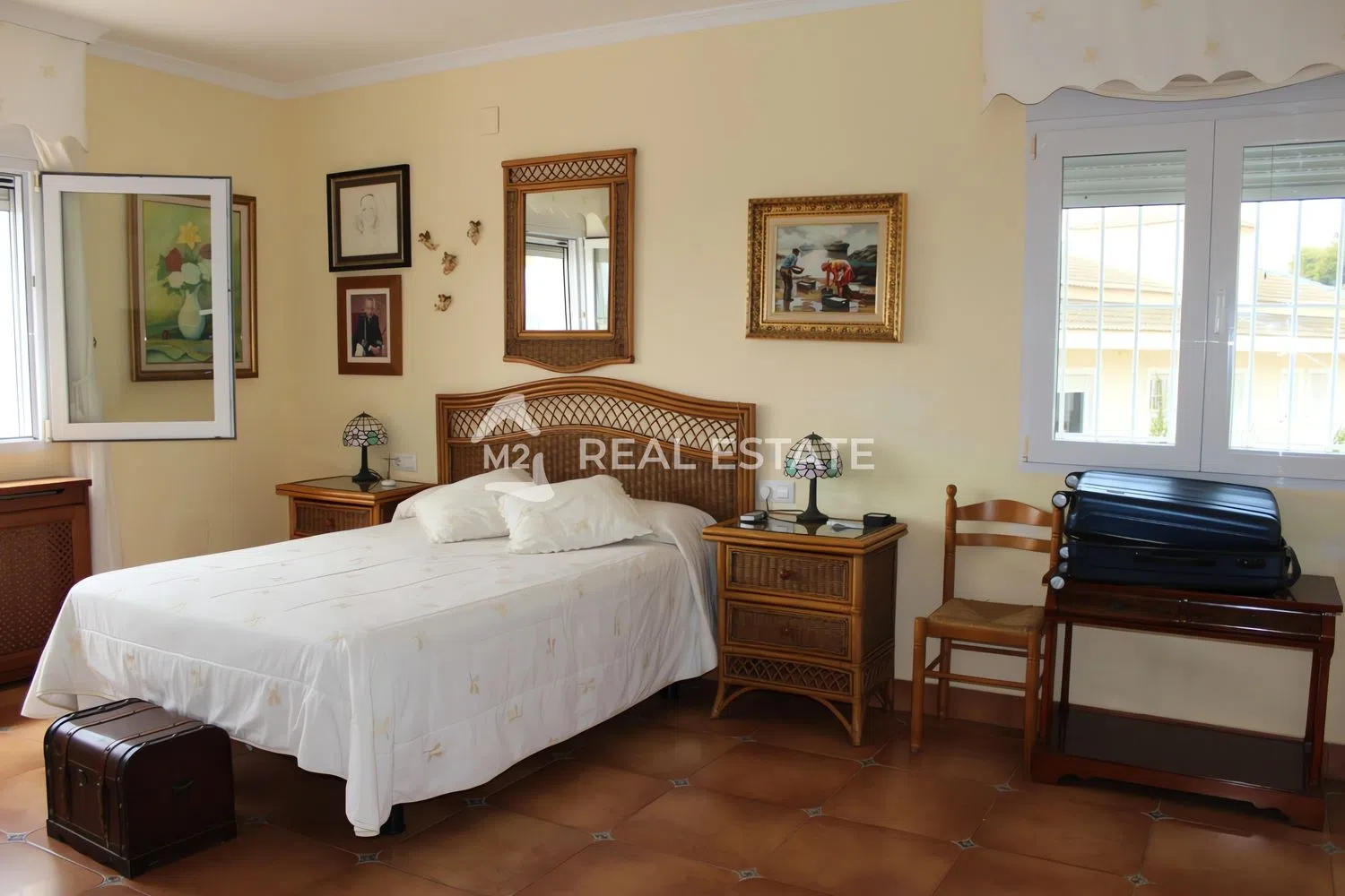 This villa, situated in a serene residential area, is just a stone's throw away from the town center and the beach. It features two bedrooms in the main house, along with a guest apartment that also contains two bedrooms. The main house includes a welcoming entrance hall, a versatile living room that can be converted into an additional bedroom, and a spacious, bright kitchen. The generous living space opens up to a glazed terrace, offering a perfect spot to relax.