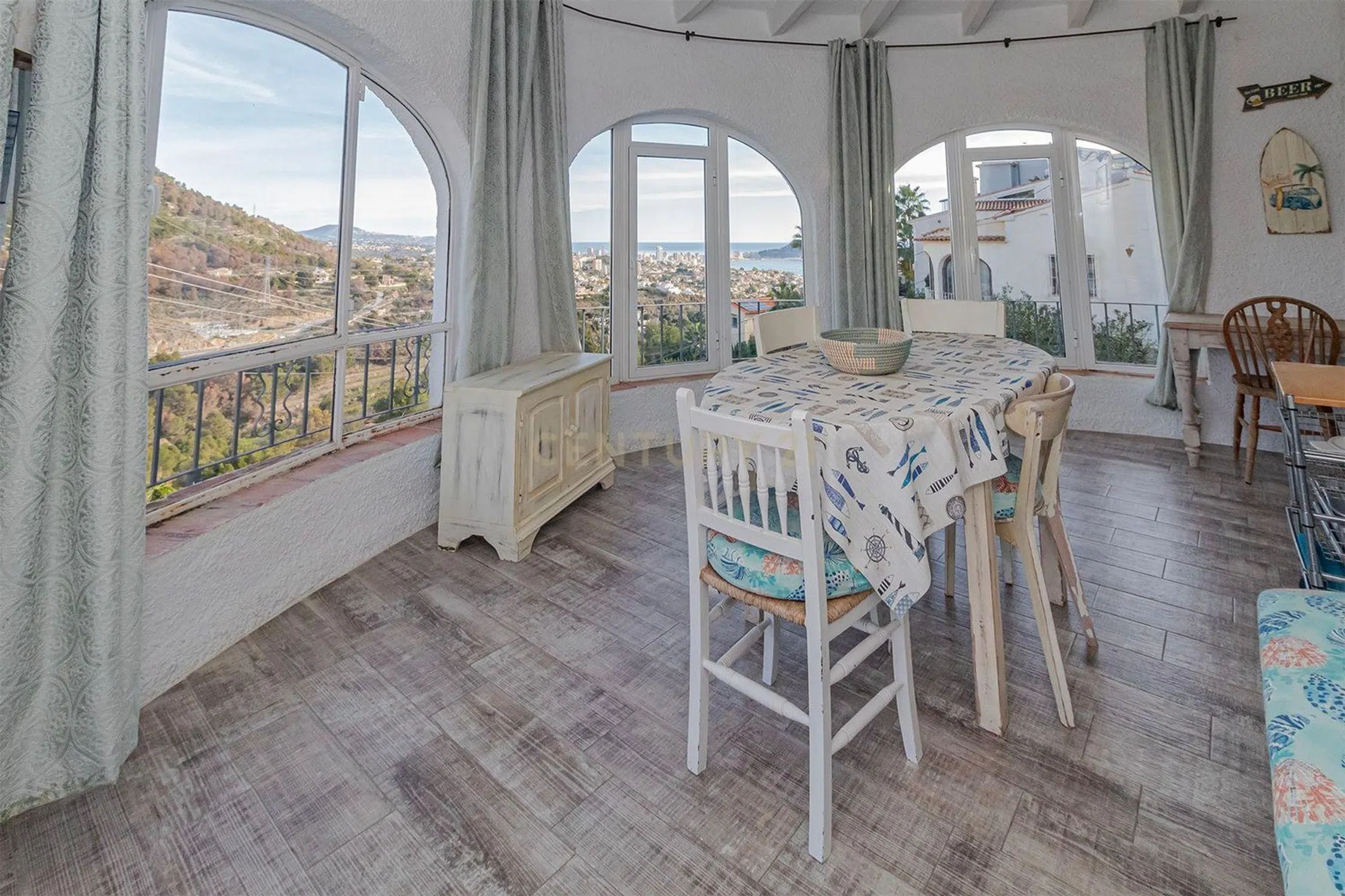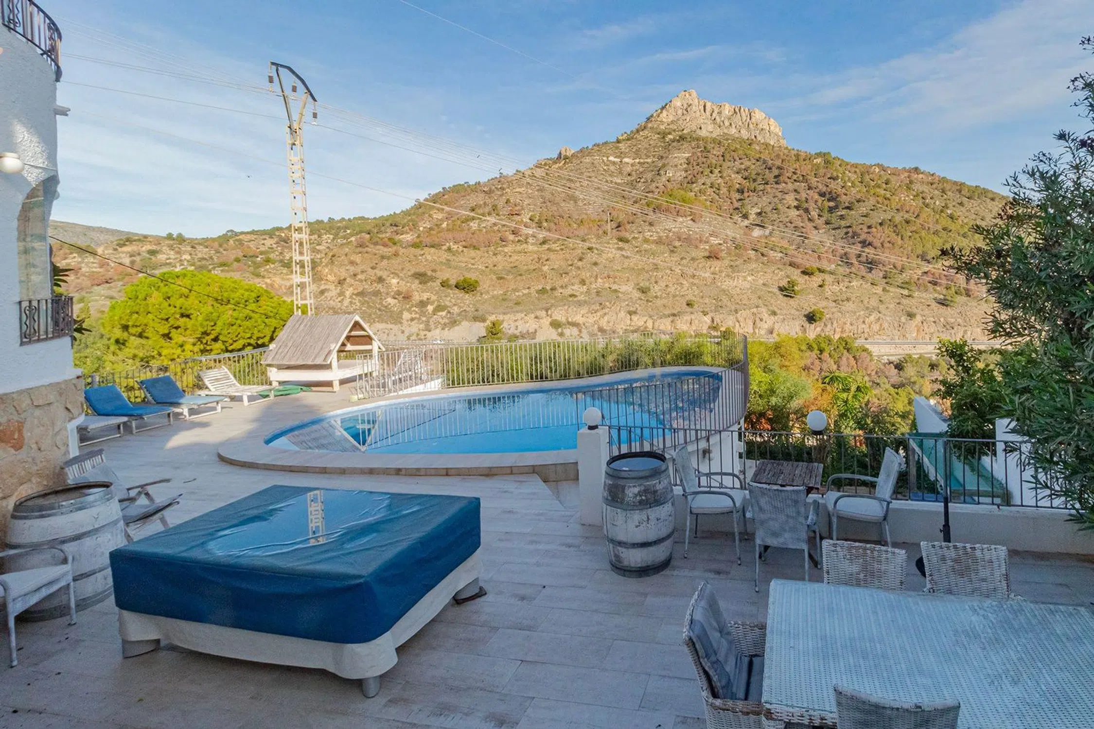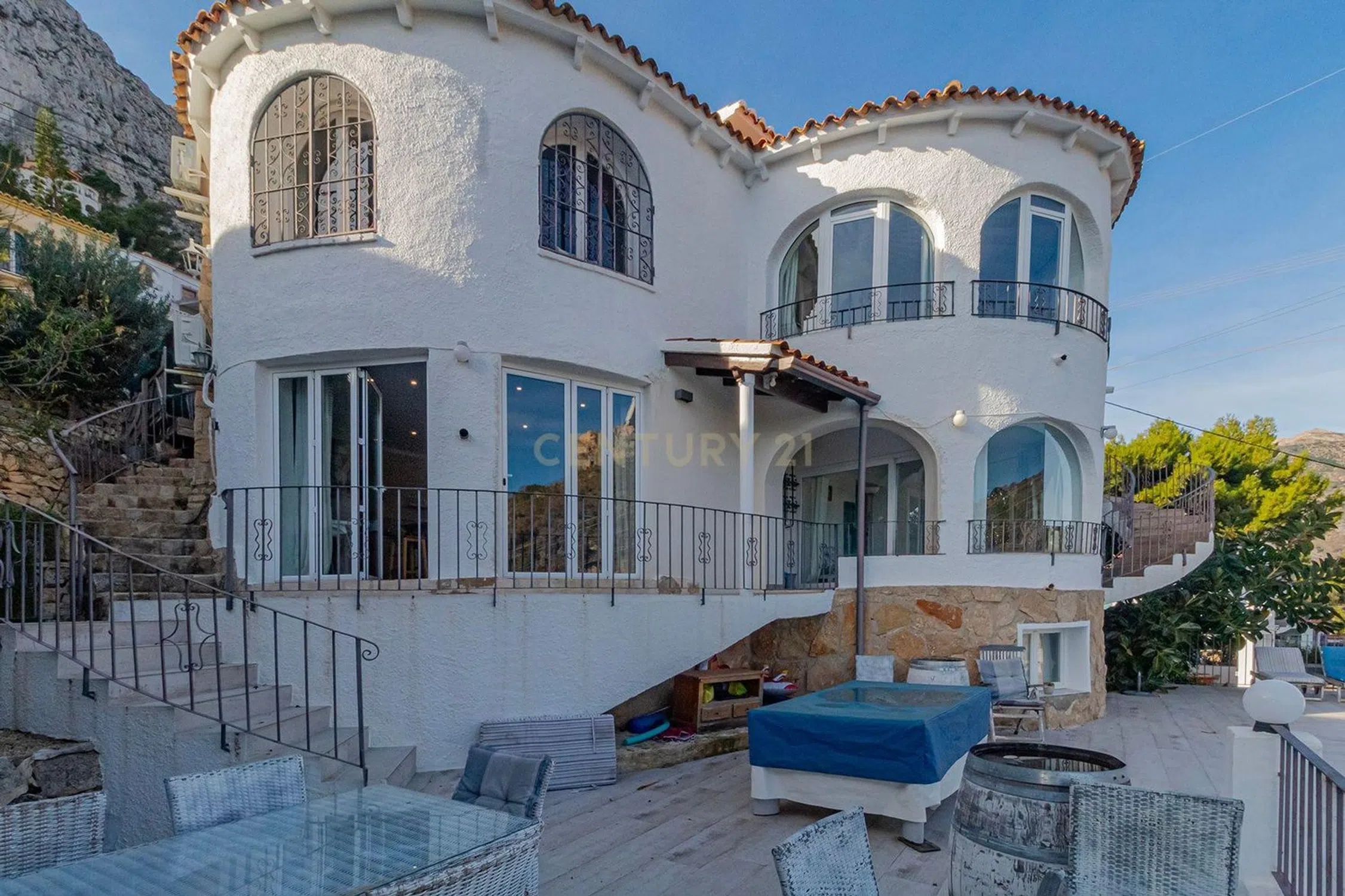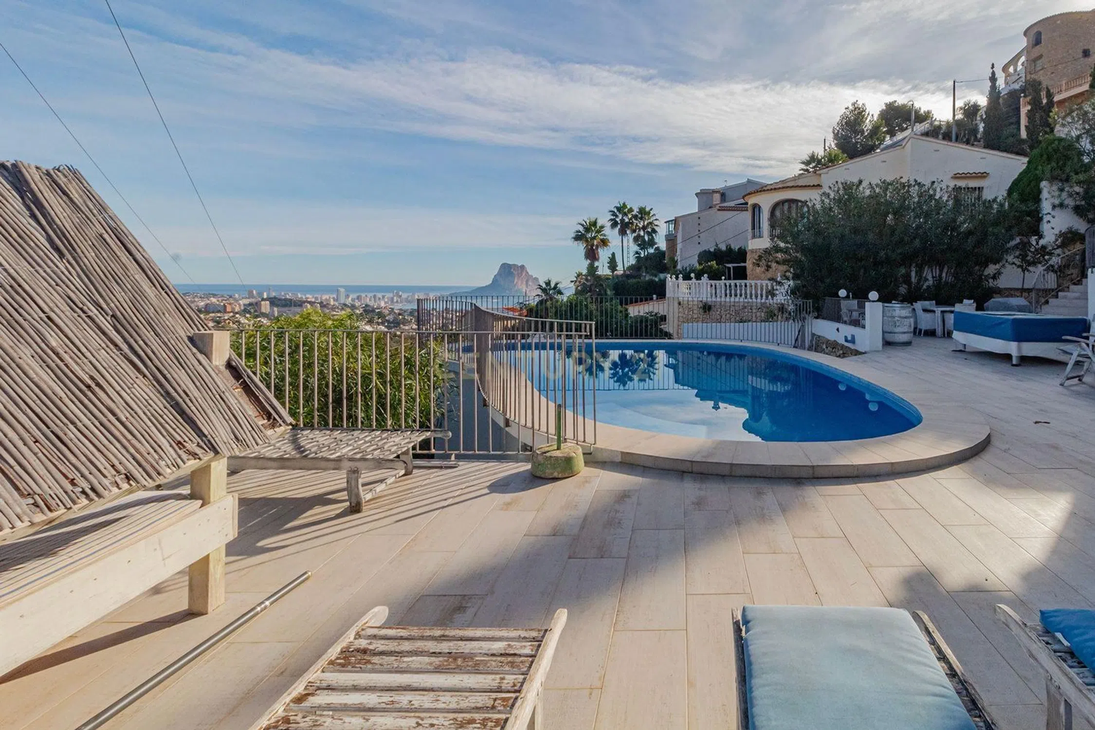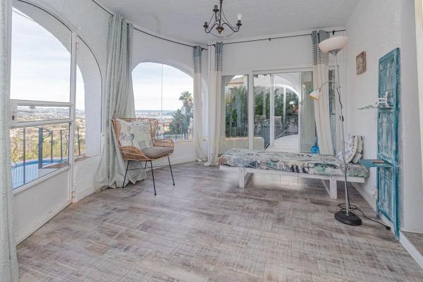Esta es una gran villa diseñada en tres plantas con escaleras externas que conectan los distintos apartamentos. En el nivel de entrada, tenemos un luminoso y espacioso apartamento de dos dormitorios y dos baños, uno de los baños es en suite con el dormitorio principal, un gran salón con chimenea, una terraza completamente acristalada que actualmente se usa como comedor y una cocina totalmente equipada. La planta baja también ofrece dos dormitorios más y dos baños modernos y un salón/comedor de planta abierta con una cocina americana. Junto a la piscina privada de 8x4 y la terraza, hay otro apartamento estudio independiente con cocina y baño en suite. Todo el alojamiento ha sido reformado con un alto estándar con suelos nuevos, ventanas nuevas y baños nuevos en toda la propiedad, conservando su encanto y estilo originales. Hay aire acondicionado frío/calor en todos los apartamentos para una comodidad durante todo el año. En la parte delantera de la propiedad hay un amplio estacionamiento para 3/4 autos. La propiedad disfruta de espectaculares vistas al mar y al Peñón D'Ifach desde todos los niveles. La propiedad está lista para entrar a vivir y sería ideal para familias numerosas o para inversión de alquiler ya que los tres apartamentos son completamente independientes entre sí. La propiedad tiene Licencia Turística activa.